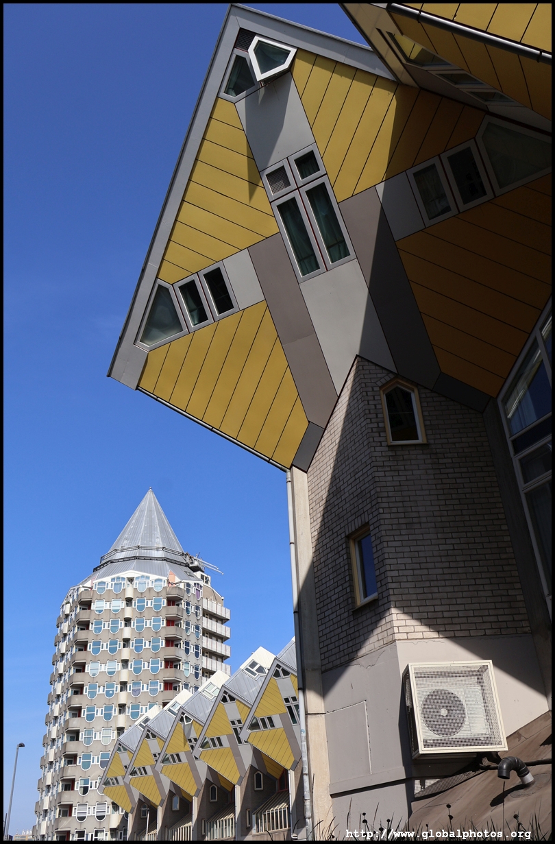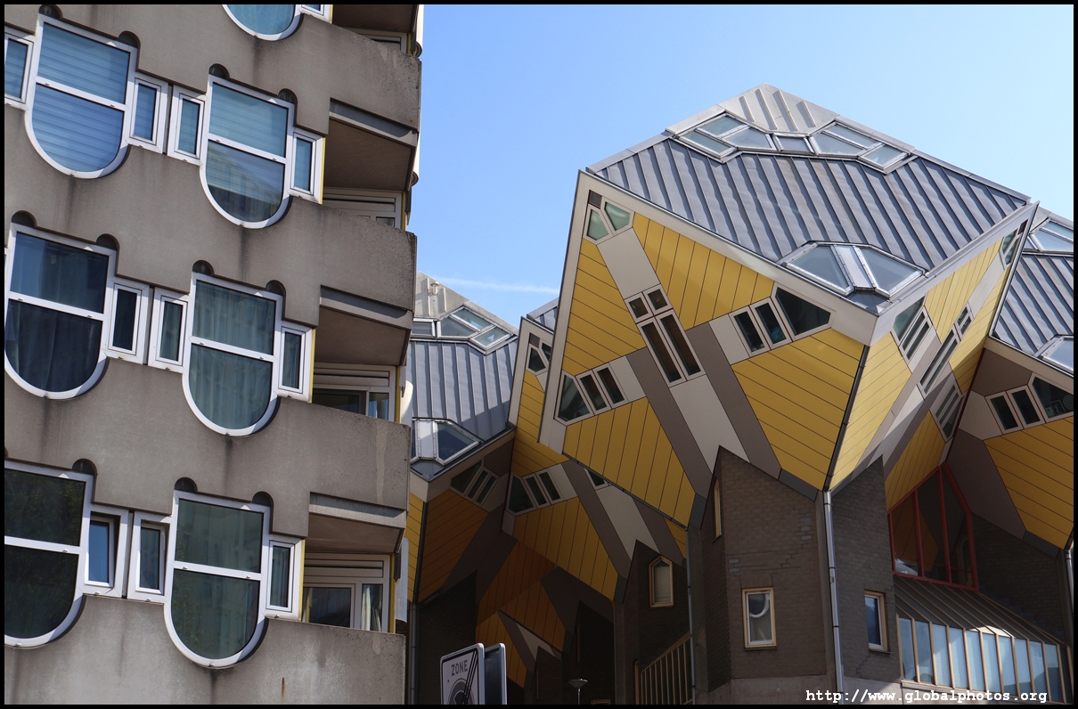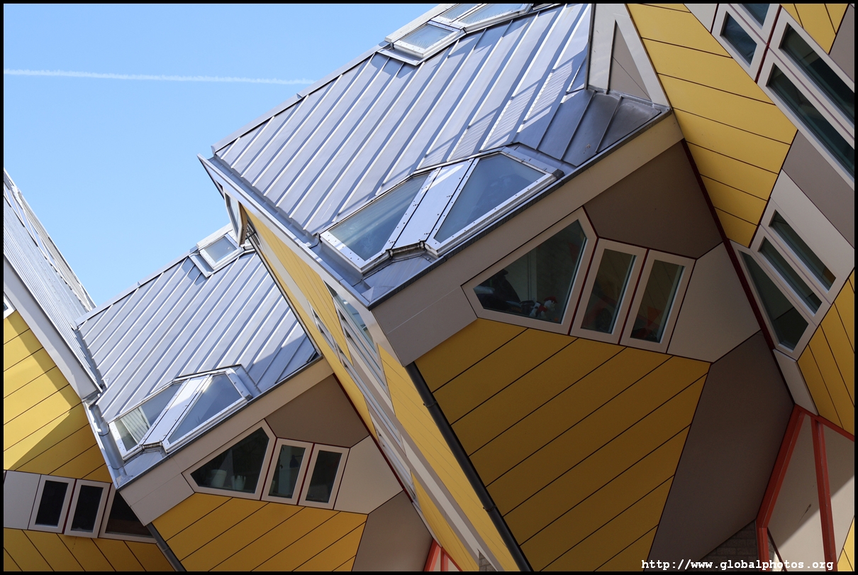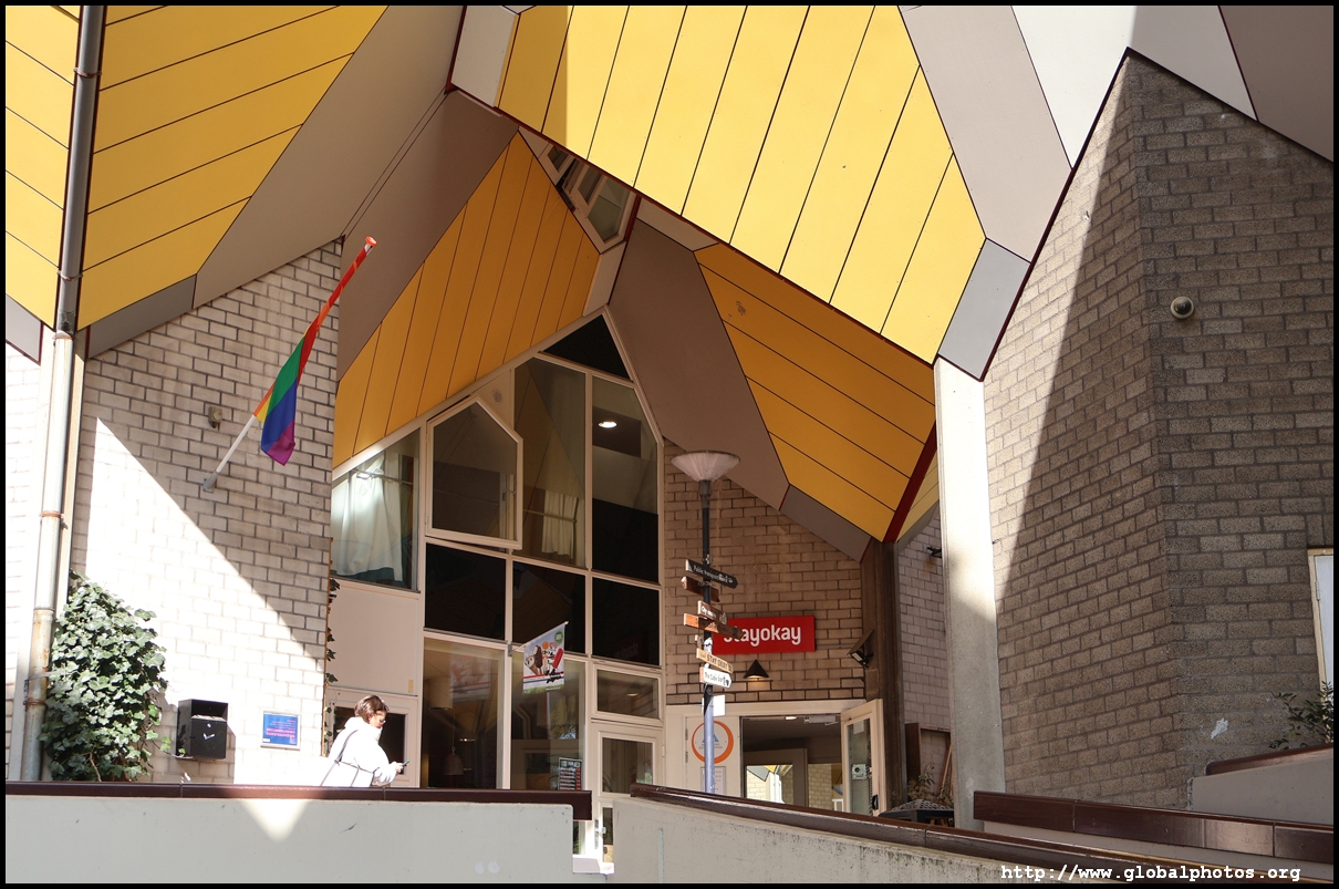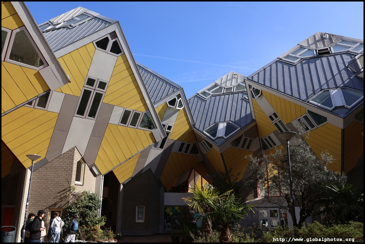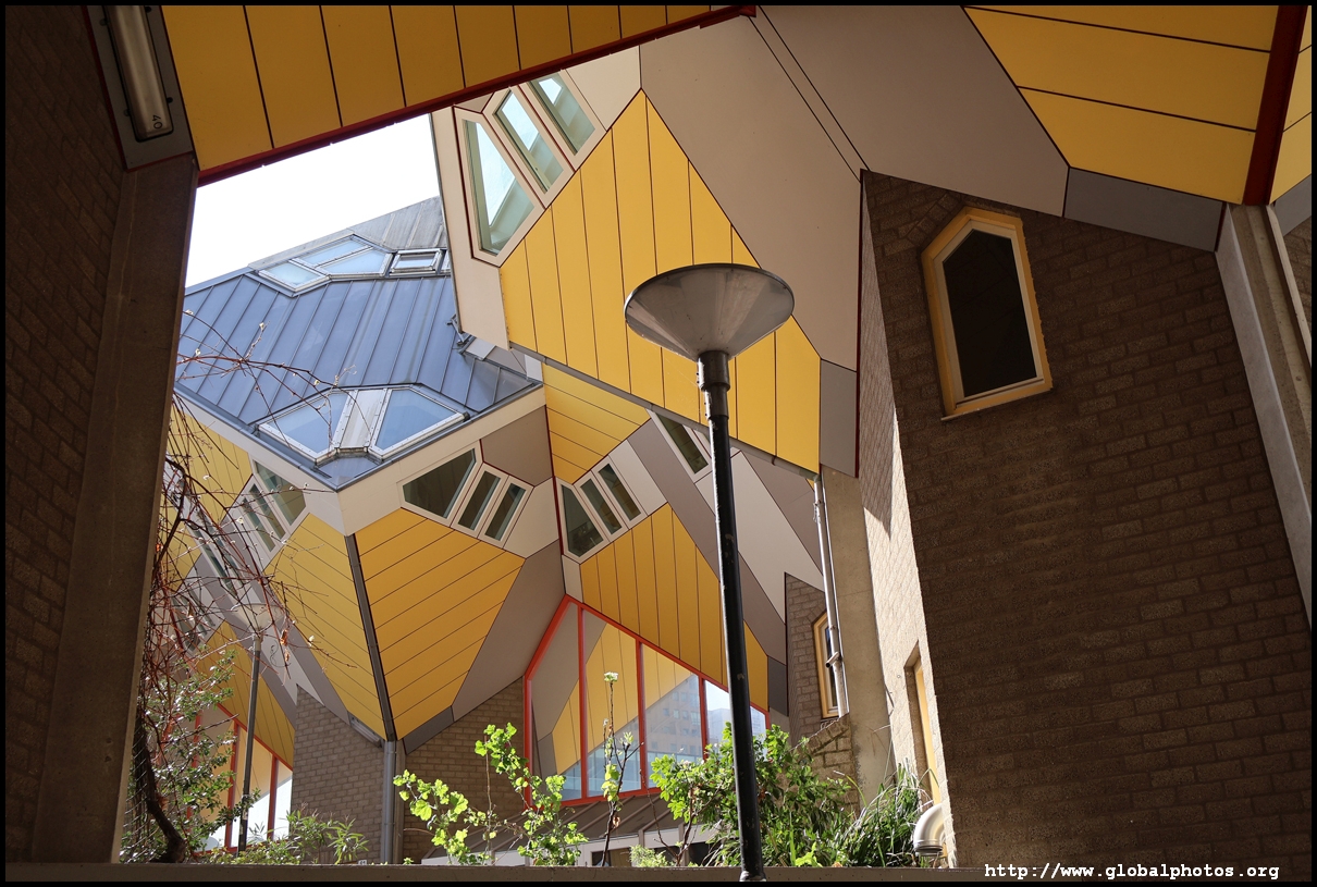 Oddly intriguing from the outside, the Cube House is a set of residential buildings made of cubes angled at 53.5 degrees resting on concrete pillar trunks. Designed by Piet Blom, they first appeared in the mid-1970s near Eindhoven and arrived in Rotterdam in the 1980s. This "forest" of treehouses are placed on top of a busy avenue below, connecting the new housing projects in the Old Harbour with the city.A typical apartment consists of 3 floors. The lower floor consists of the living space with kitchen with downward-facing windows that interact with the street below. Heading up the narrow and steep staircase, you reach the second floor, where there are bedrooms and a toilet. The top floor is a pyramid with plenty of windows that look out onto your neighbours' roofs, and can be flexibly adapted into a lounge or bedroom. It is possible to enter an apartment museum for 3 euros, a price that hasn't changed over the years. First impressions are not good as it feels claustrophobic to climb up the narrow and steep staircase to the lower floor. It also feels very dark due to the windows' angle downwards. Things don't get better upstairs with sharp corners and low ceilings. It's very easy to bump your head due to the irregular layout inside the inverted cube. The final staircase leads to a super hot greenhouse because all the windows face the sun and there are plenty of them. Natural lighting is not an issue here but it is darker than usual on the other 2 floors where you spend most of the time despite it being a sunny day outside.
