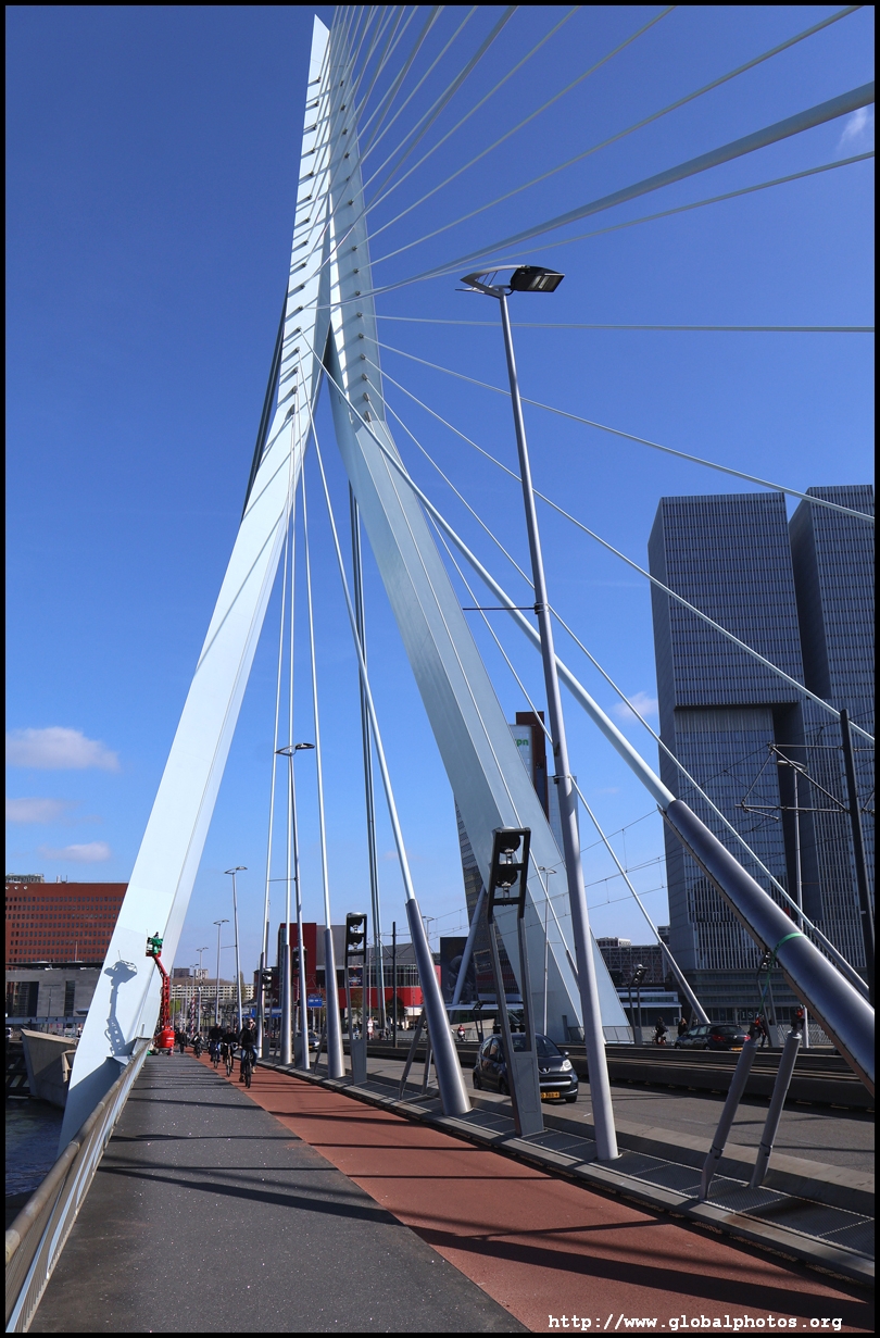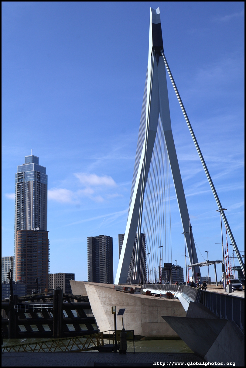 Designed by Ben van Berkel and completed in 1996, the 802m bridge across the Maas is the city's symbol. It features vehicle, pedestrian, and tram lanes and offers good views along the way.The suspension bridge is held by 40 cables mounted on a 139m steel pylon that looks like a swan. After exploring Kop van Zuid, I walked across comfortably to admire the river scenery and continue my walking tour at Leuvehaven.