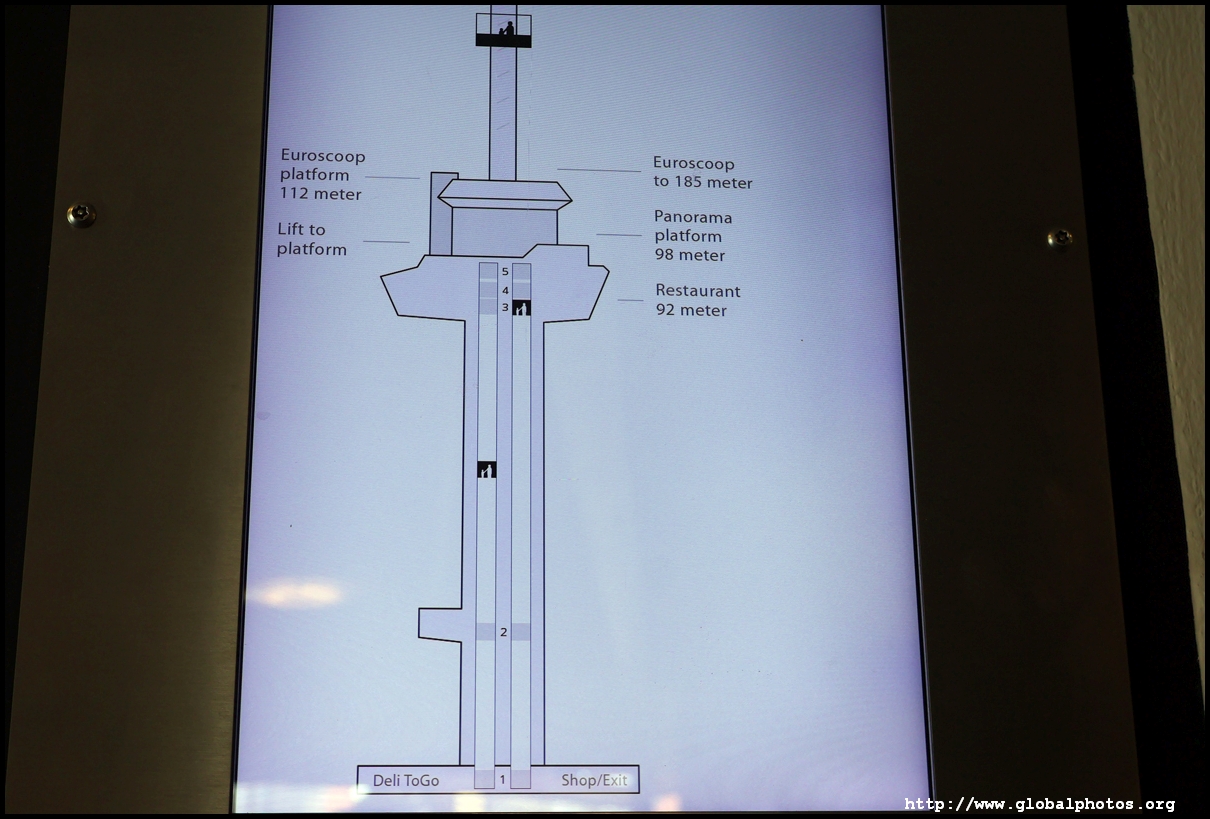 Lifts take about half a minute to reach the outdoor observation deck at 98m, costing 12.5 euros while an additional ticket allows you on Euroscoop, a revolving platform that ascends further up. You can book both online ahead of time as a bundled ticket or purchase the Euroscoop ticket on the spot for 7 euros.