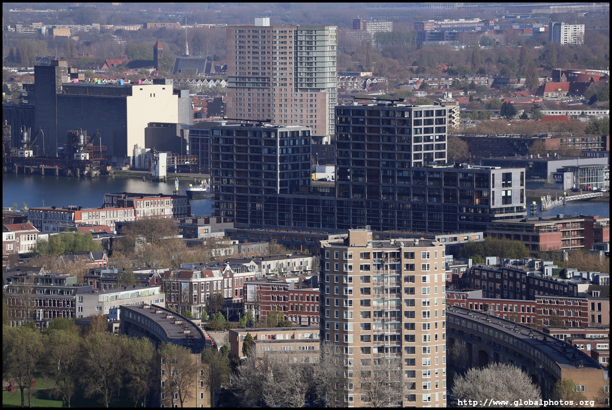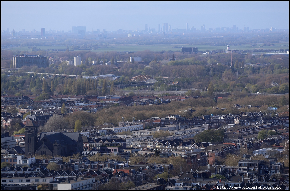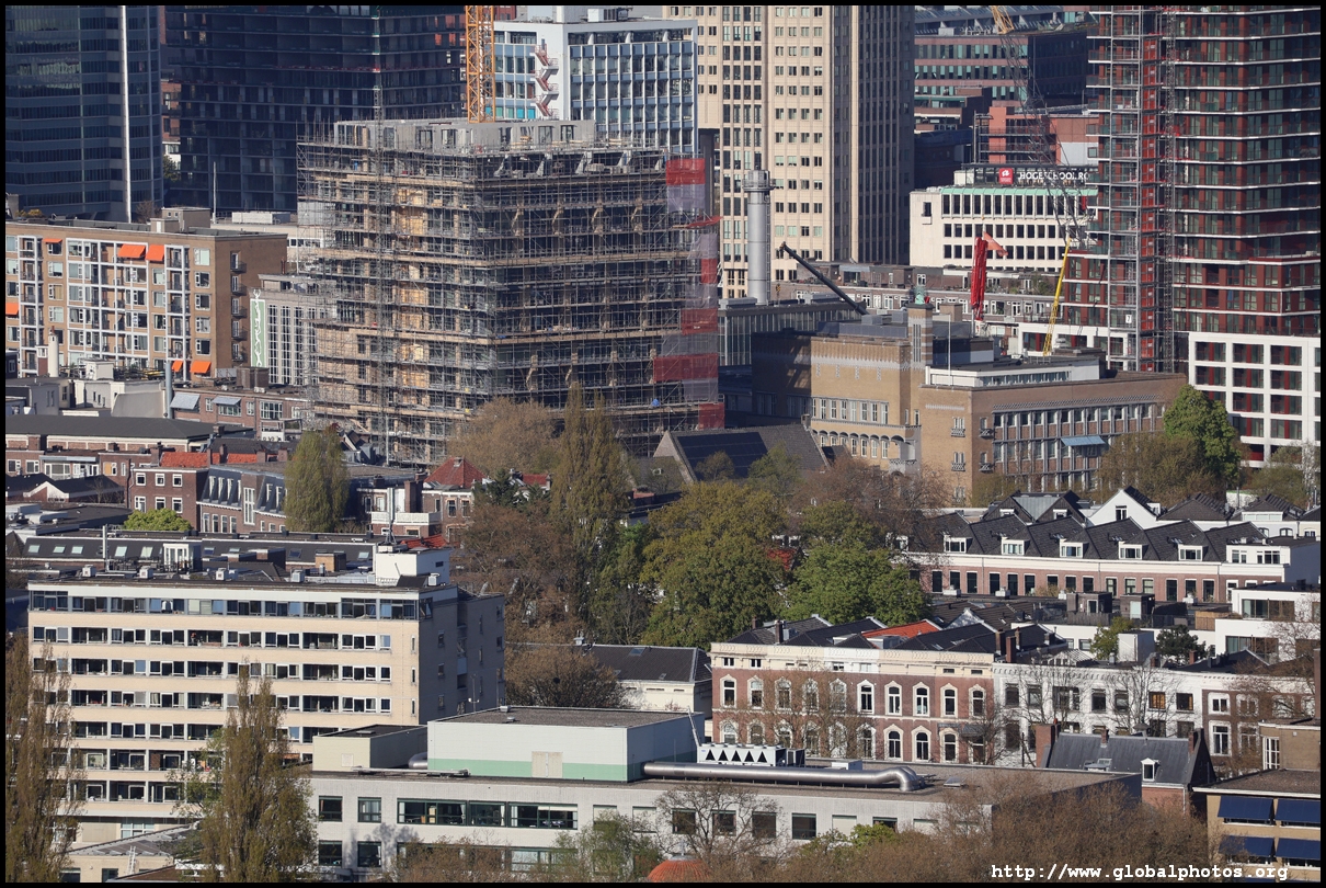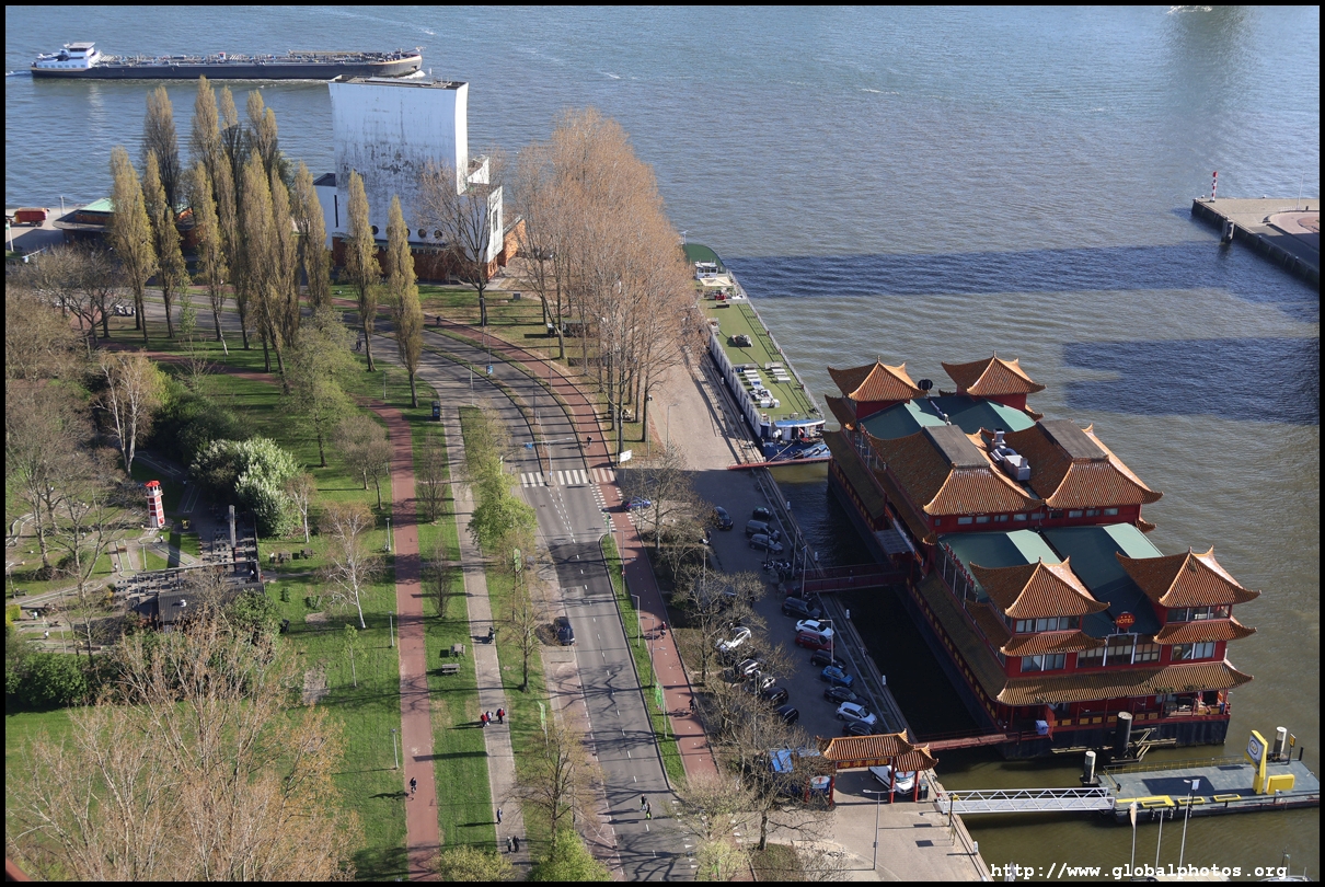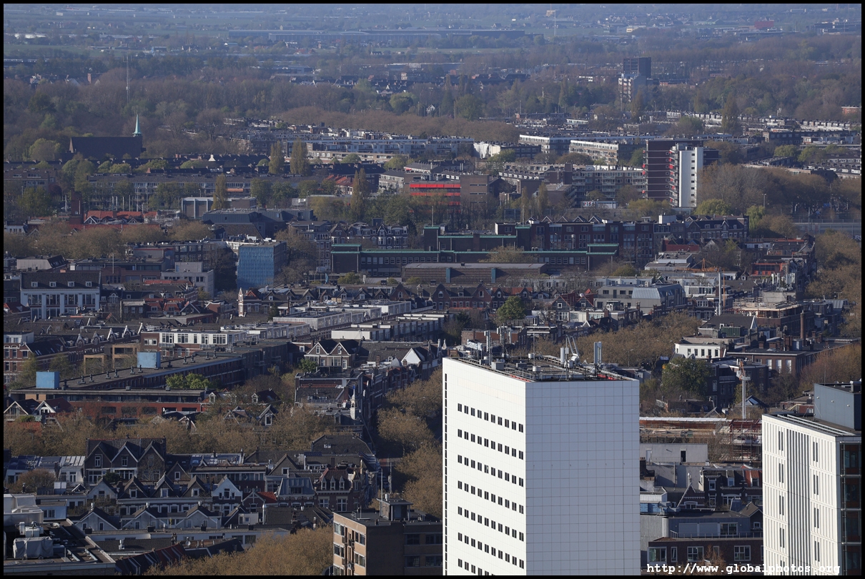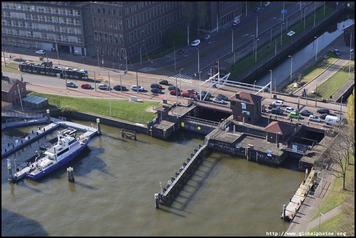 The tower is just across the highway from Het Park, a nice urban oasis along the Nieuwe Maas river. On the other side of the river towards the south are plenty of residential developments around Rijnhaven, Maashaven, and further beyond. To the west, the residential communities slowly fade away and the massive port takes over all the way to the North Sea. In 2024, Rotterdam's port throughput exceeded 435 million tonnes, including 13.8 million container TEU, ranking it the largest in Europe. To the north, I can make out The Hague's skyline in the distance. The metro's line E connects both cities together, with a journey time of about half an hour from Centraal station.