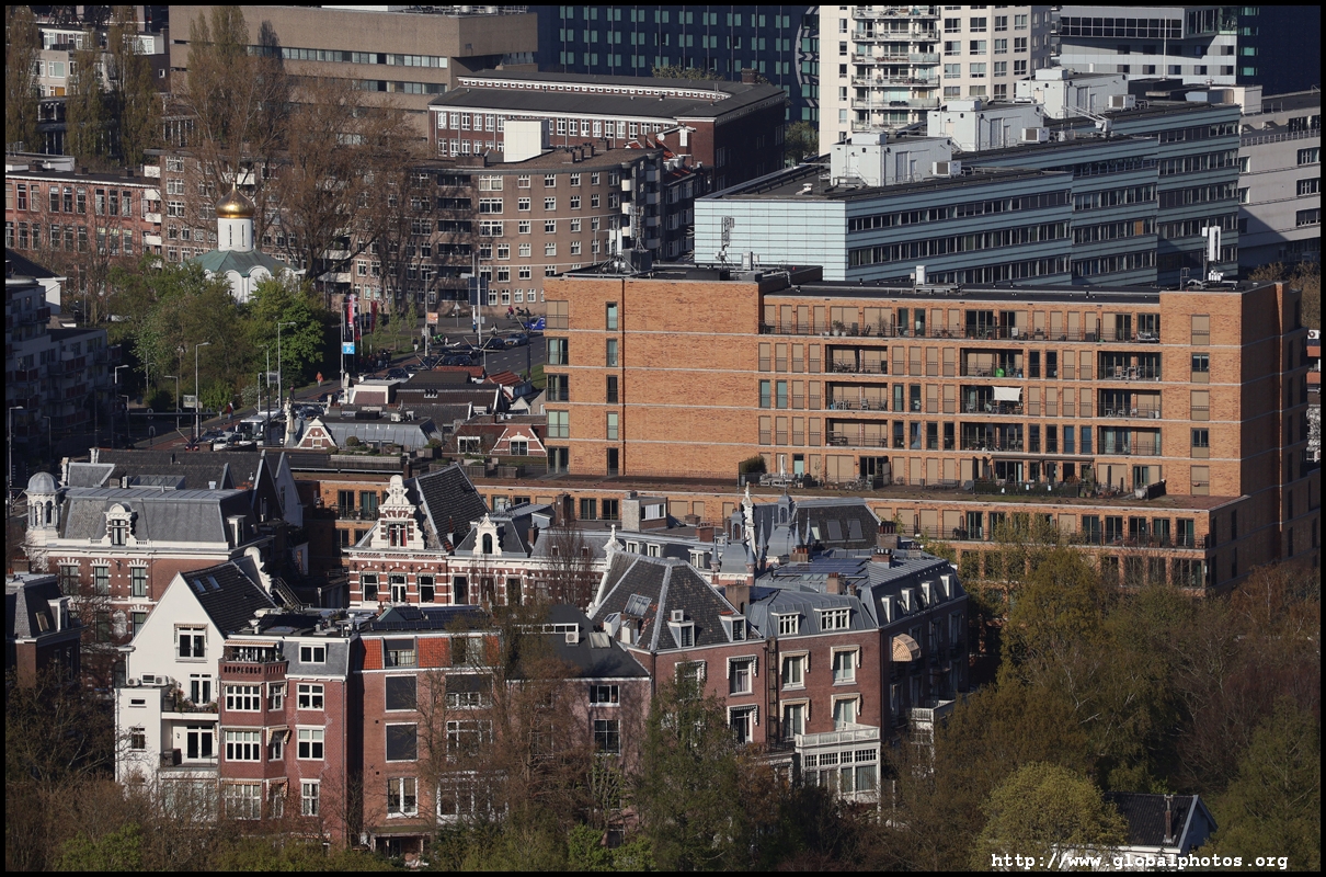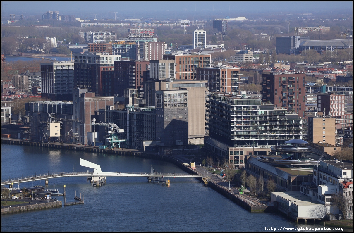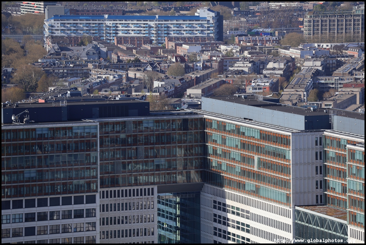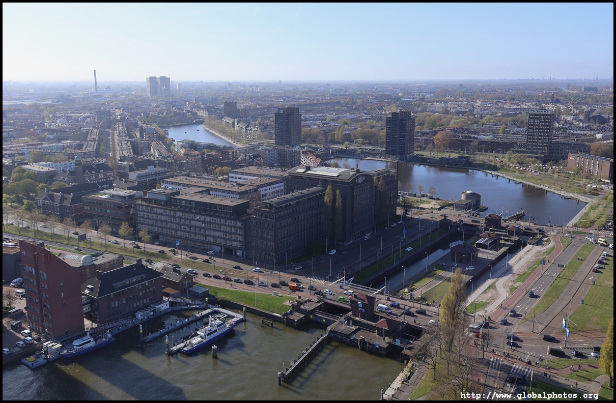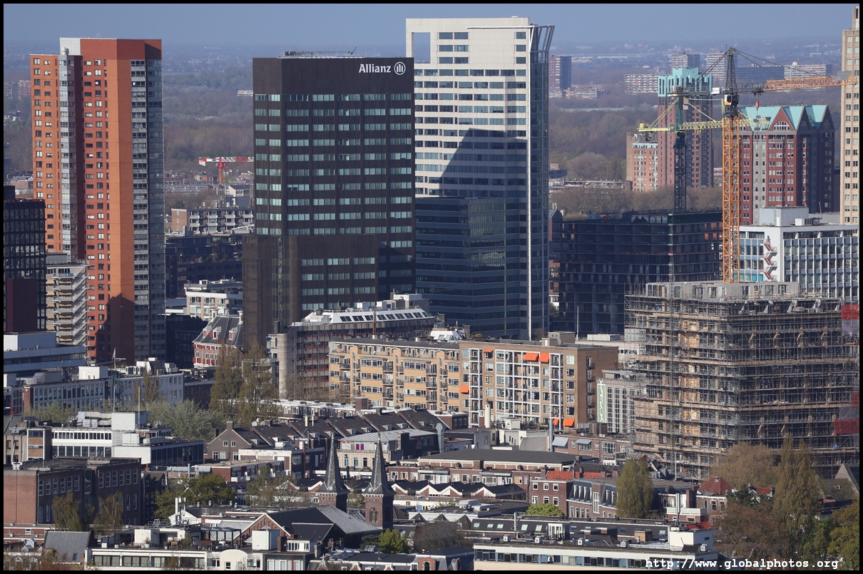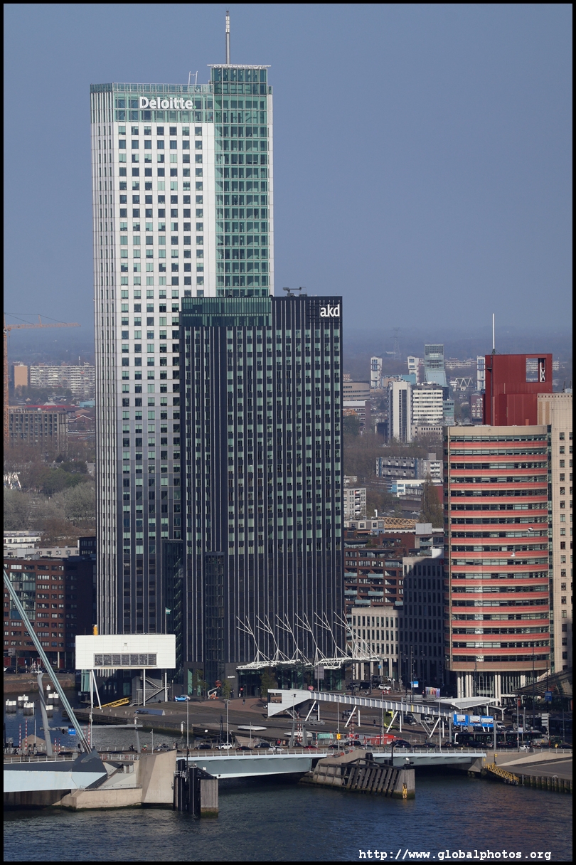 The tower is just across the highway from Het Park, a nice urban oasis along the Nieuwe Maas river. On the other side of the river towards the south are plenty of residential developments around Rijnhaven, Maashaven, and further beyond. To the west, the residential communities slowly fade away and the massive port takes over all the way to the North Sea. In 2024, Rotterdam's port throughput exceeded 435 million tonnes, including 13.8 million container TEU, ranking it the largest in Europe. To the north, I can make out The Hague's skyline in the distance. The metro's line E connects both cities together, with a journey time of about half an hour from Centraal station.