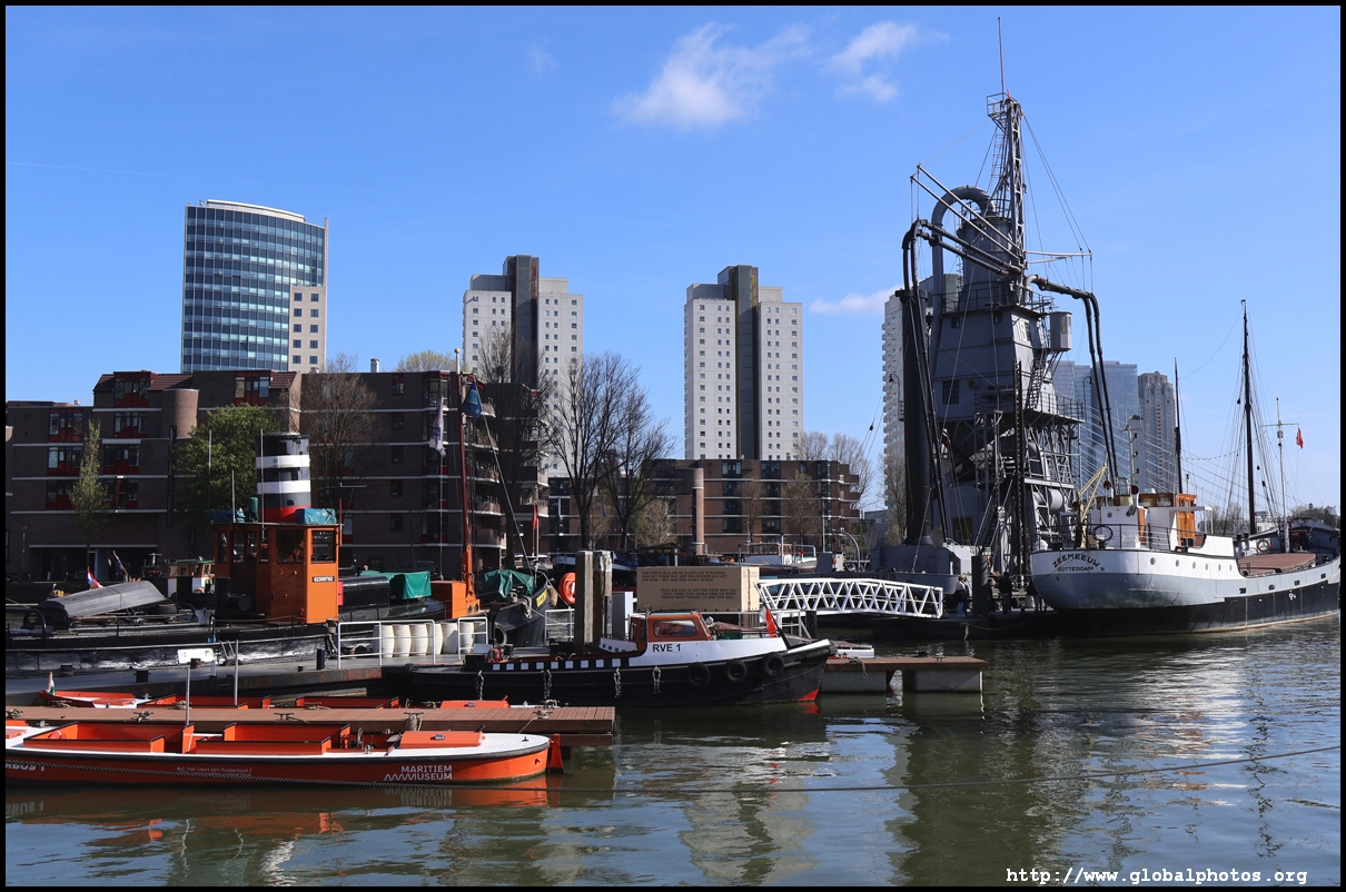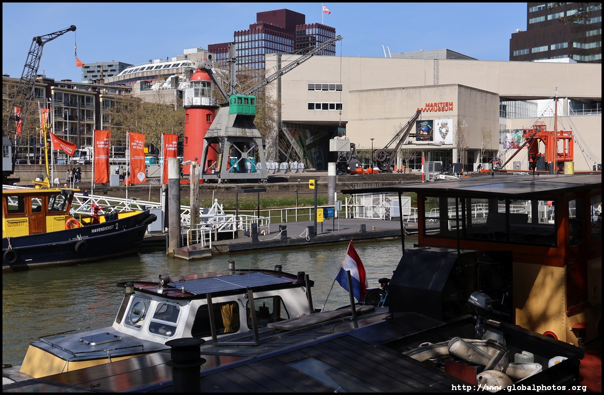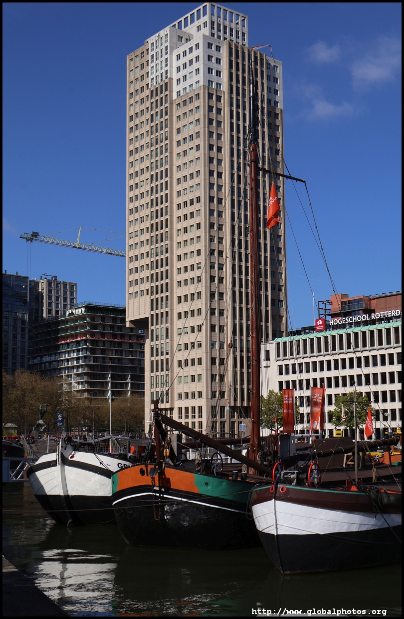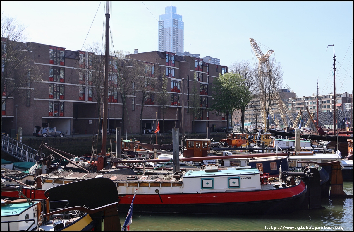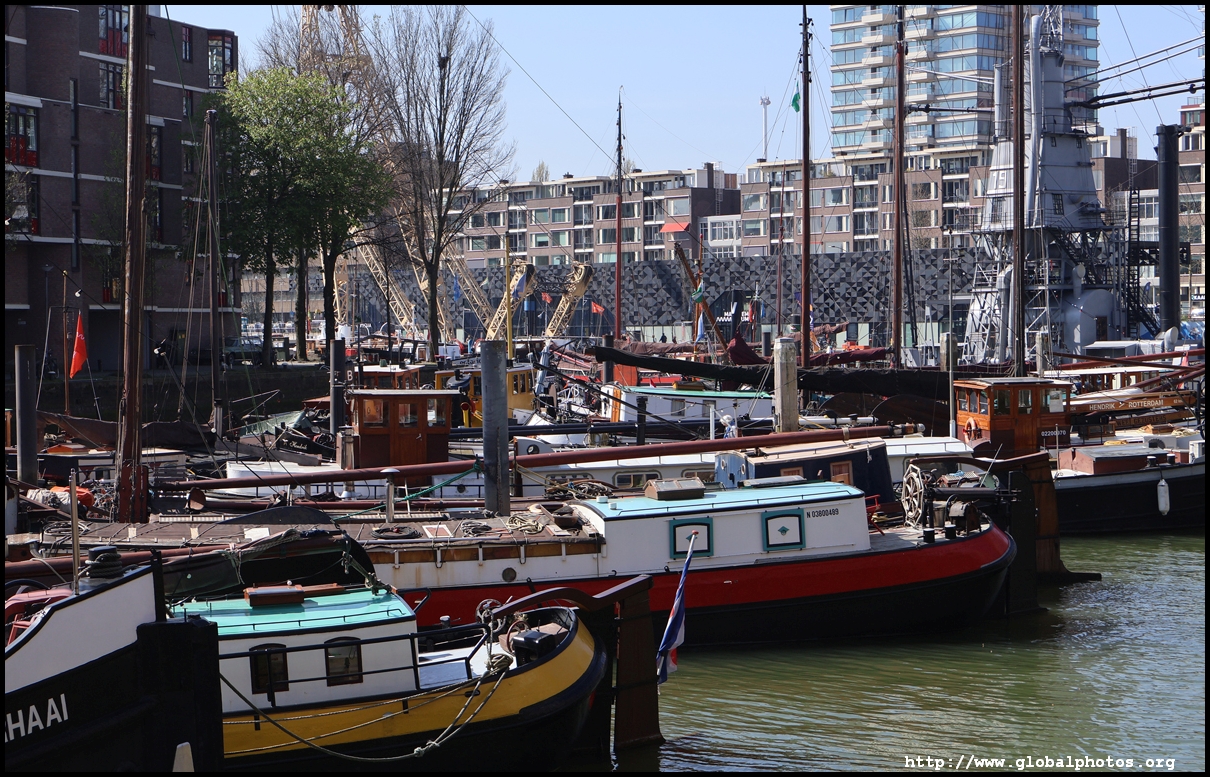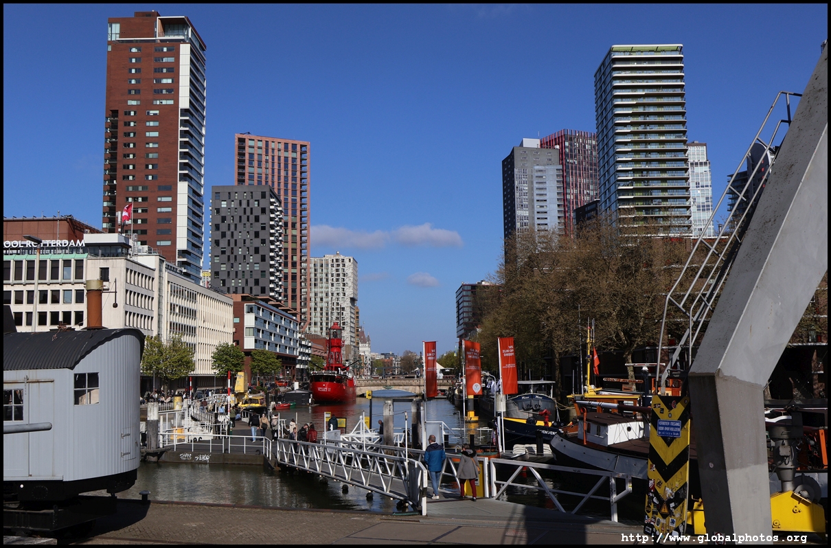 During the 17th century, Leuvehaven was a busy place where ships came and left for distant lands, bringing back exotic goods such as sugar, coffee, cocoa, and spices. The transatlantic trade triangle involved loading ships in Rotterdam with textiles, alcohol, and weapons destined for Africa, then slaves to the Americas, and finally plantation products back to Europe.Starting from the end of the Erasmusbrug, the National Merchant Navy Monument (De Boeg) along the waterfront stands 45m high and was unveiled in 1957. It honours the 2134 Dutch and 1414 foreign sailors who died in World War II. Many of the Maritiem Museum's boats are moored here along the western edge of Leuvehaven that you can see for free. There are also small work areas that are open to the public without admission. The unloaded cargoes were stored in warehouses along the harbour, which is where the wealthy merchants live. On the eastern side of Leuvehaven are residential buildings where residents enjoy the views in very serene surroundings. There won't be much tourist traffic here.