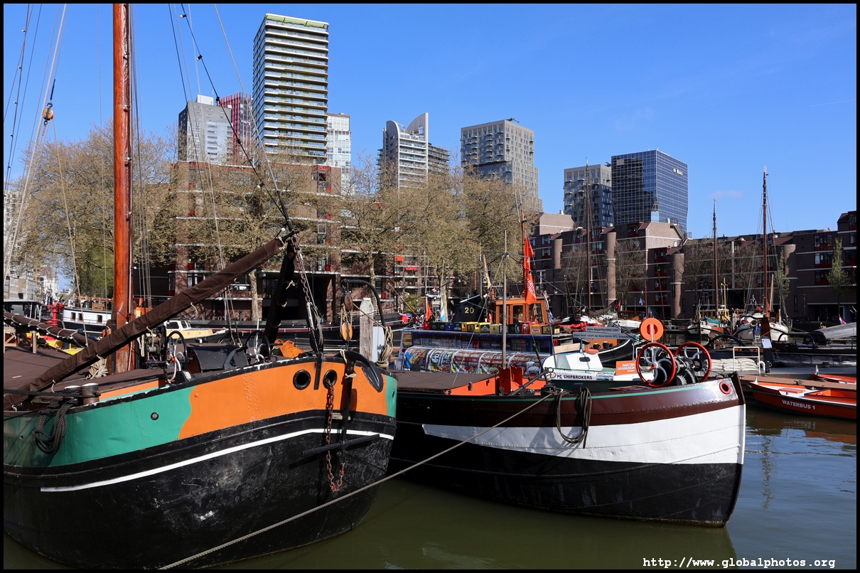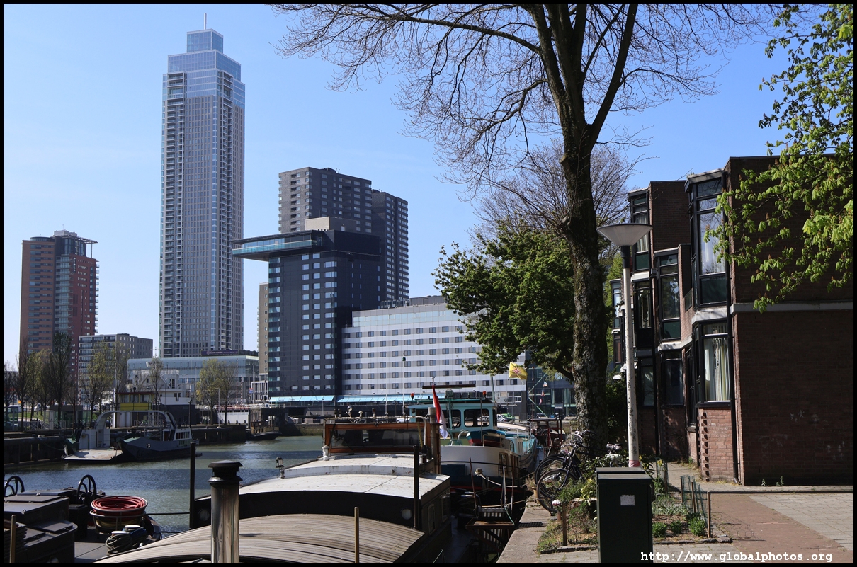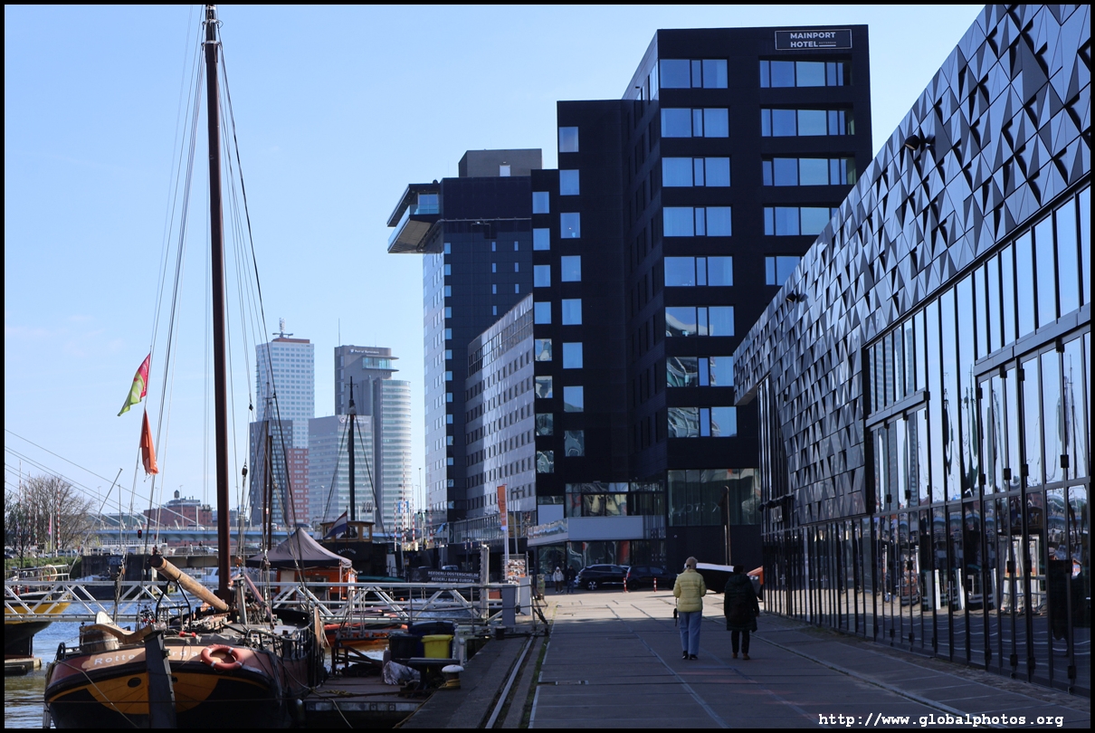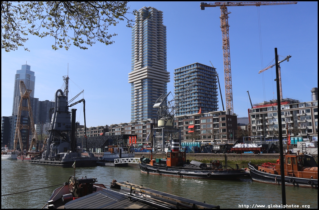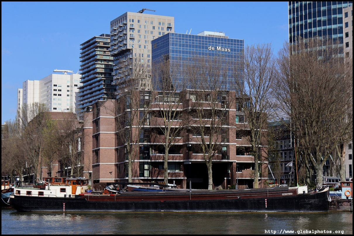 During the 17th century, Leuvehaven was a busy place where ships came and left for distant lands, bringing back exotic goods such as sugar, coffee, cocoa, and spices. The transatlantic trade triangle involved loading ships in Rotterdam with textiles, alcohol, and weapons destined for Africa, then slaves to the Americas, and finally plantation products back to Europe.Starting from the end of the Erasmusbrug, the National Merchant Navy Monument (De Boeg) along the waterfront stands 45m high and was unveiled in 1957. It honours the 2134 Dutch and 1414 foreign sailors who died in World War II. Many of the Maritiem Museum's boats are moored here along the western edge of Leuvehaven that you can see for free. There are also small work areas that are open to the public without admission. The unloaded cargoes were stored in warehouses along the harbour, which is where the wealthy merchants live. On the eastern side of Leuvehaven are residential buildings where residents enjoy the views in very serene surroundings. There won't be much tourist traffic here.