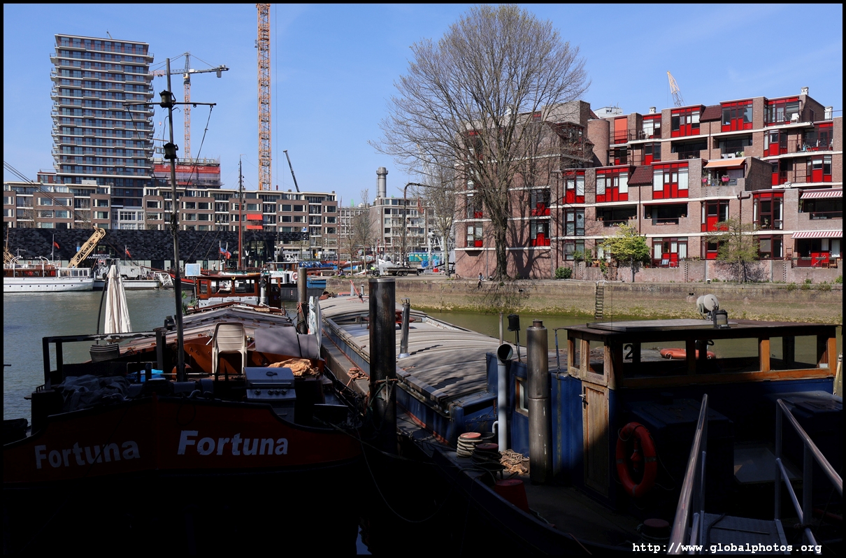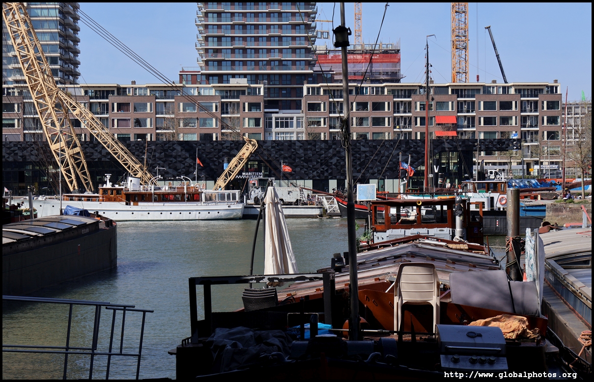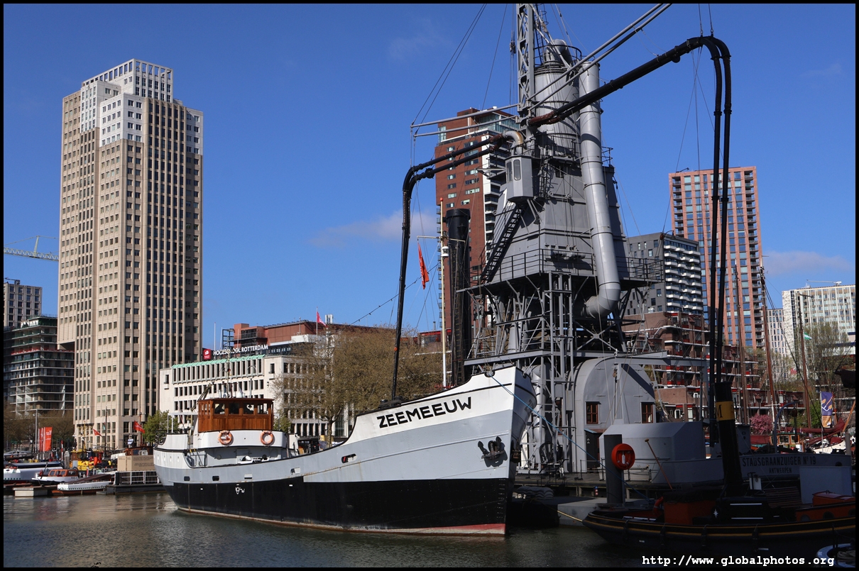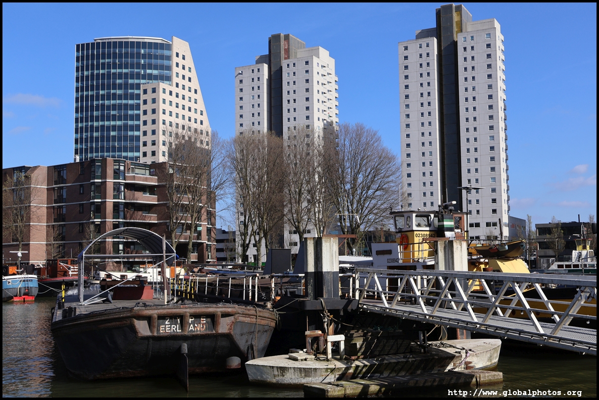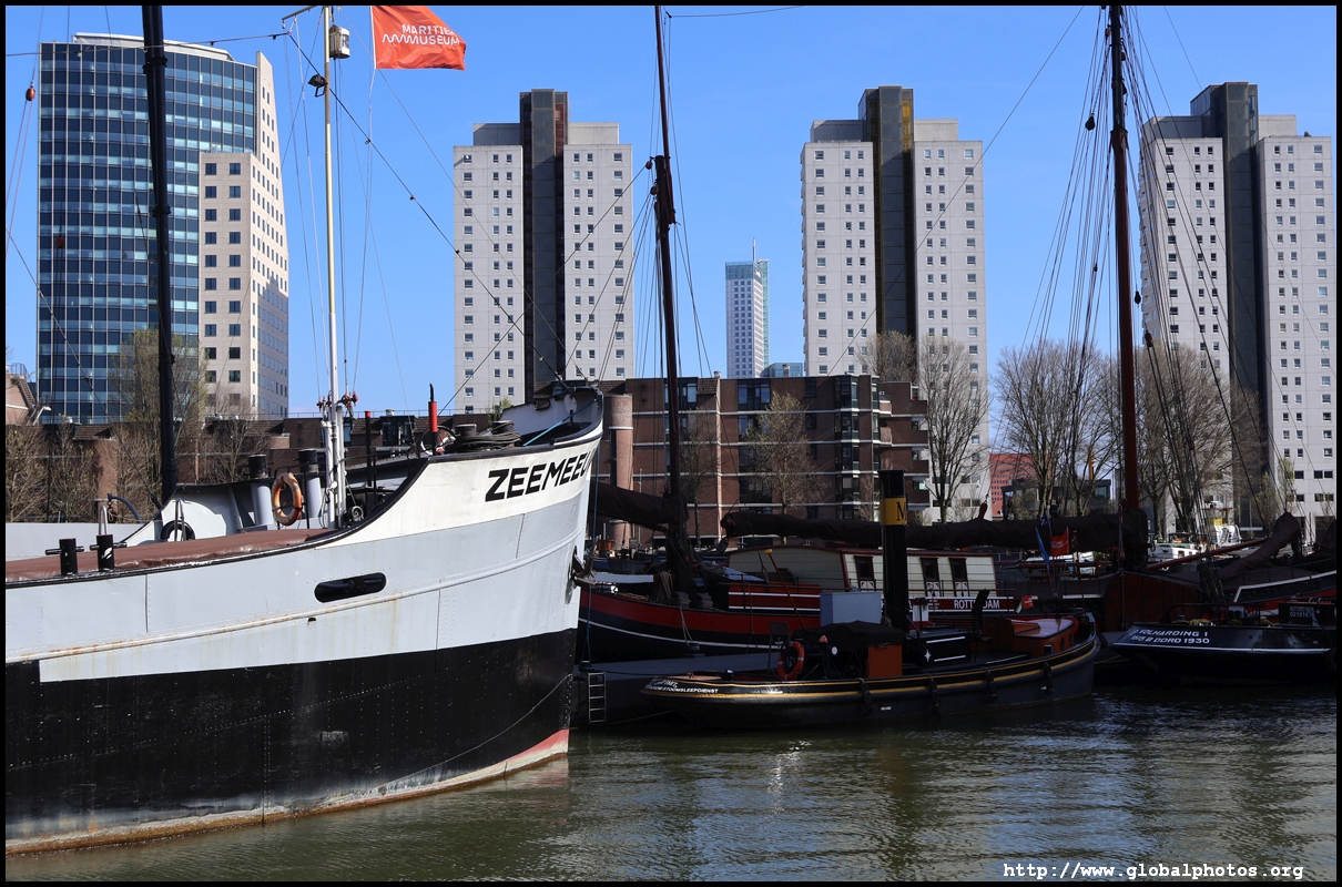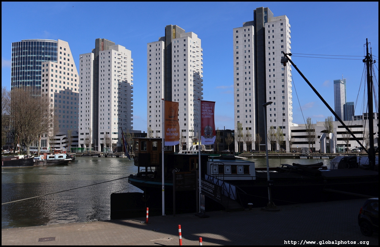 During the 17th century, Leuvehaven was a busy place where ships came and left for distant lands, bringing back exotic goods such as sugar, coffee, cocoa, and spices. The transatlantic trade triangle involved loading ships in Rotterdam with textiles, alcohol, and weapons destined for Africa, then slaves to the Americas, and finally plantation products back to Europe.Starting from the end of the Erasmusbrug, the National Merchant Navy Monument (De Boeg) along the waterfront stands 45m high and was unveiled in 1957. It honours the 2134 Dutch and 1414 foreign sailors who died in World War II. Many of the Maritiem Museum's boats are moored here along the western edge of Leuvehaven that you can see for free. There are also small work areas that are open to the public without admission. The unloaded cargoes were stored in warehouses along the harbour, which is where the wealthy merchants live. On the eastern side of Leuvehaven are residential buildings where residents enjoy the views in very serene surroundings. There won't be much tourist traffic here.
