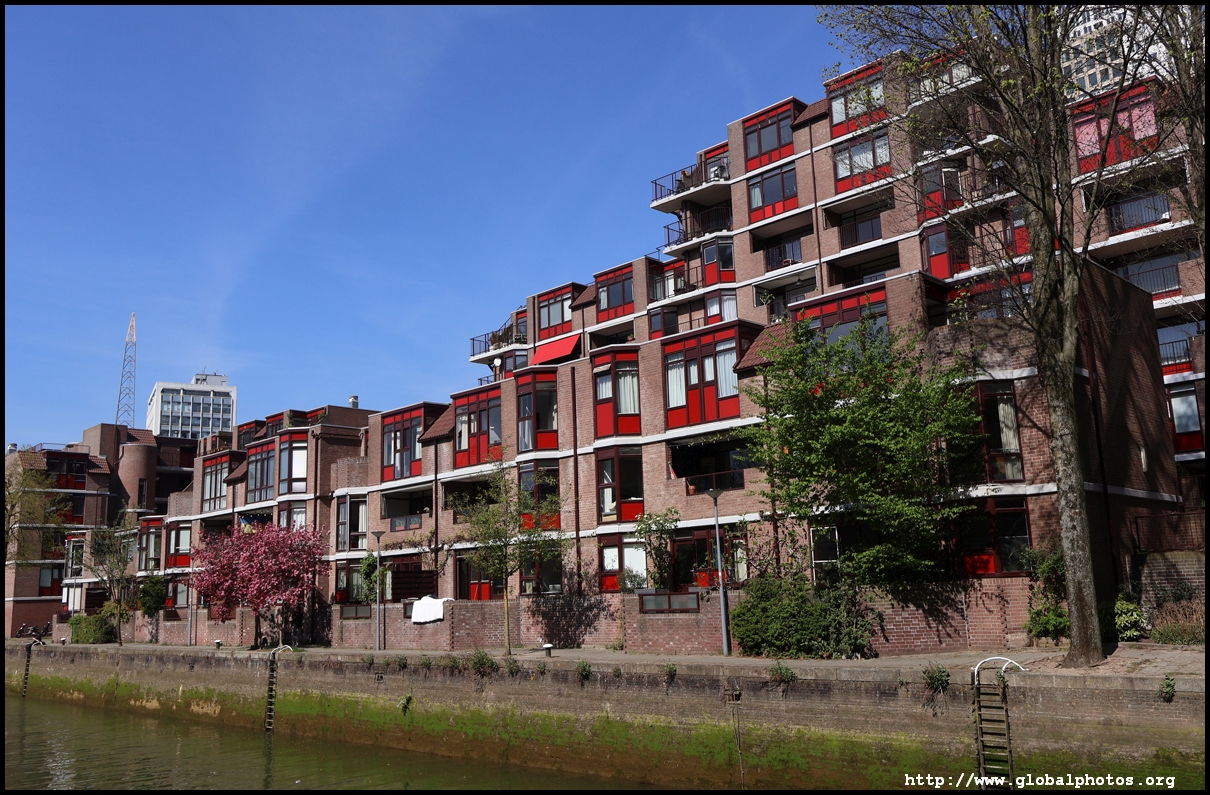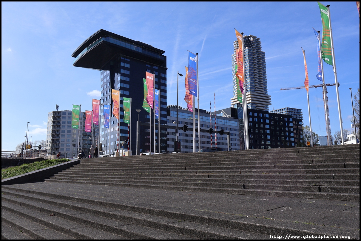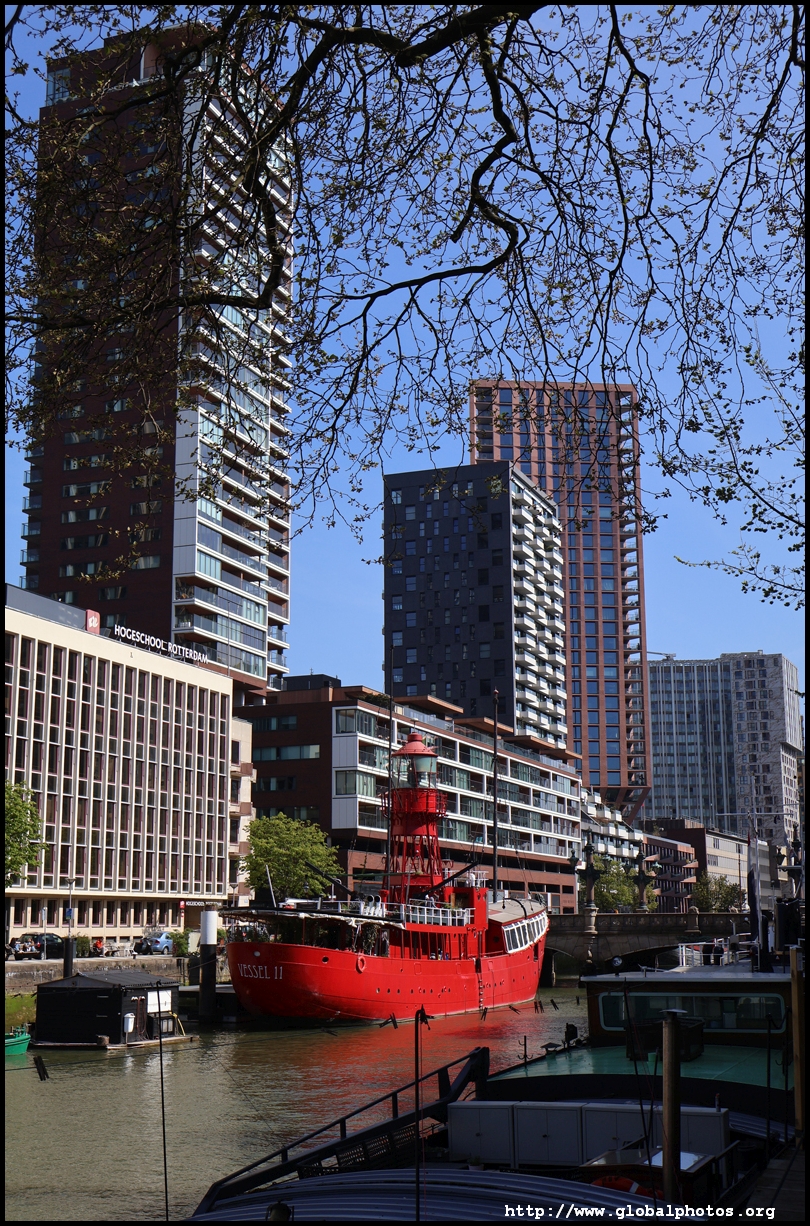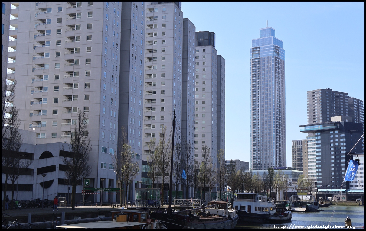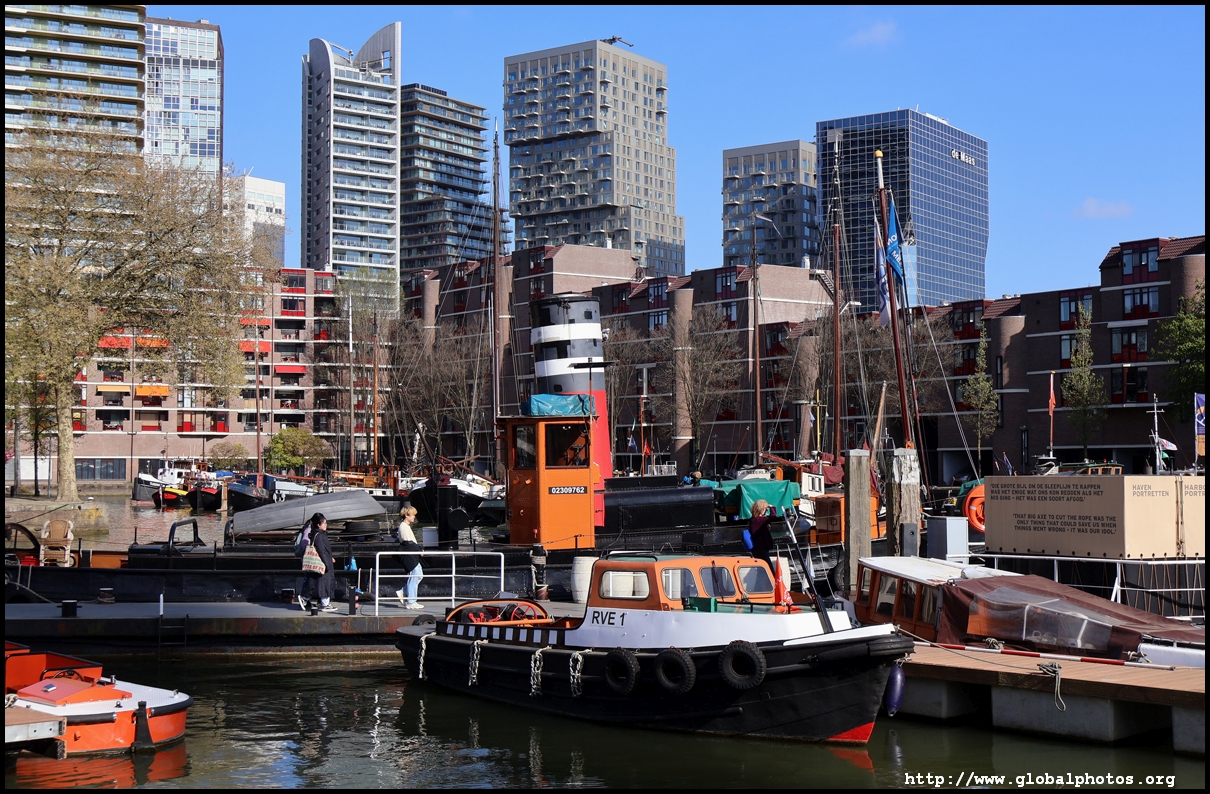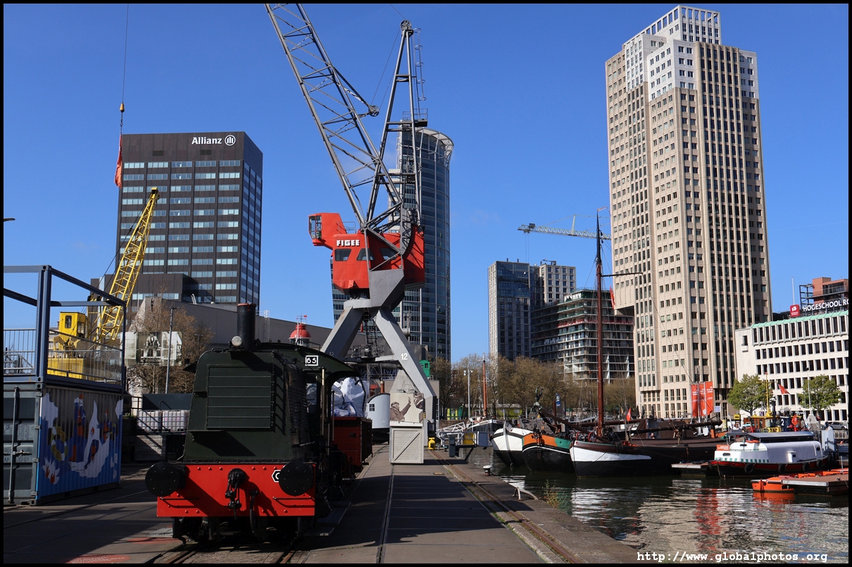 During the 17th century, Leuvehaven was a busy place where ships came and left for distant lands, bringing back exotic goods such as sugar, coffee, cocoa, and spices. The transatlantic trade triangle involved loading ships in Rotterdam with textiles, alcohol, and weapons destined for Africa, then slaves to the Americas, and finally plantation products back to Europe.Starting from the end of the Erasmusbrug, the National Merchant Navy Monument (De Boeg) along the waterfront stands 45m high and was unveiled in 1957. It honours the 2134 Dutch and 1414 foreign sailors who died in World War II. Many of the Maritiem Museum's boats are moored here along the western edge of Leuvehaven that you can see for free. There are also small work areas that are open to the public without admission. The unloaded cargoes were stored in warehouses along the harbour, which is where the wealthy merchants live. On the eastern side of Leuvehaven are residential buildings where residents enjoy the views in very serene surroundings. There won't be much tourist traffic here.