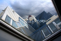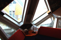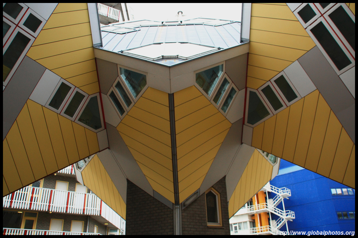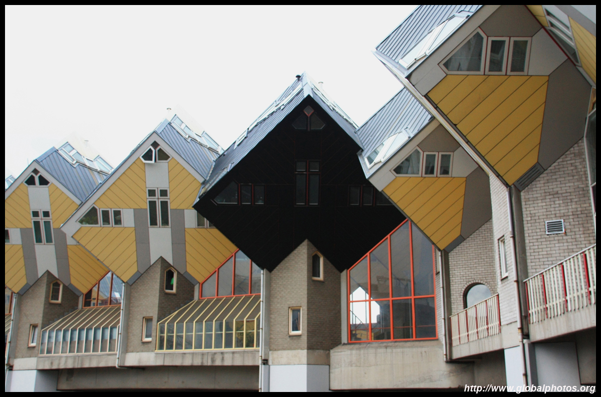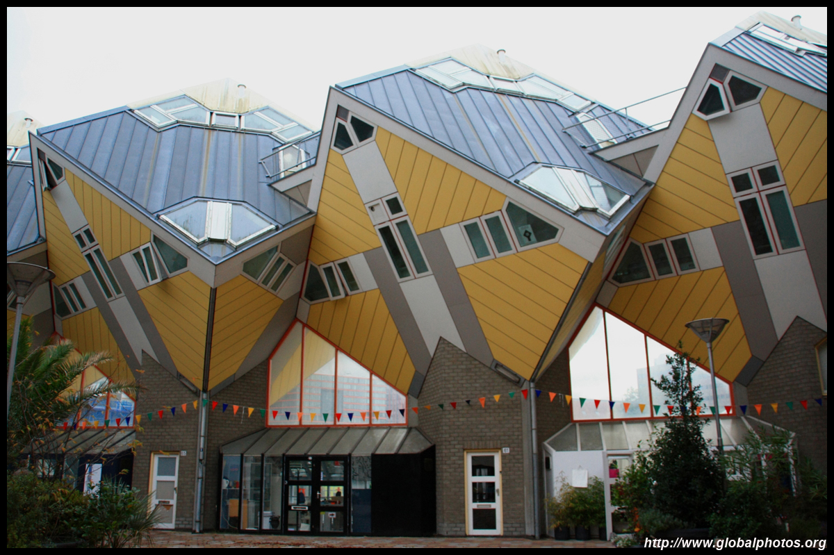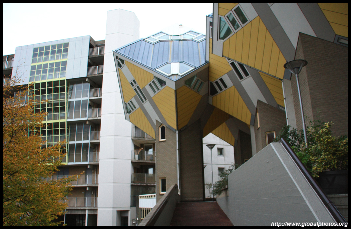 Located in the historic port, Kubuswoningen was designed by Piet Blom as a cube concept that challenged conventional norms. He believed that housing needs to be recognizable as such and his creation showcased progressiveness and innovation as part of the city's reconstruction. The city didn't want bland architecture here. Each elevated cube represented a tree and the entire complex was a forest, allowing plenty of public space below.