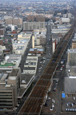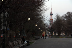 Perhaps because it was still chilly, but the rest of Sapporo in this part of town appears empty. The linear Odori Park is only a few blocks away and stretches across many blocks east-to-west.