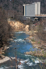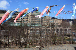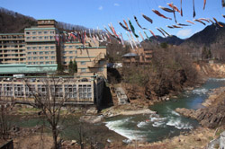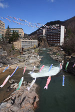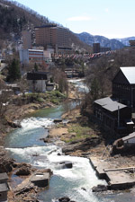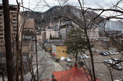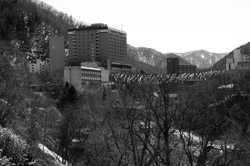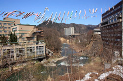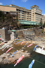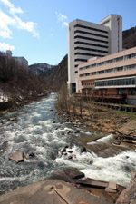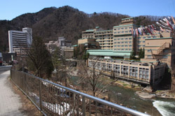 Lots of hotels line both banks of the river. The river itself is not scenic whatsoever, but I guess the key attraction are the hot baths inside, powered by the natural springs.