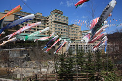 56 hot spring sources in this area provide 8600L of hot water per minute. It all started when a monk discovered the springs in 1866 and opened a healing spa.