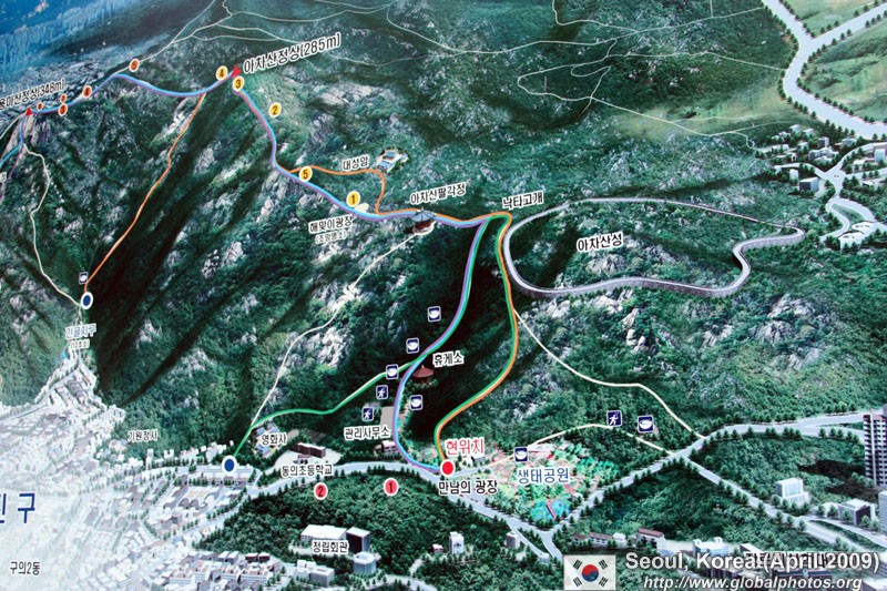 At 287 m, Achasan is located in the eastern part of the city. Ancient Korean kingdoms fought over these lands for control of the Han River valley.