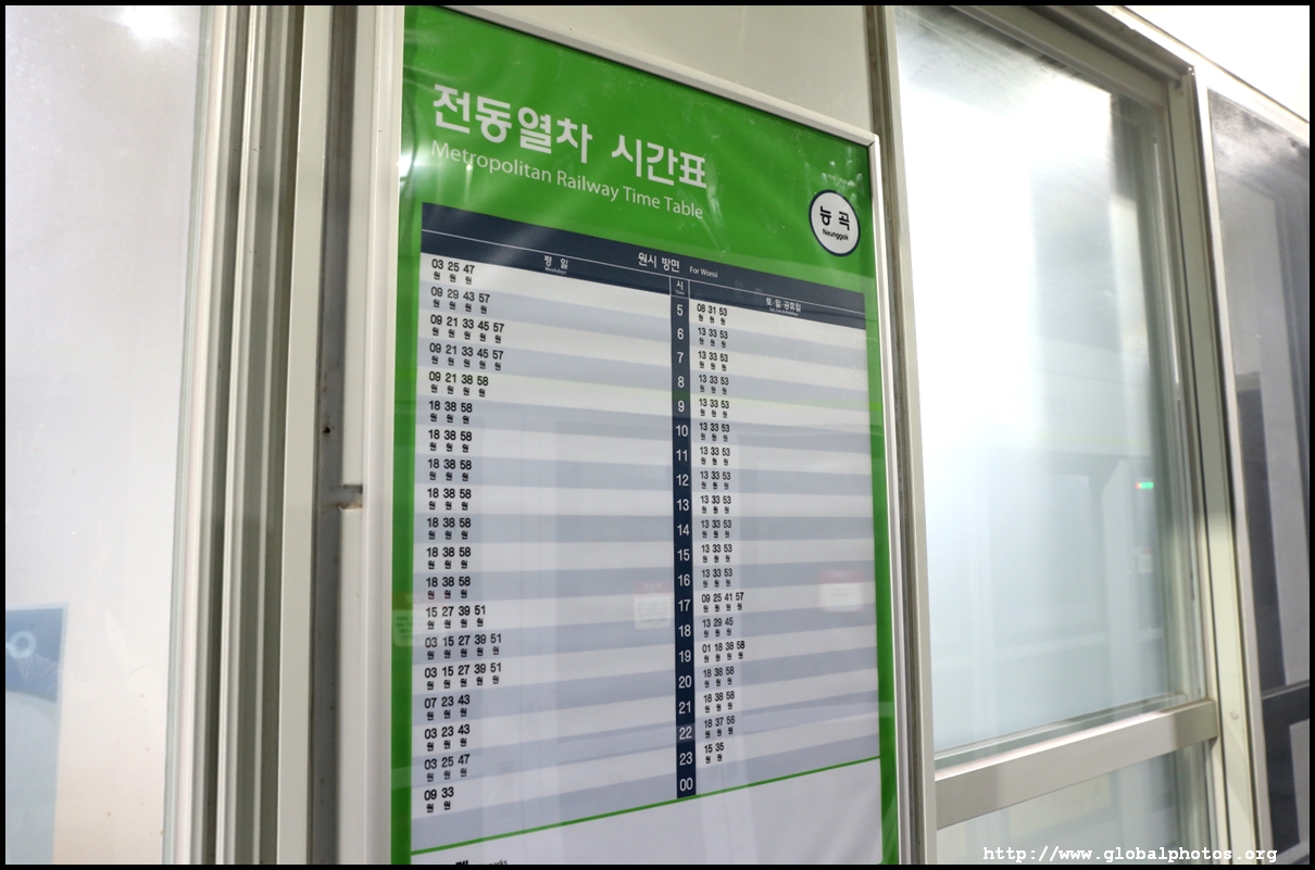 I start my grand tour at Neunggok, heading south towards Sosa. I noticed frequencies at night are quite sparse, and there were very few people waiting for the train.