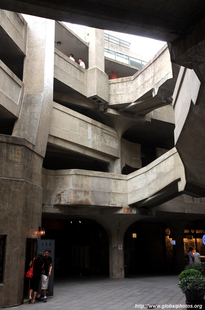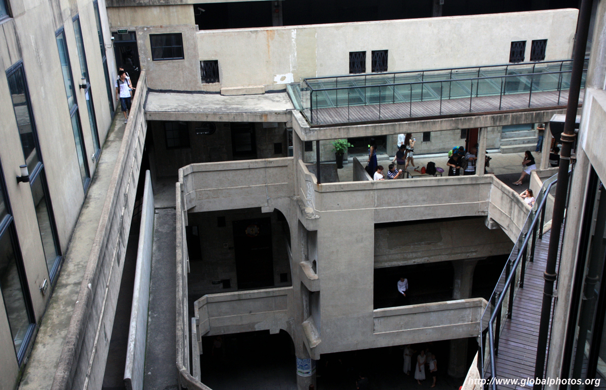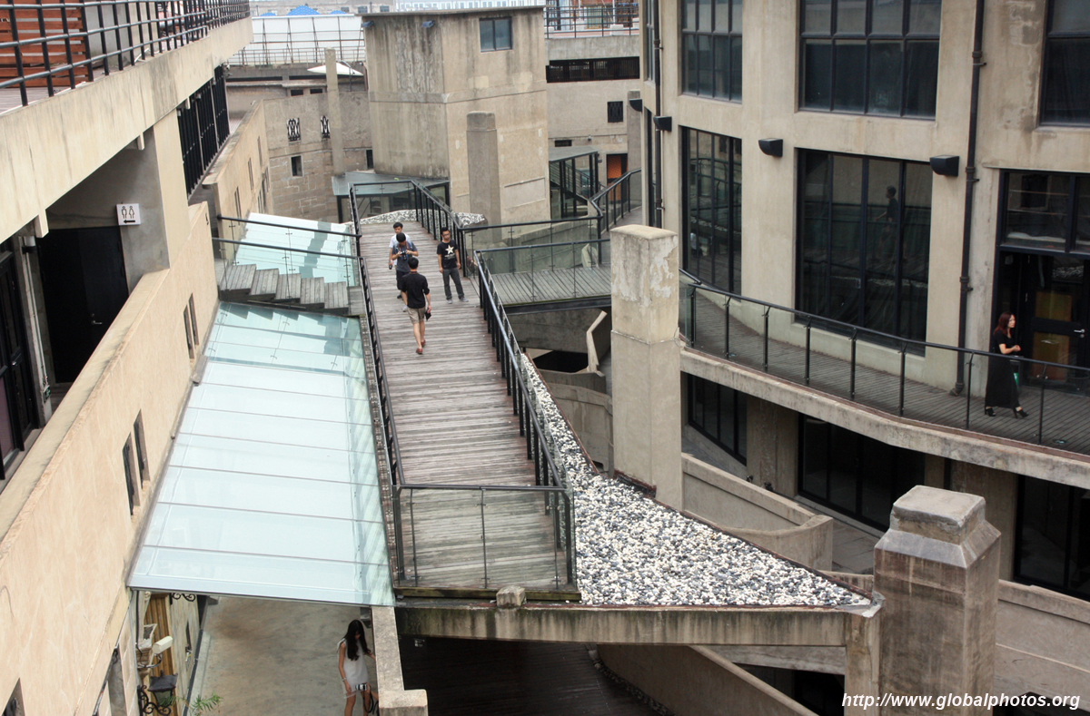 The 5-storey concrete cattle slaughterhouse at 1933 Old Millfun has been revitalized into a shopping destination. Sky-bridges and ramps around the central core were once used by cattle heading to their deaths, but now are beaming with tourists and photographers.