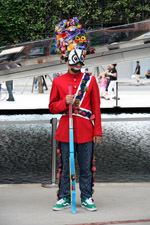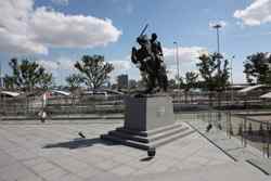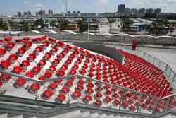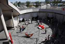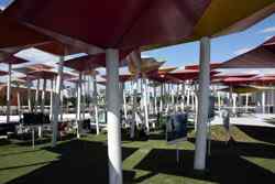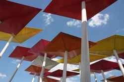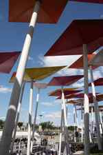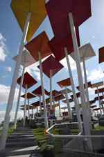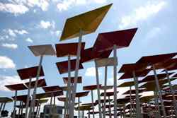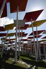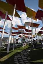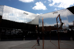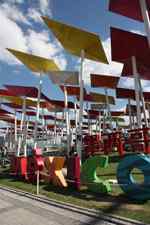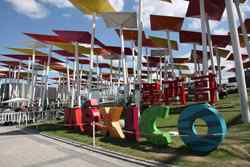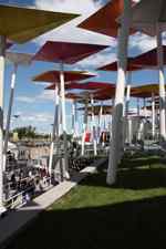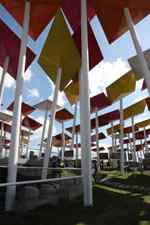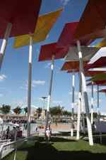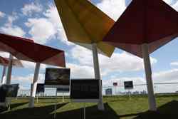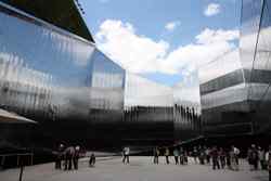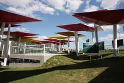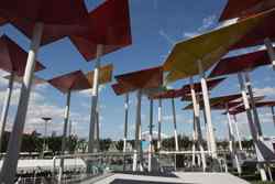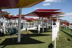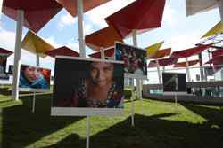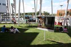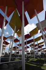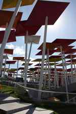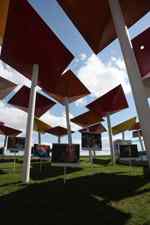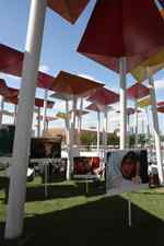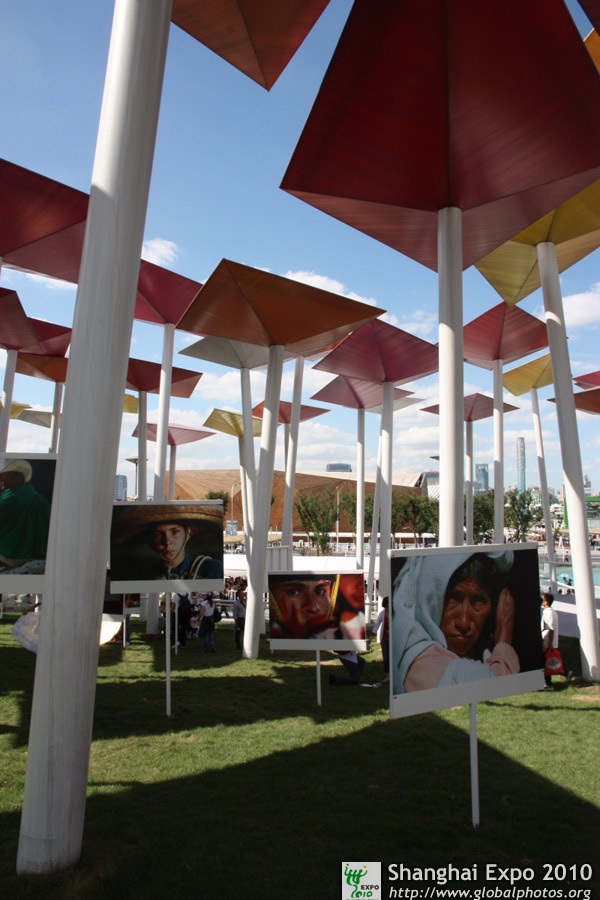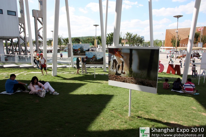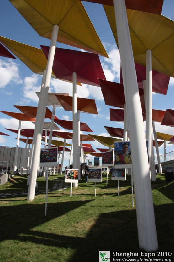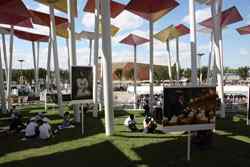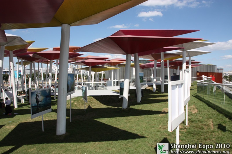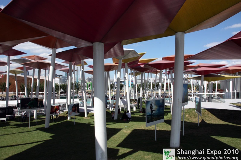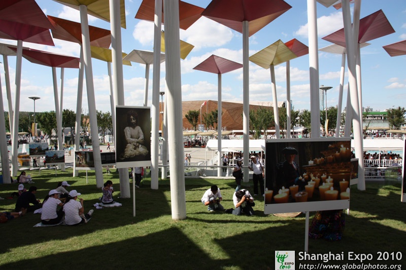At first I thought the pavilion was an outdoor park, a green oasis, but then I realized there was a line for stuff underground. I liked the shaded outdoor area more though, and opted to walk around the photo exhibits and take in a bit of shade.