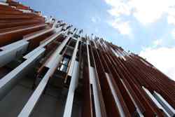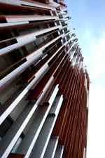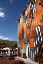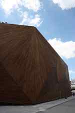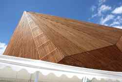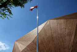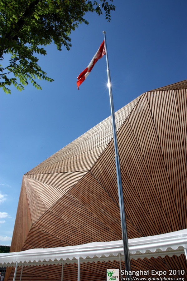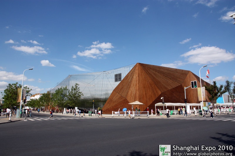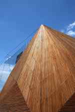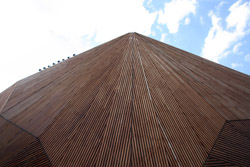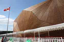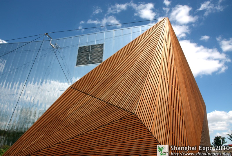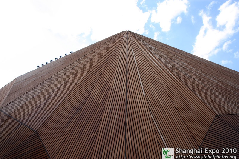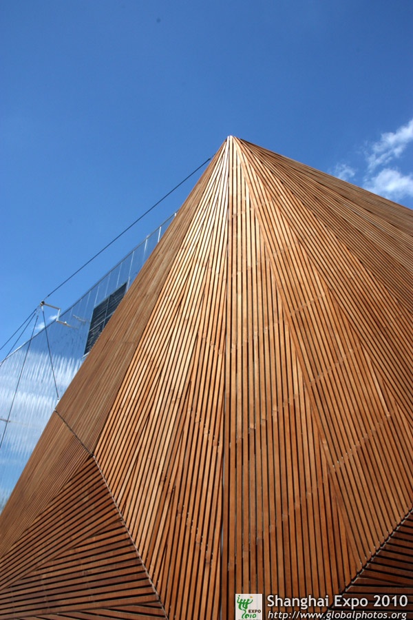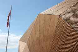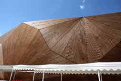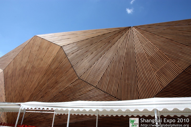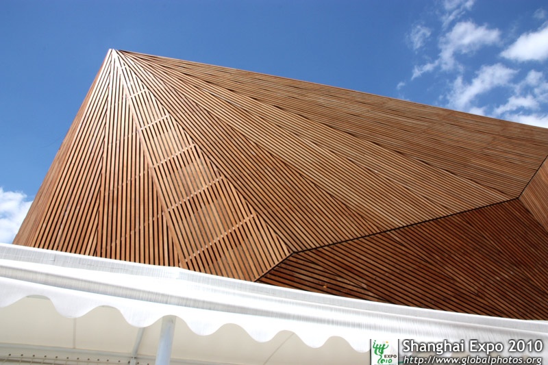 The pavilion appears to be a wooden structure along much of its exterior and screams sustainable development.