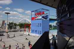 This pavilion consists of cultural exhibits and a giant video screen on an elevated platform. The restaurant seemed nice but too bad I already ate.