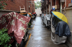 Cite Bourgogne was built in 1930 and consists of 78 lane residence buildings. The number of entrances have been restricted by placing these metal gates although visitors can freely enter and explore.