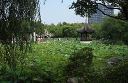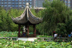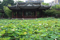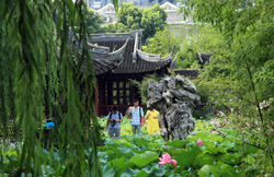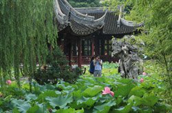 The gardens offer plenty of shading under the hot Shanghai summer with a number of pavilions, rock formations, water features, and greenery.