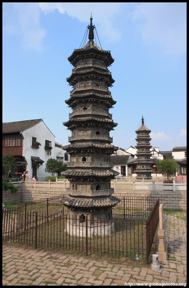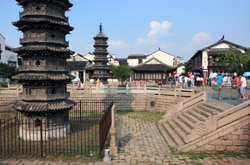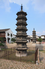 These 11m-high twin brick pagodas were first constructed arund the Five Dynasties / early Northern Song Dynasty as the gate for Nanxiang Temple. They were renovated in the 1980s.