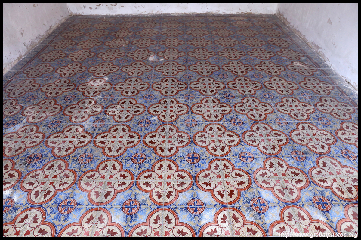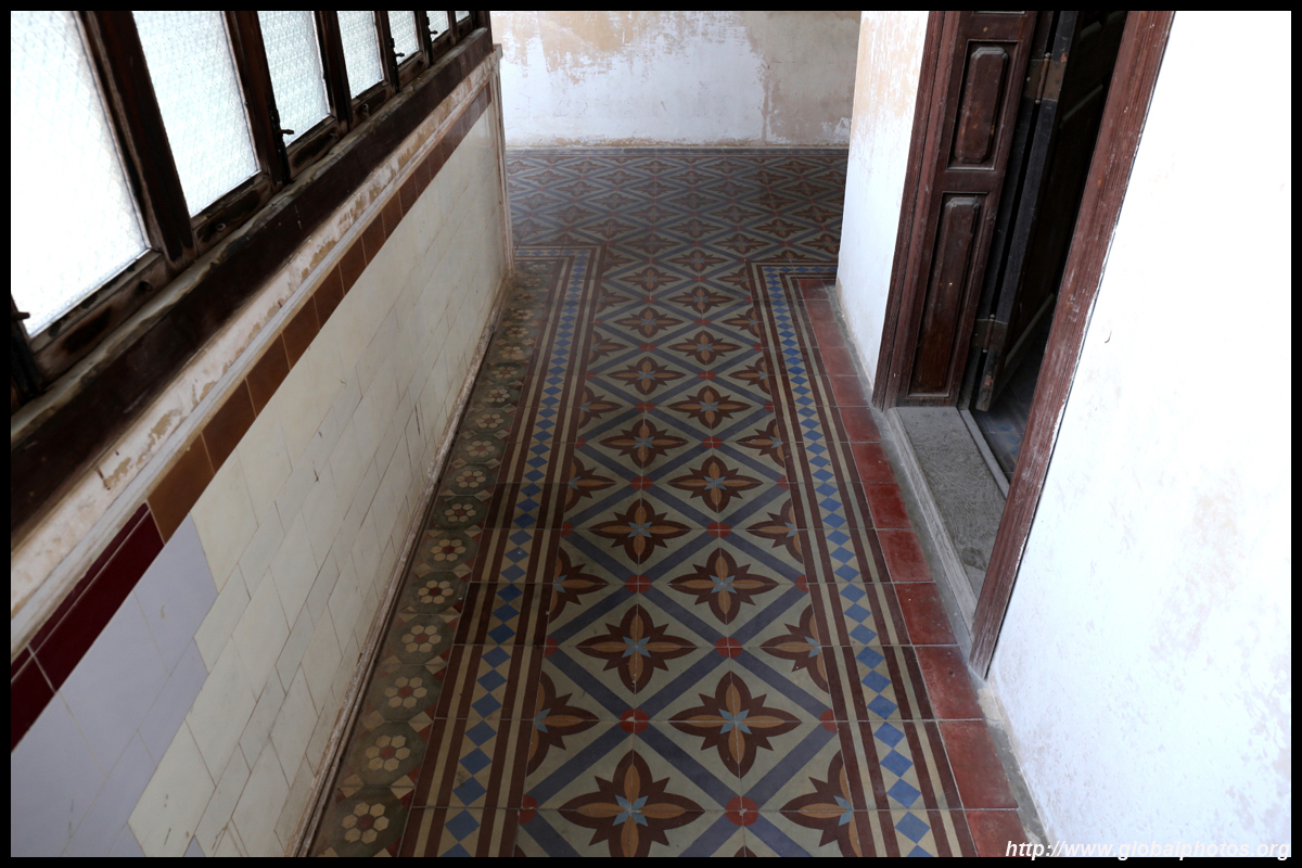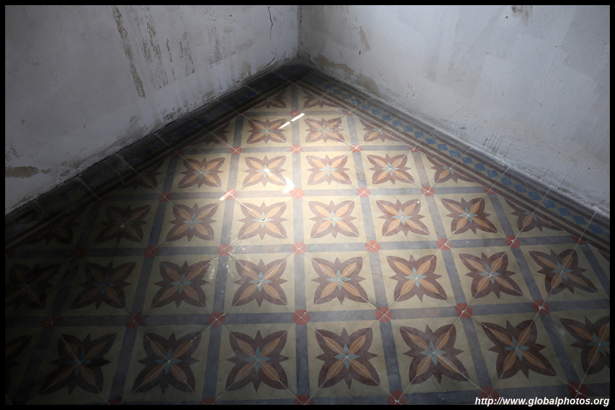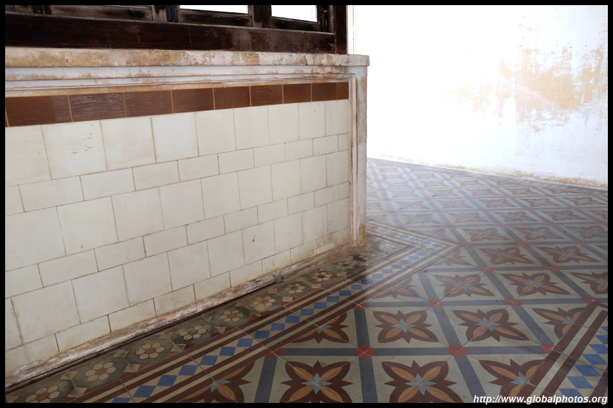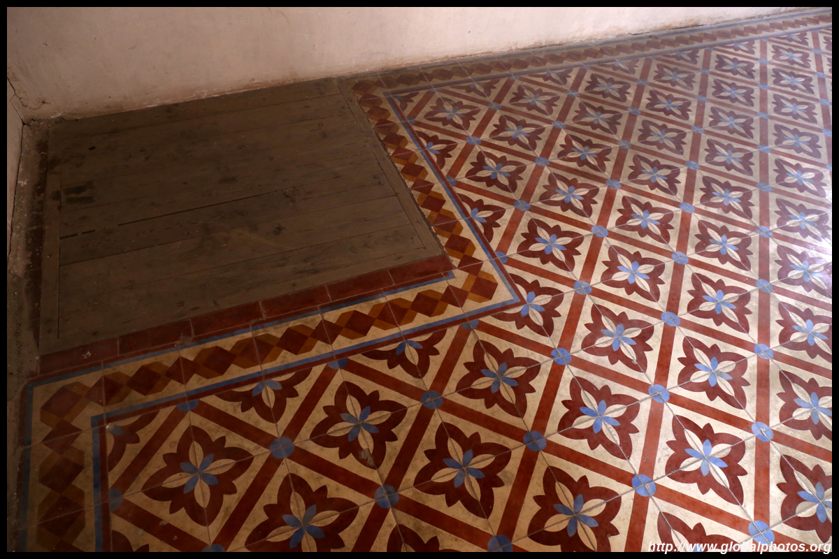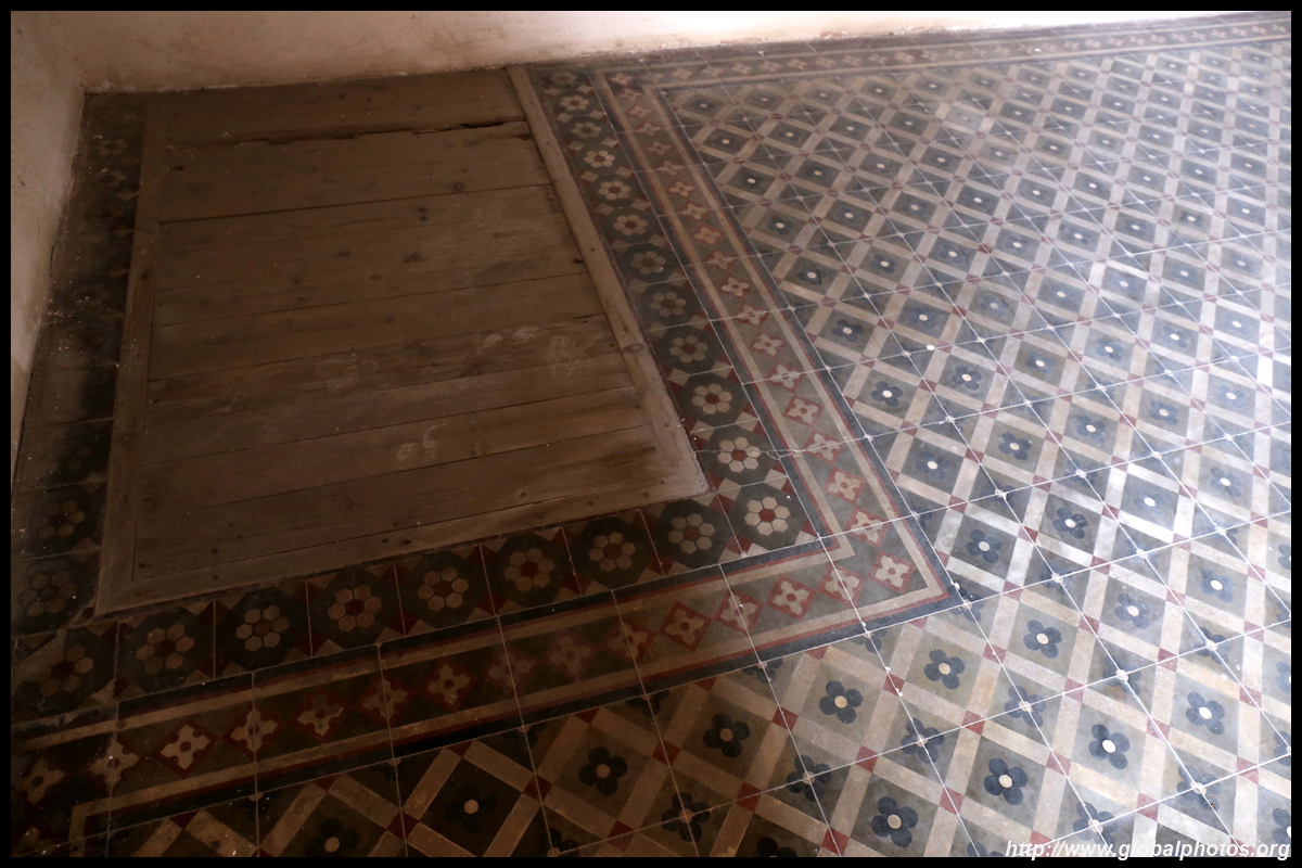 The rooms are sparsely-populated but notice the variety of floor tiles used in different rooms as well as the architectural features on door and window frames.
