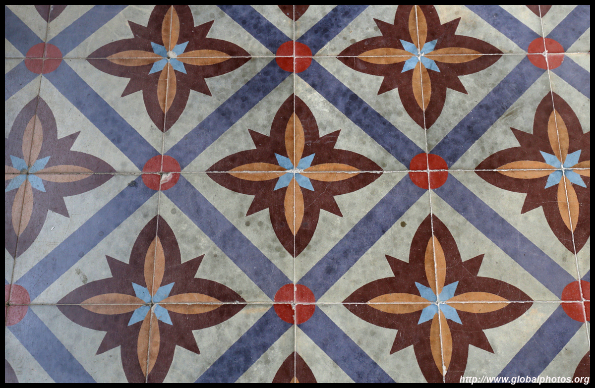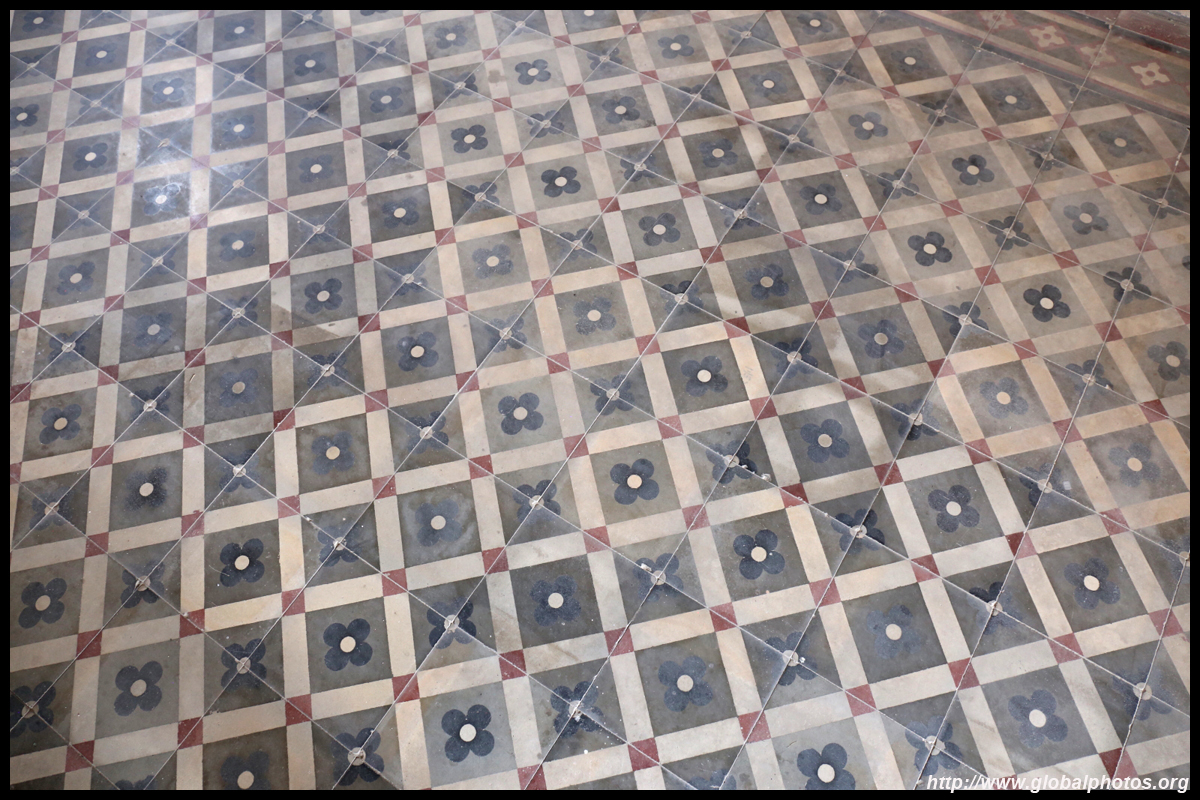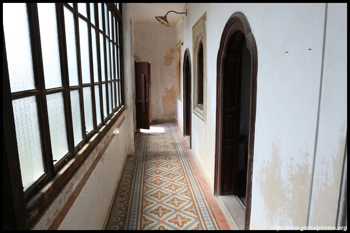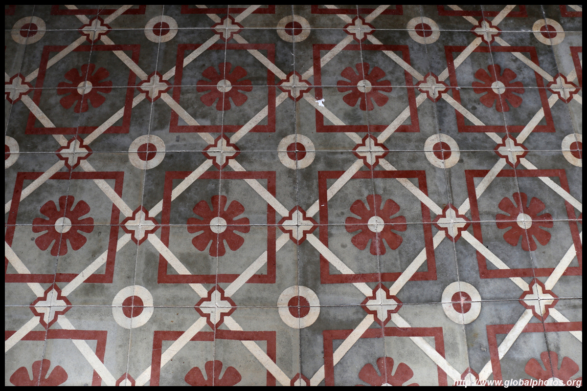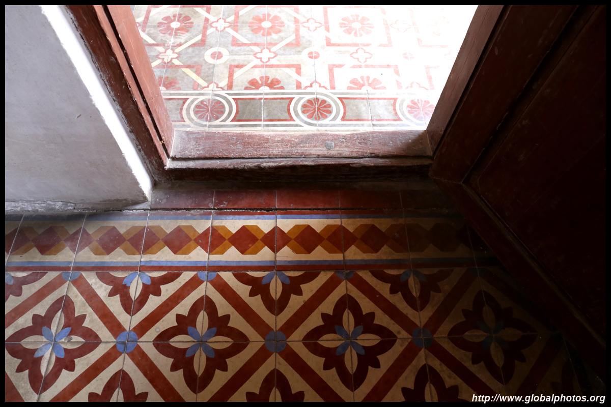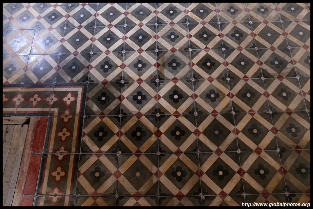 The rooms are sparsely-populated but notice the variety of floor tiles used in different rooms as well as the architectural features on door and window frames.