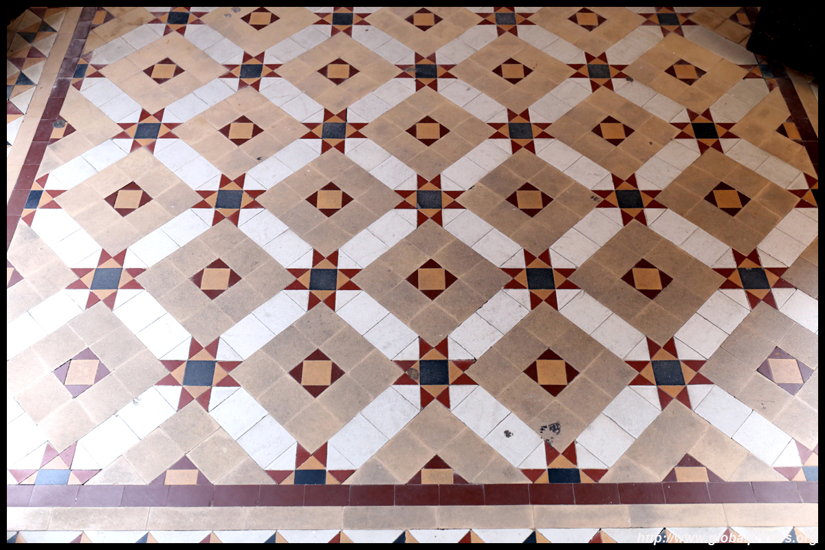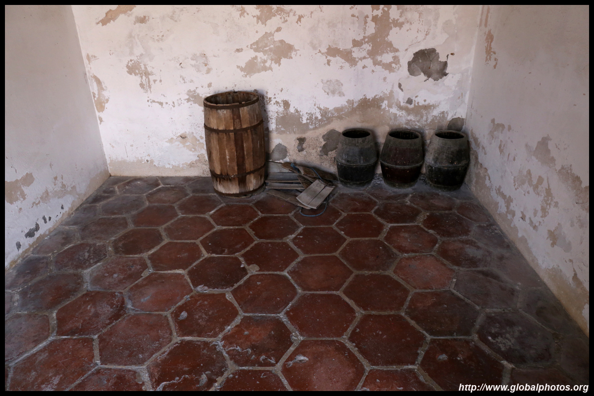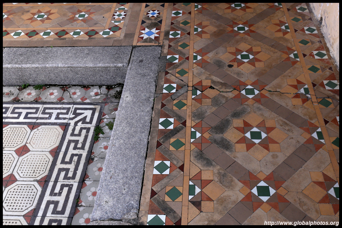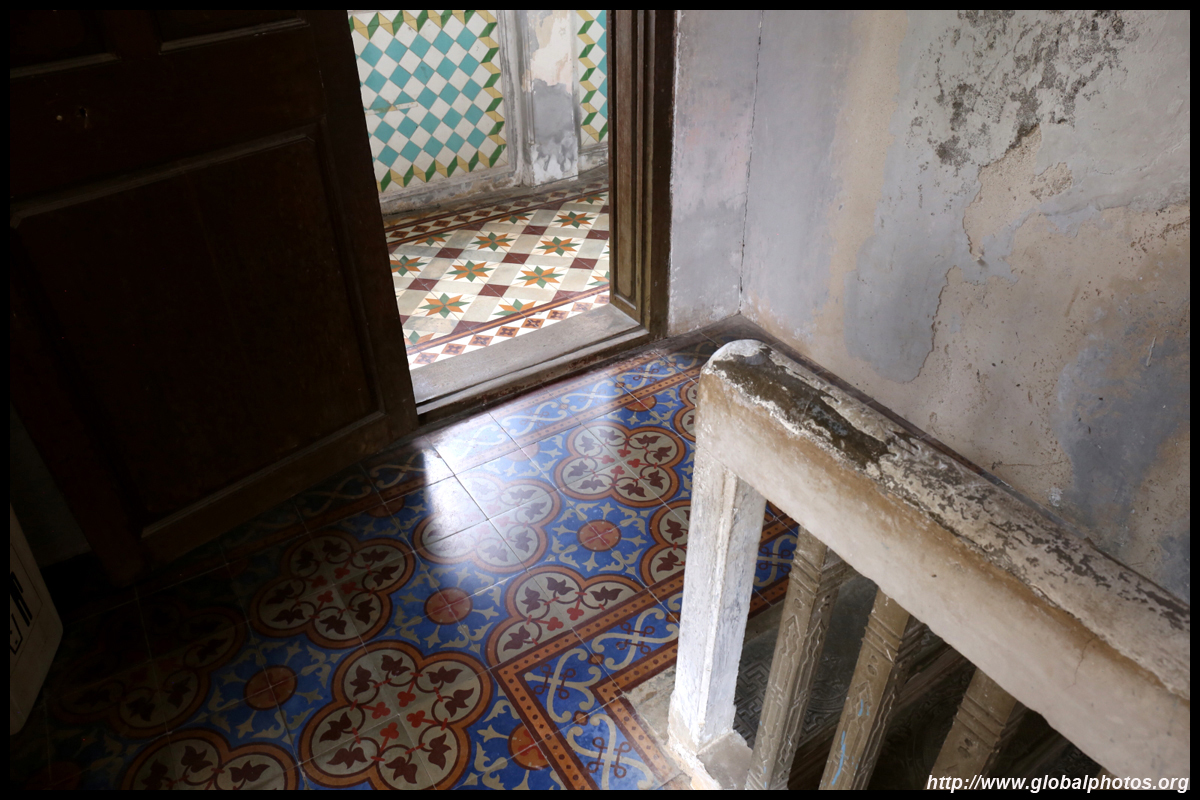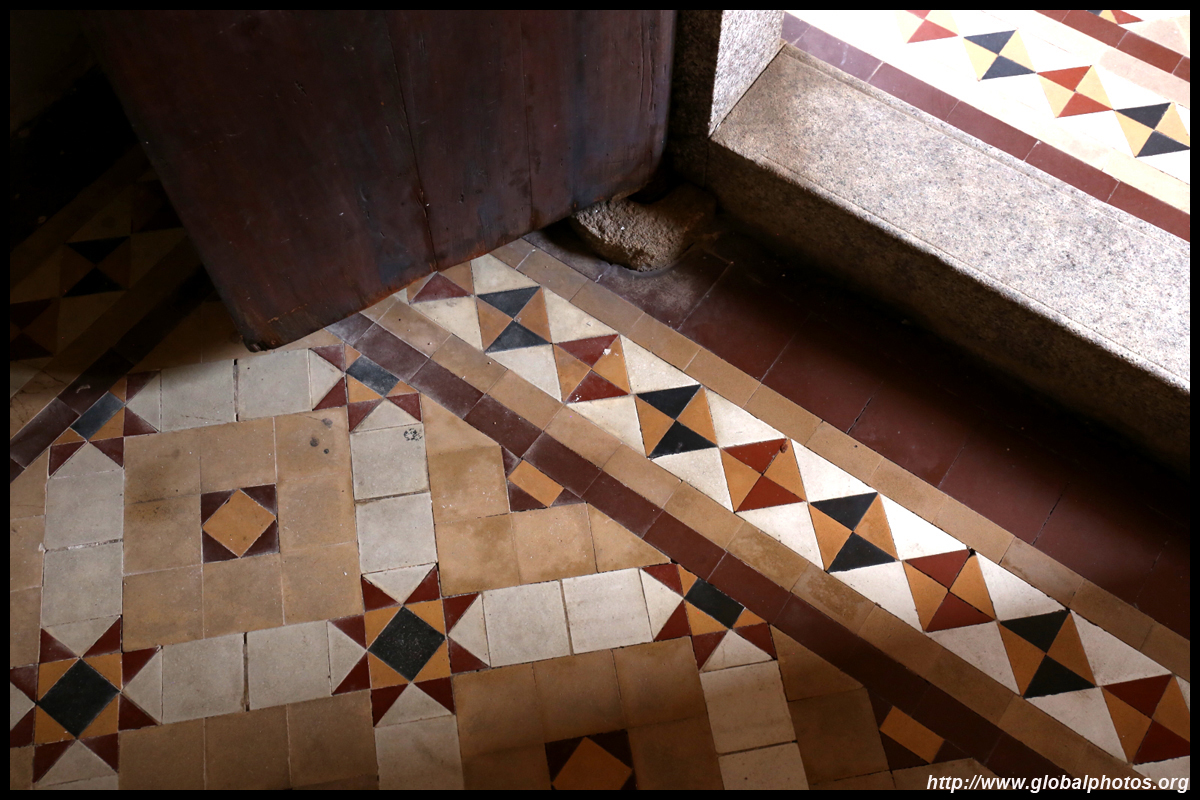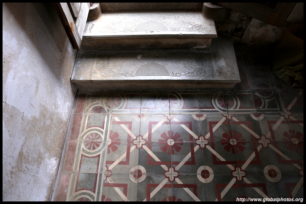 The rooms are sparsely-populated but notice the variety of floor tiles used in different rooms as well as the architectural features on door and window frames.