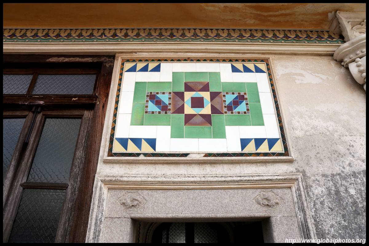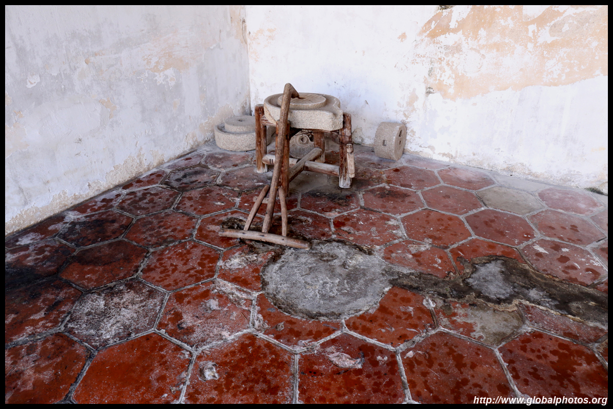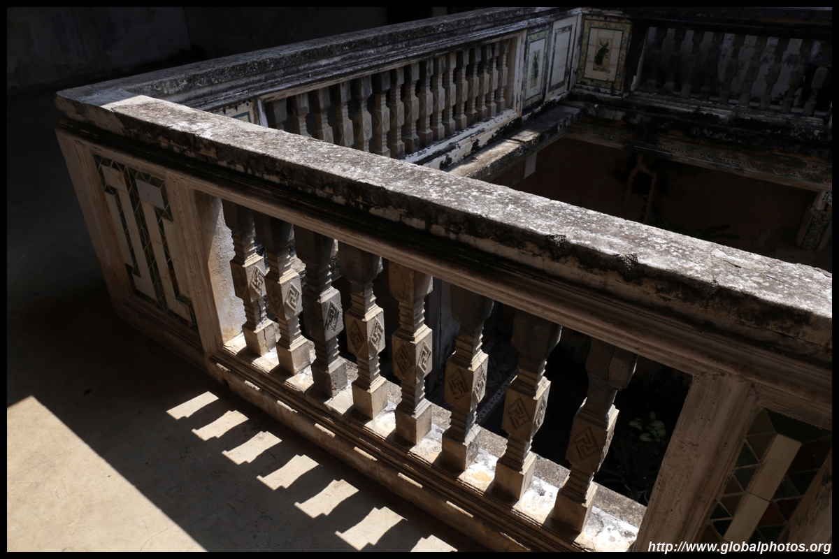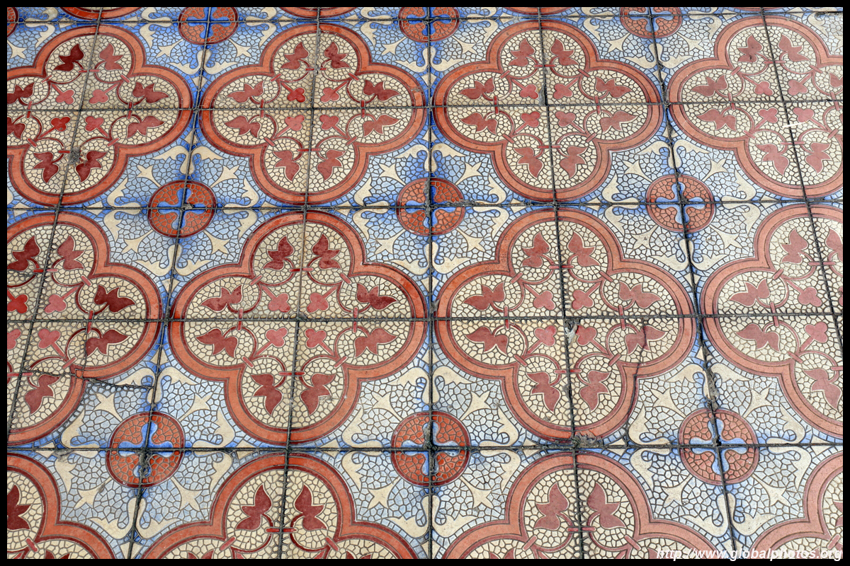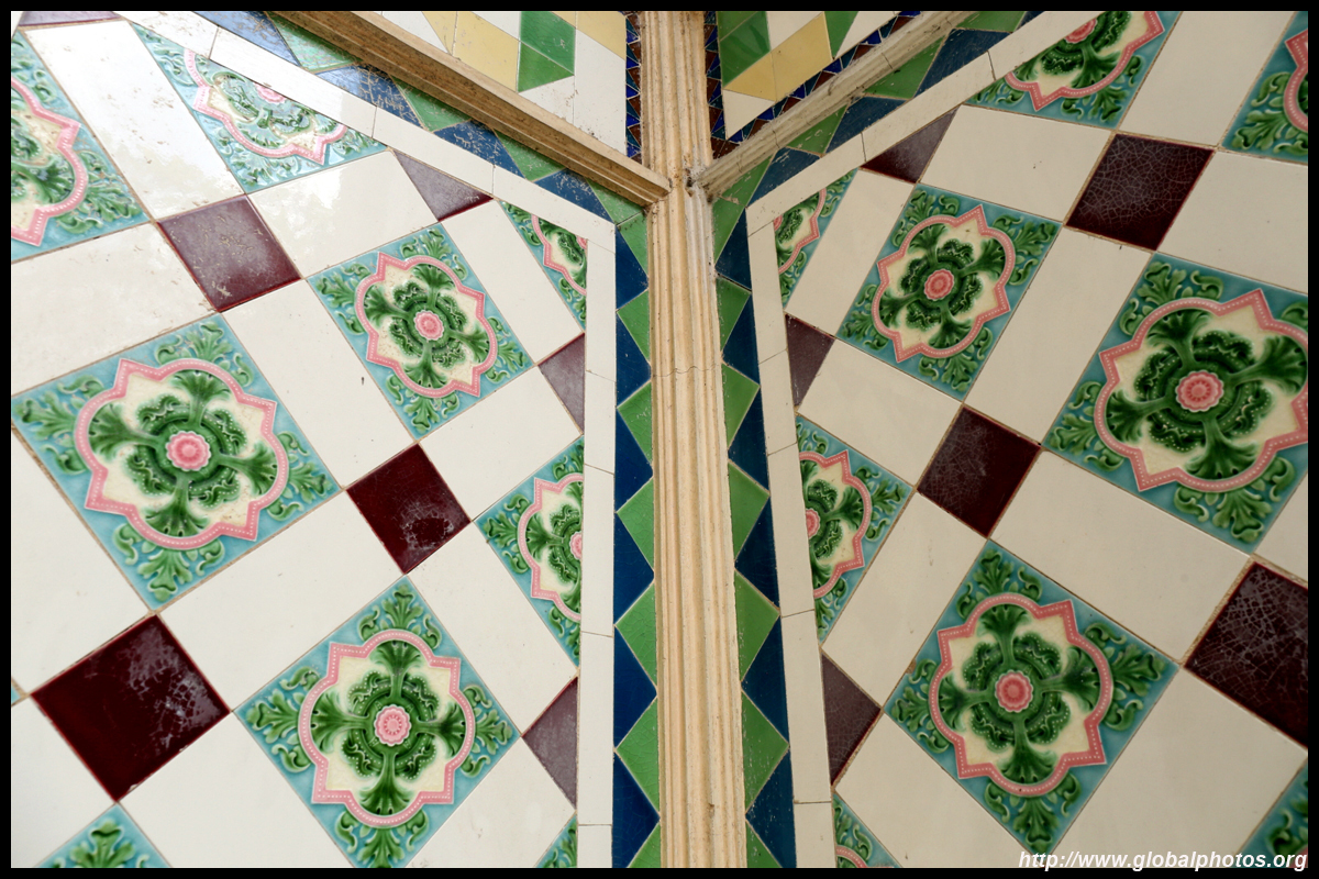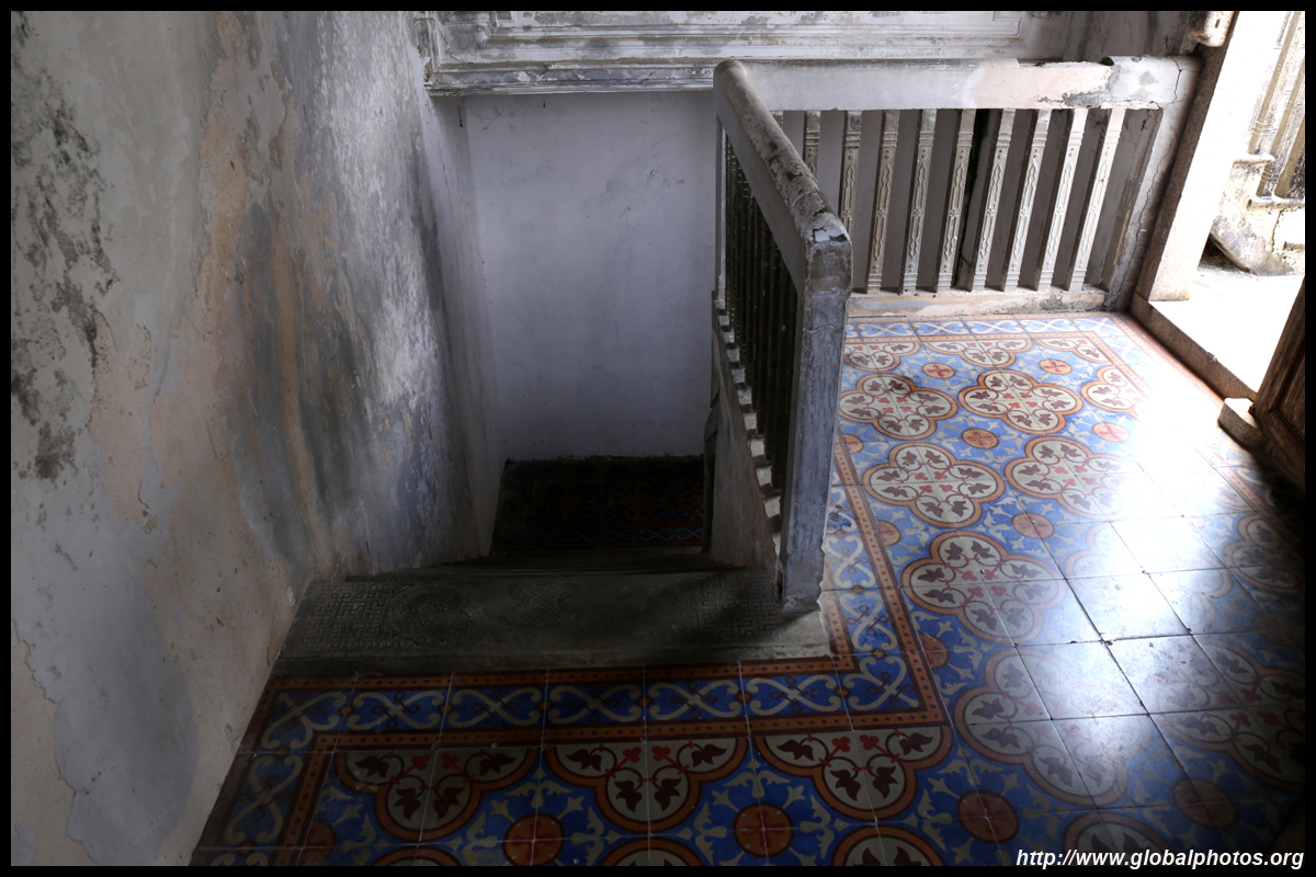 The rooms are sparsely-populated but notice the variety of floor tiles used in different rooms as well as the architectural features on door and window frames.