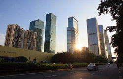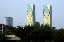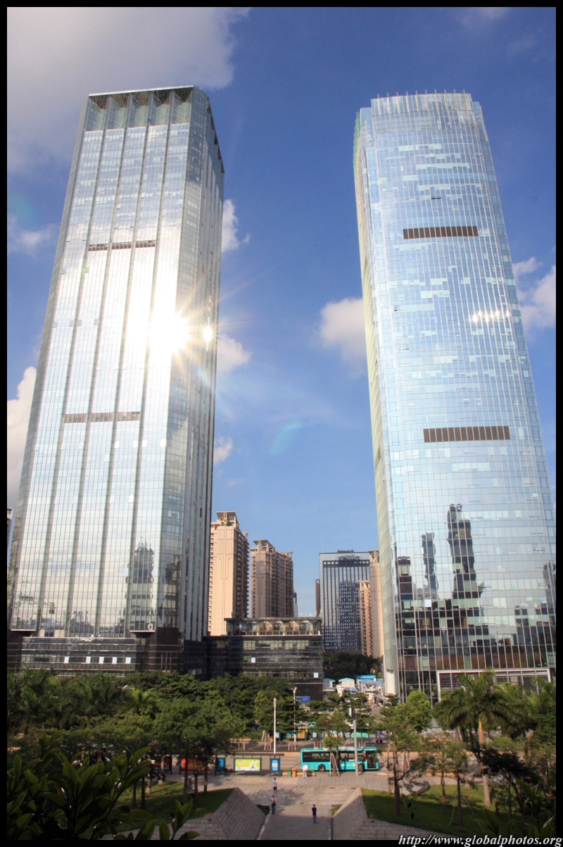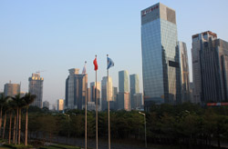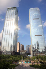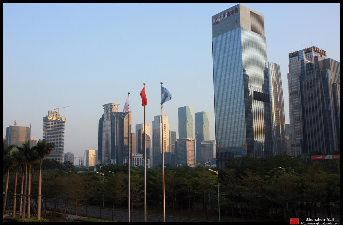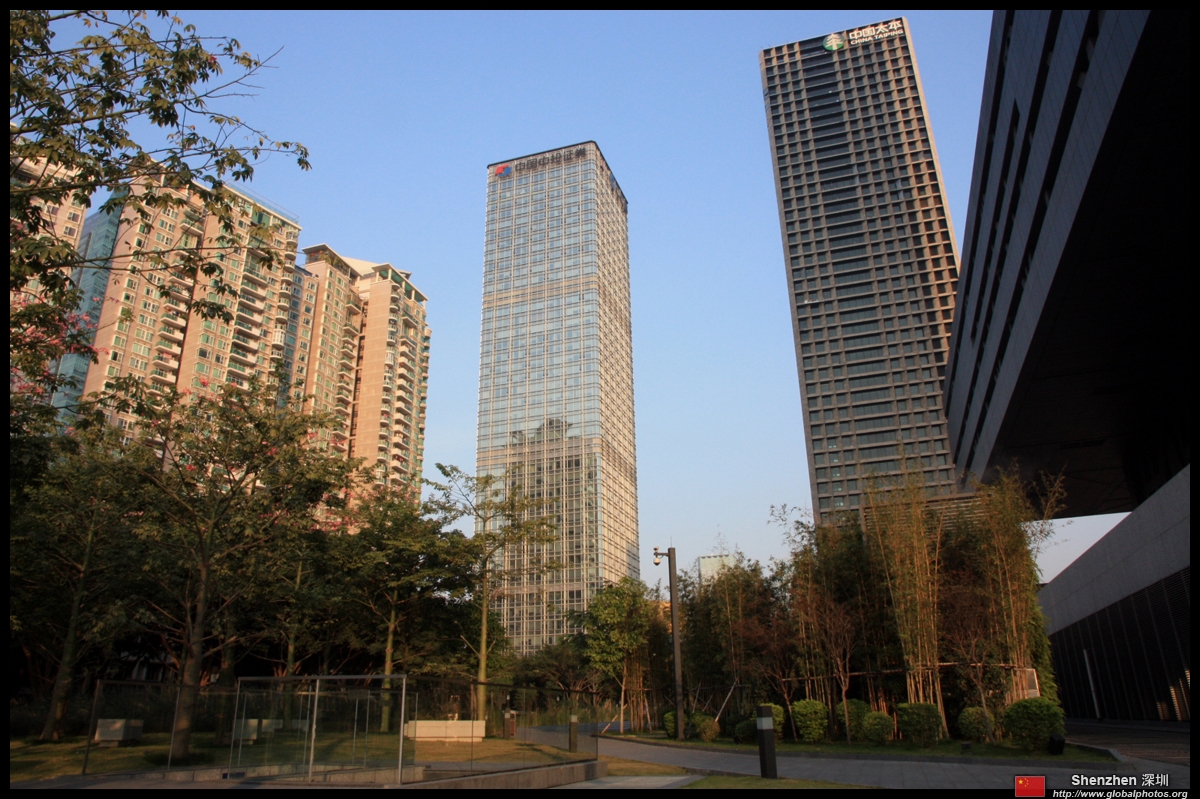 Futian is Shenzhen's new purposedly-designed financial district, with many parks and skyscrapers.