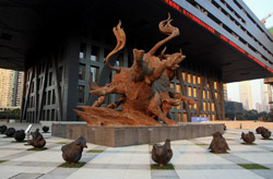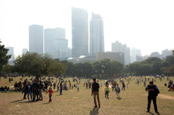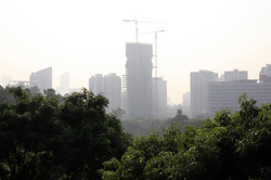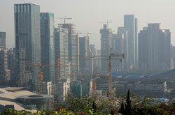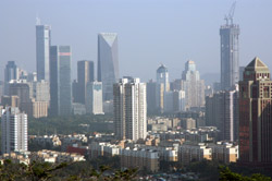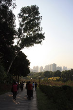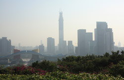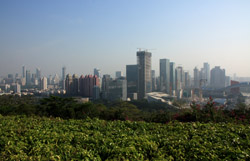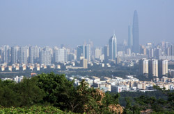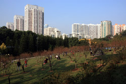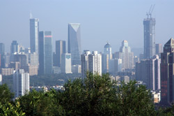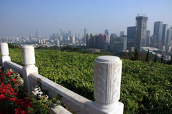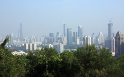 Lianhuashan is a busy park on weekends. A short hike brings you to a vantage point for the city's growing skyline.