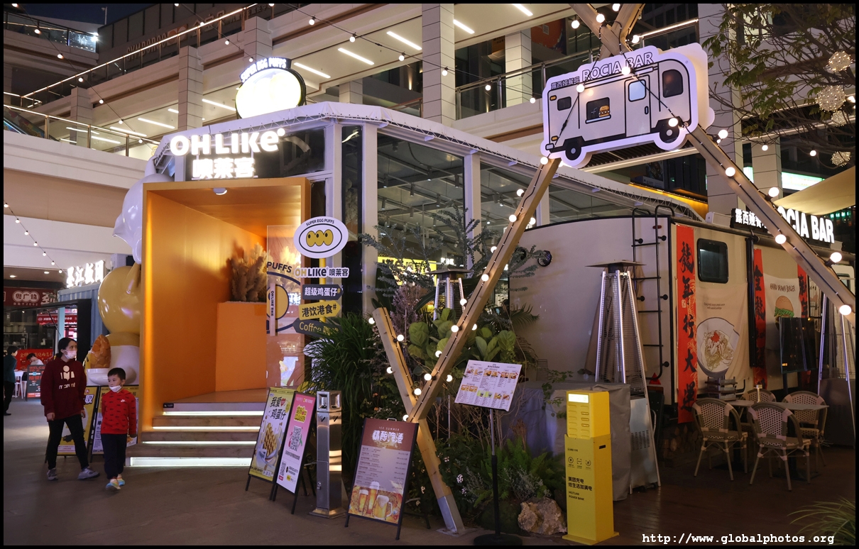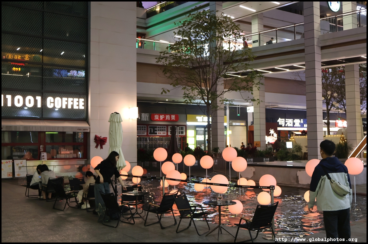 Across the street is an outdoor shopping mall. Hongshan 6979 is spread over 100,000 square metres next to the metro station. It opened in 2020 during the pandemic with a sunken greenspace where performances are held. I can't imagine how uncomfortable it would be to shop here during long, hot, and humid summer.