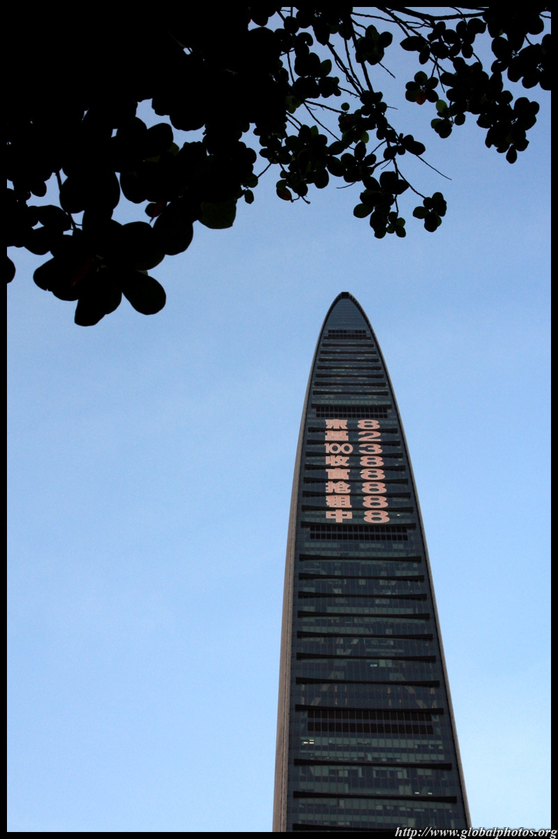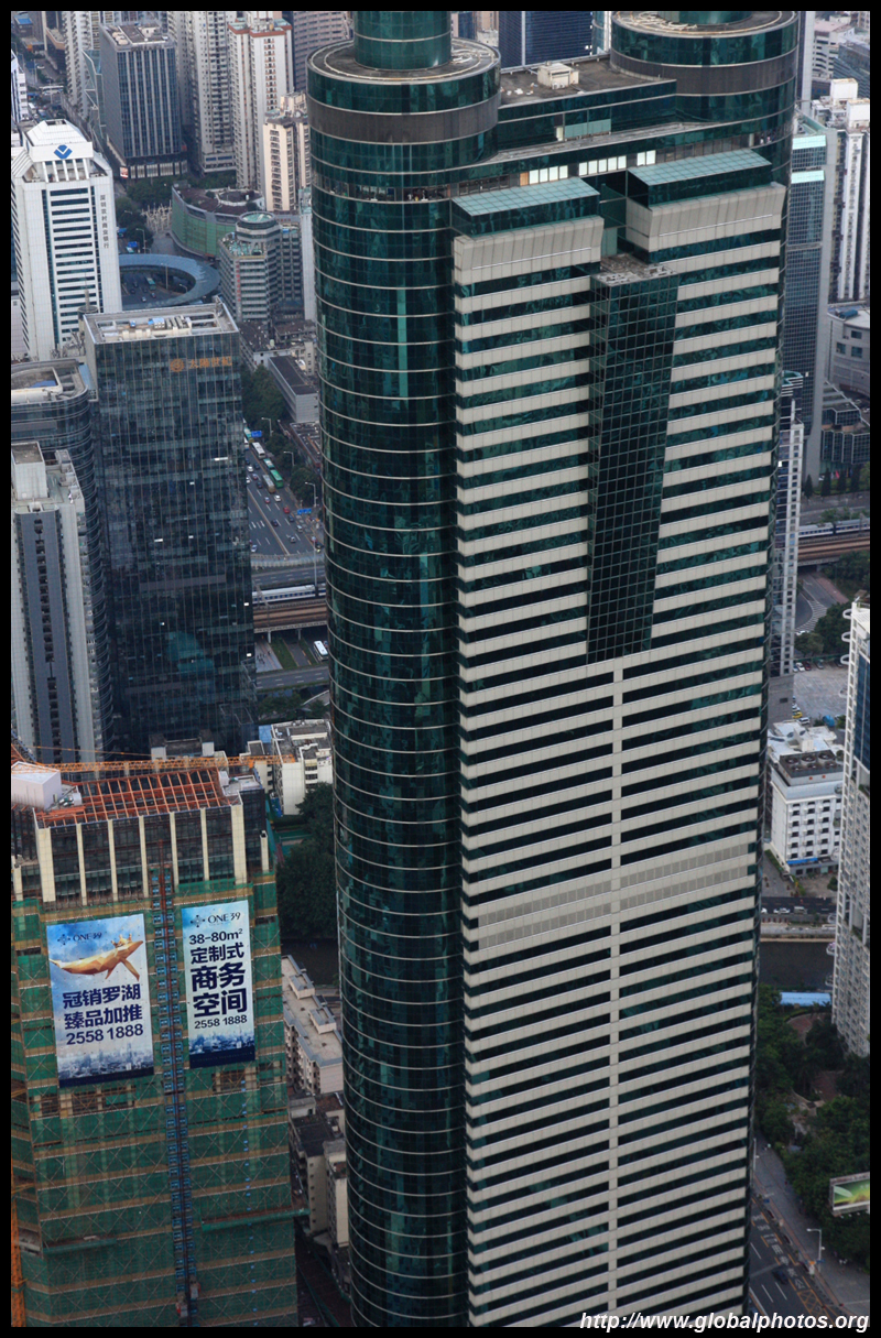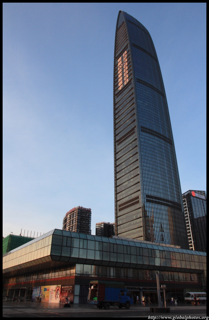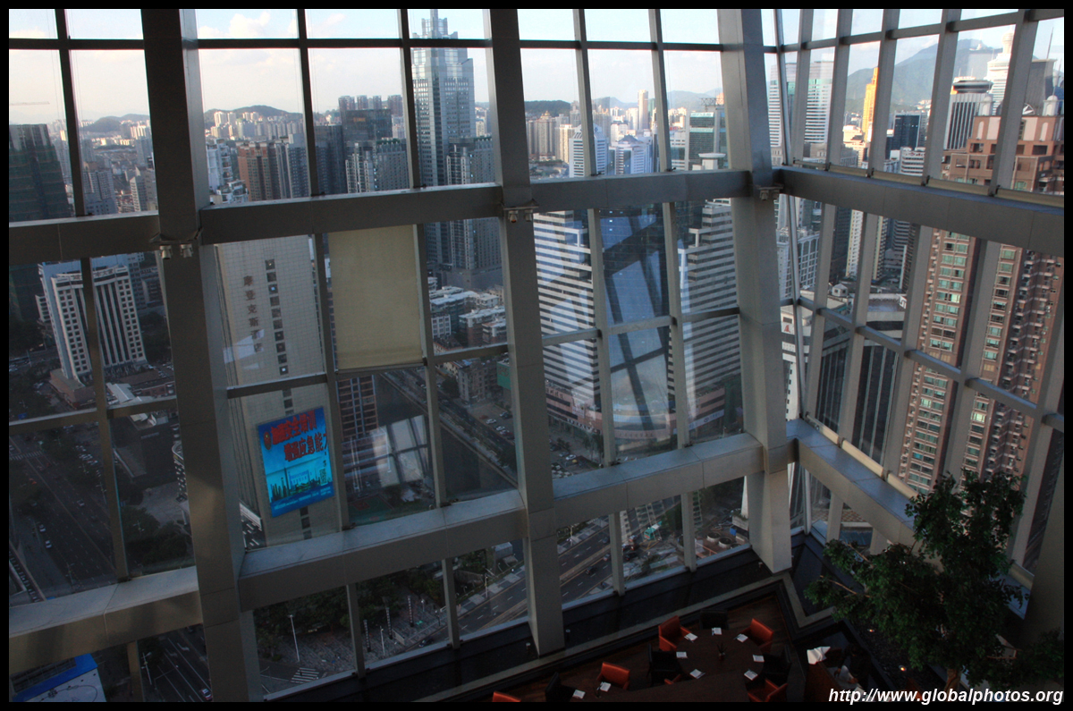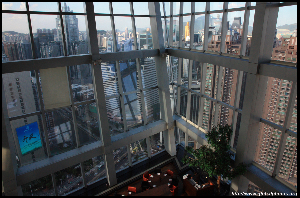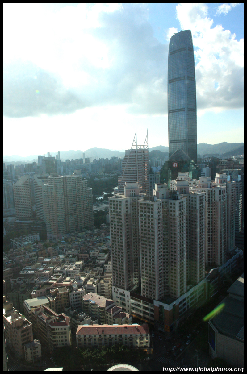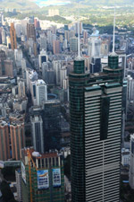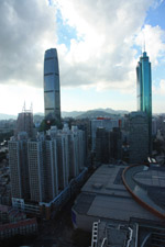 Kingkey 100 is the current tallest building in the city, standing at almost 442m tall. Consisting of offices, retail, and hotel. From the hotel lobby, you can see Hong Kong's northern suburbs.