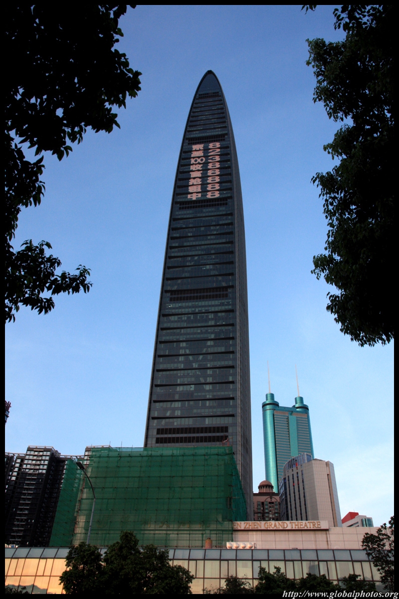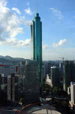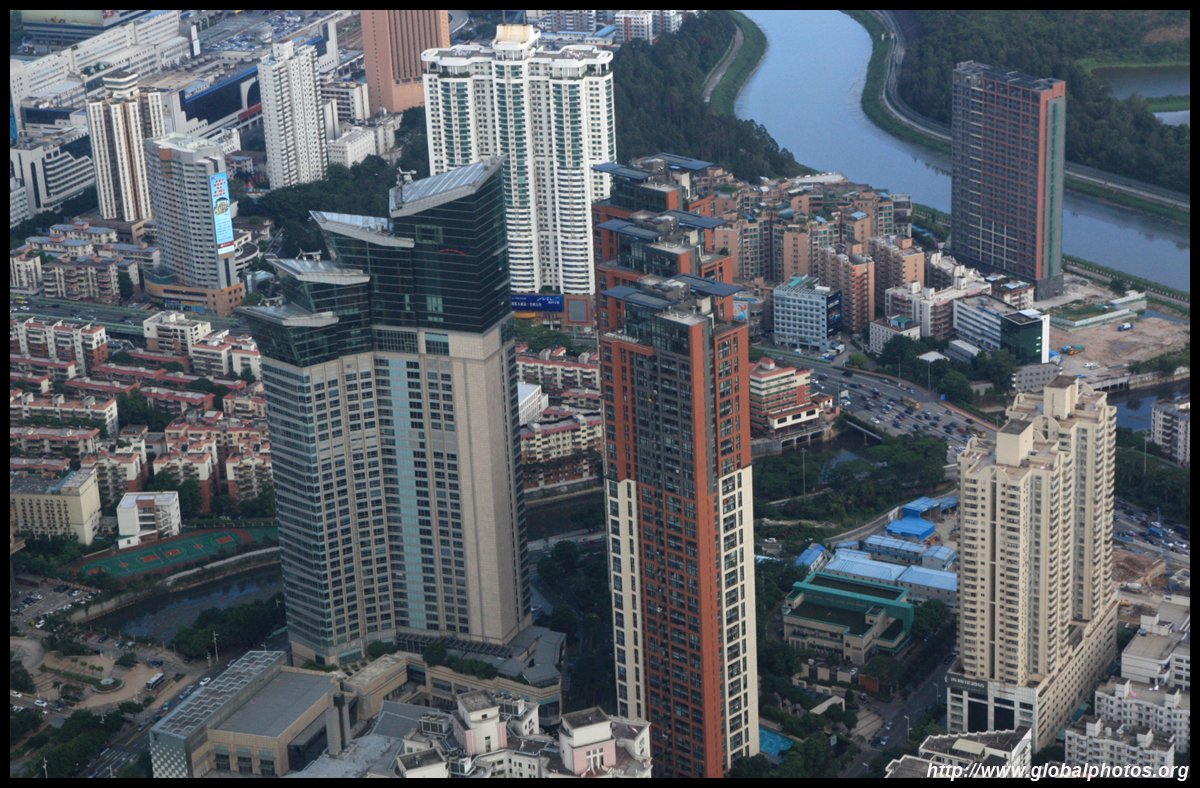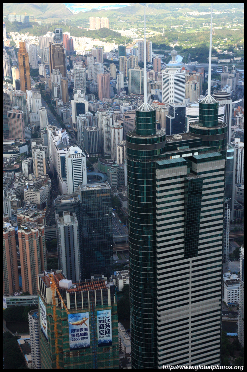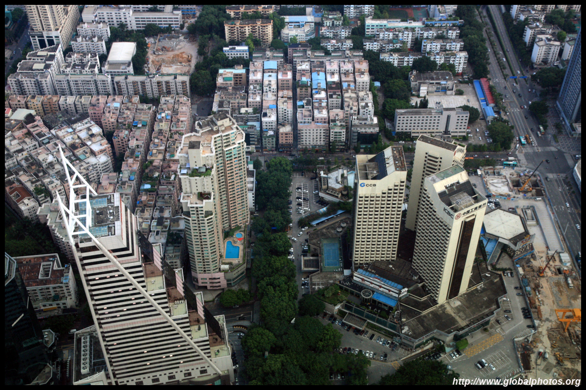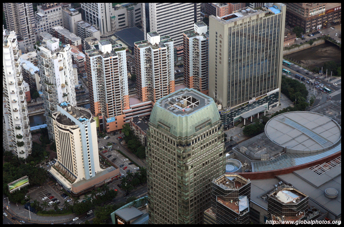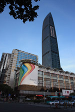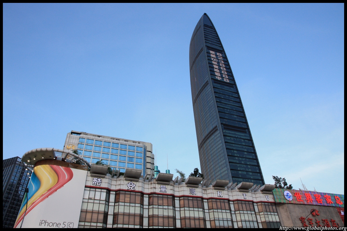 Kingkey 100 is the current tallest building in the city, standing at almost 442m tall. Consisting of offices, retail, and hotel. From the hotel lobby, you can see Hong Kong's northern suburbs.