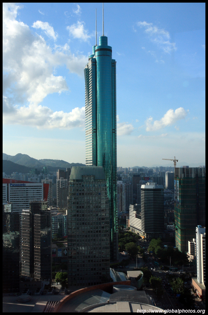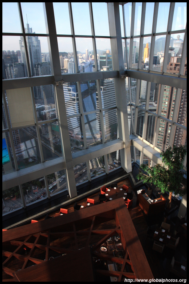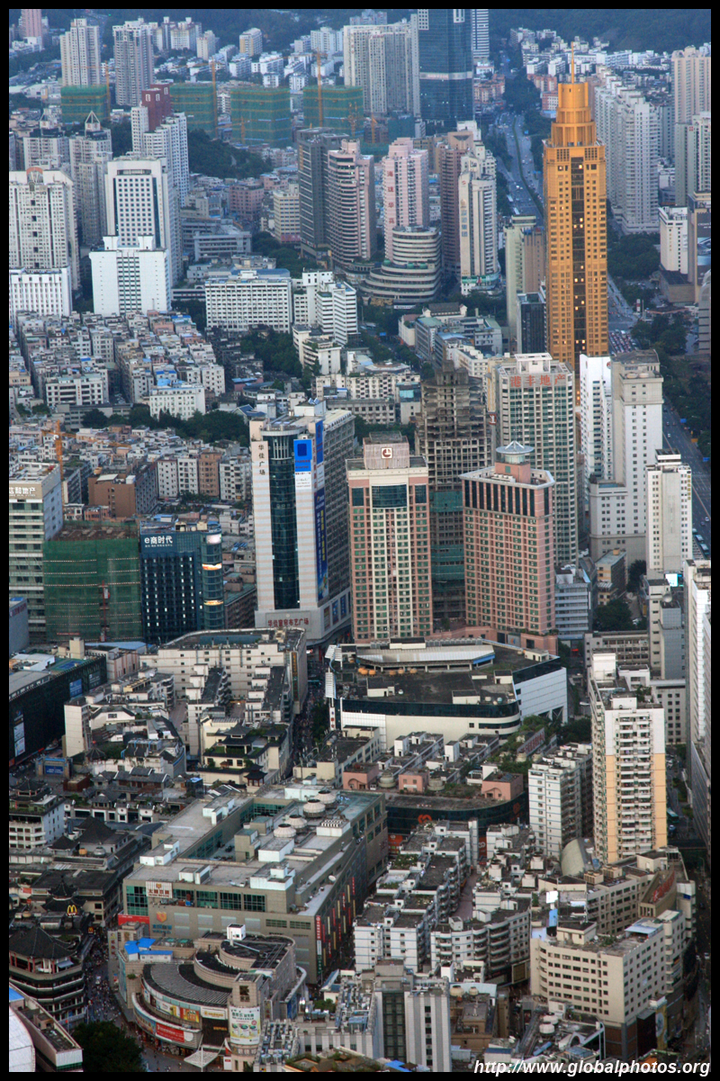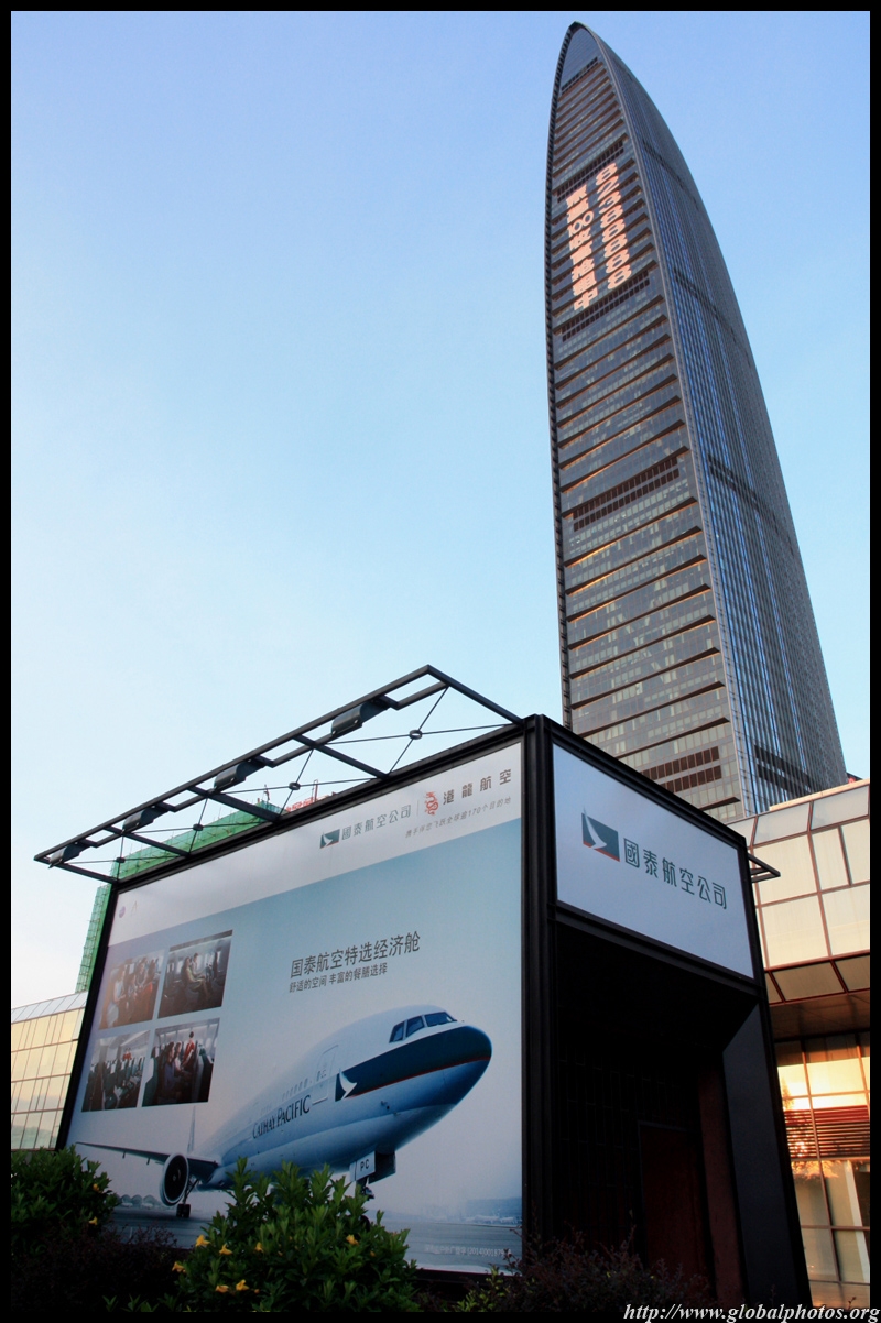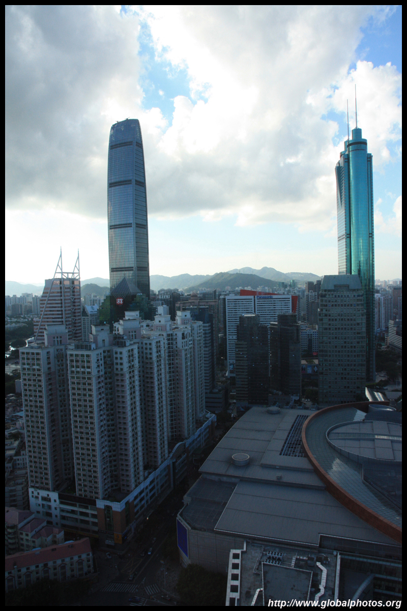 Kingkey 100 is the current tallest building in the city, standing at almost 442m tall. Consisting of offices, retail, and hotel. From the hotel lobby, you can see Hong Kong's northern suburbs.