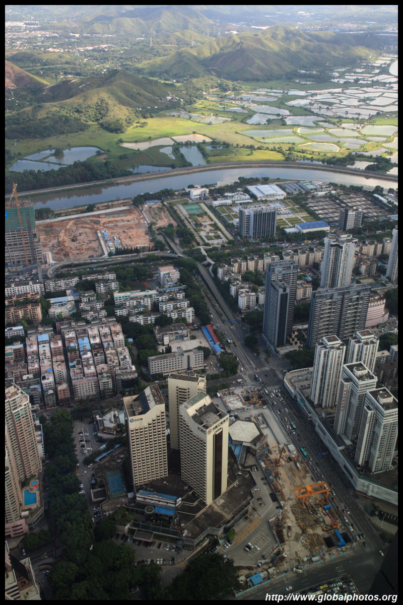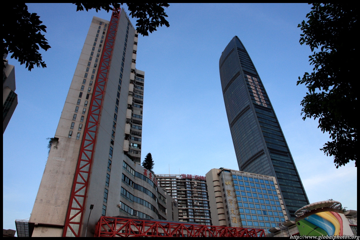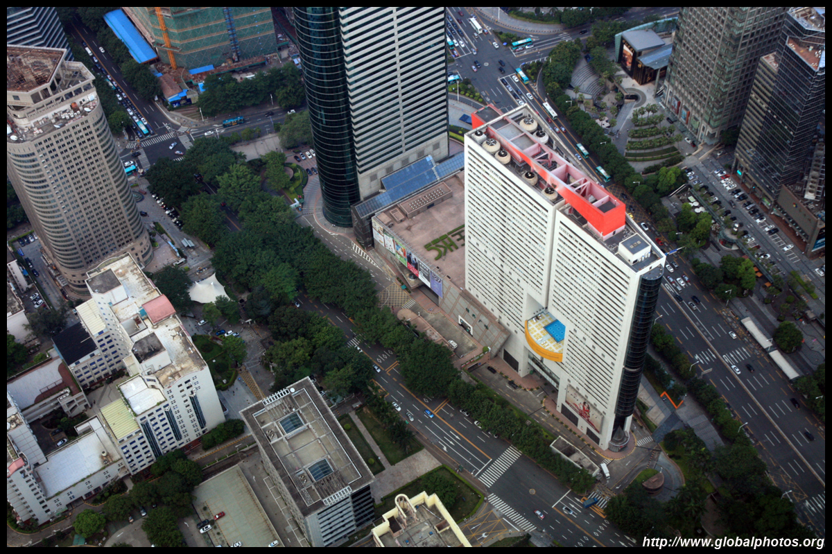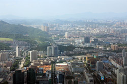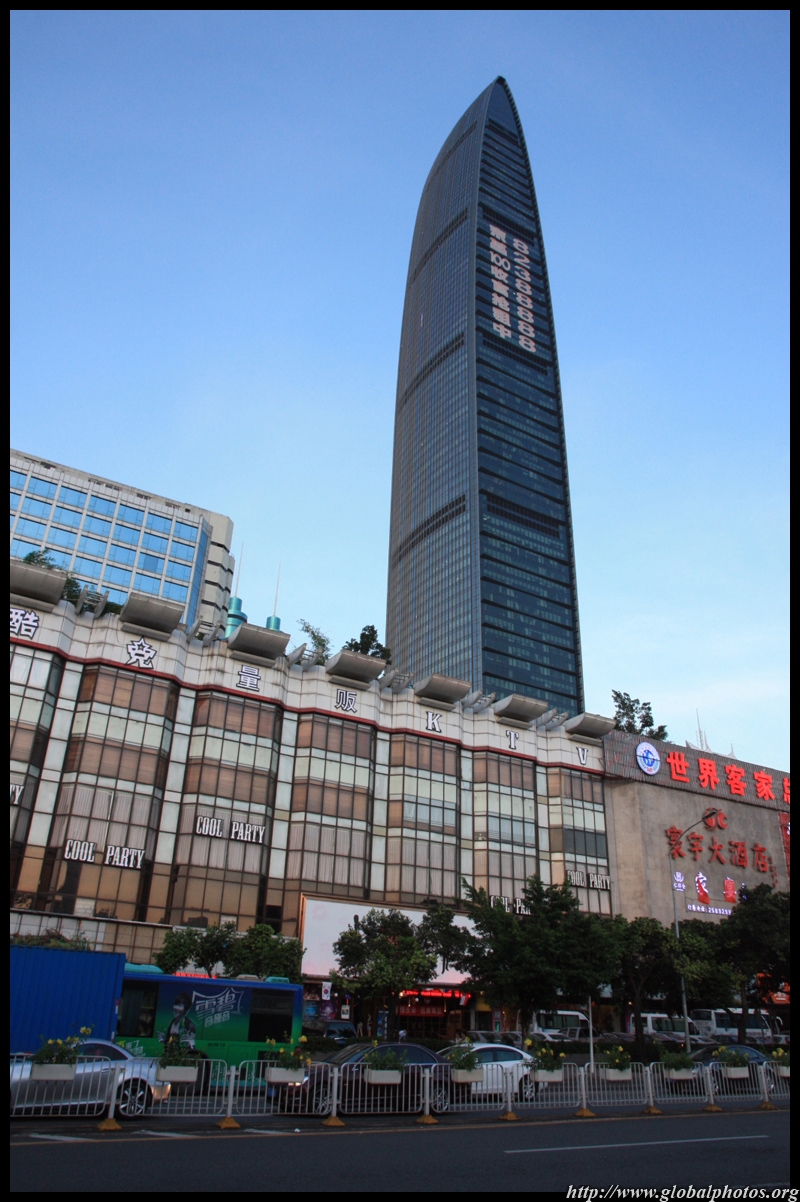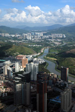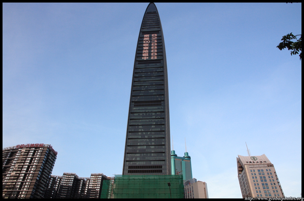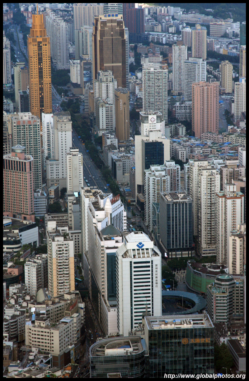 Kingkey 100 is the current tallest building in the city, standing at almost 442m tall. Consisting of offices, retail, and hotel. From the hotel lobby, you can see Hong Kong's northern suburbs.