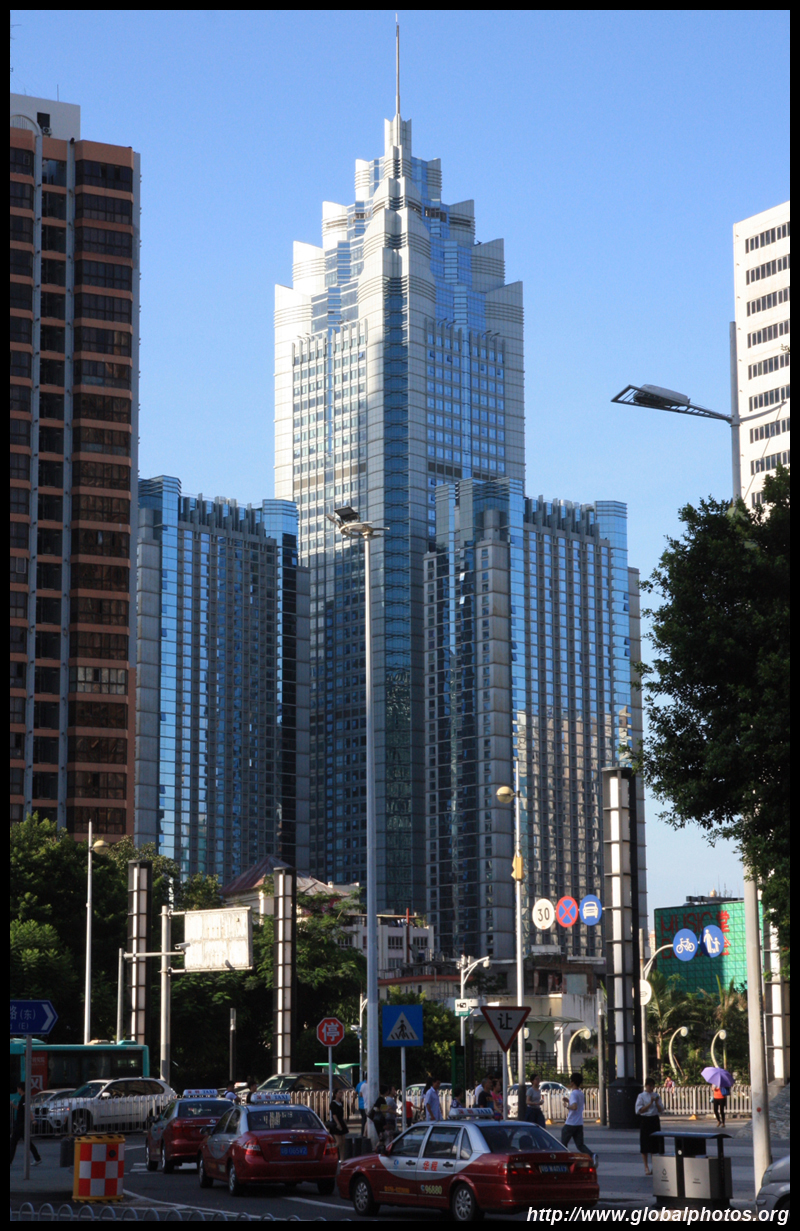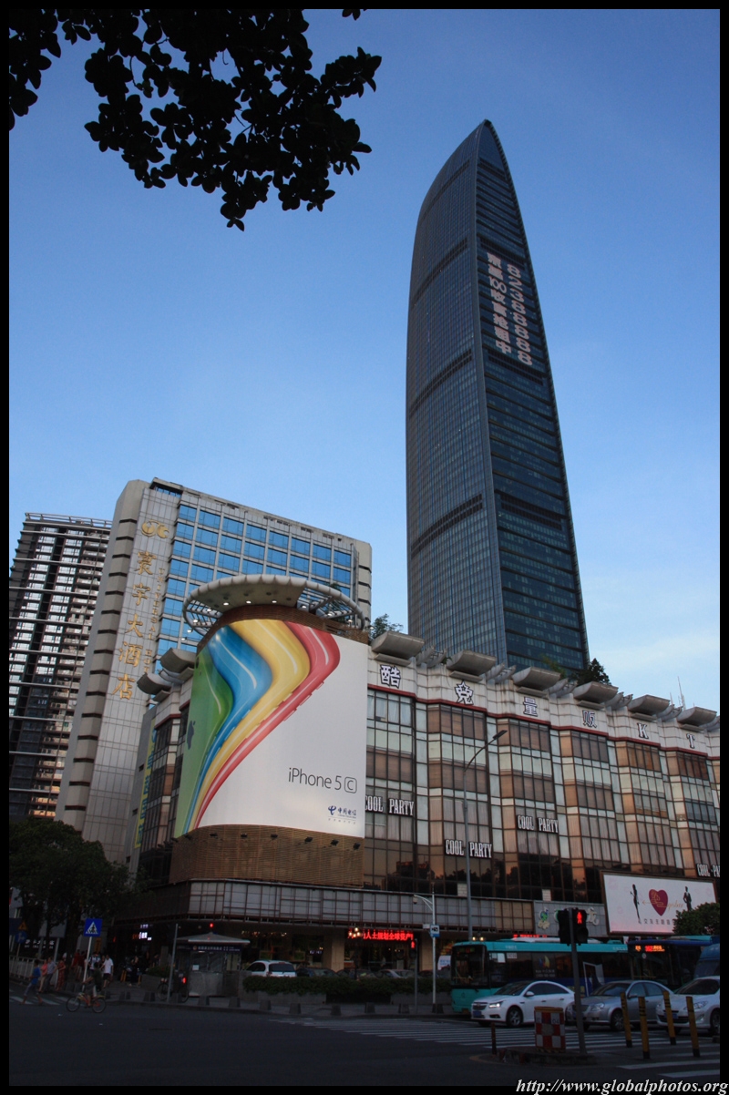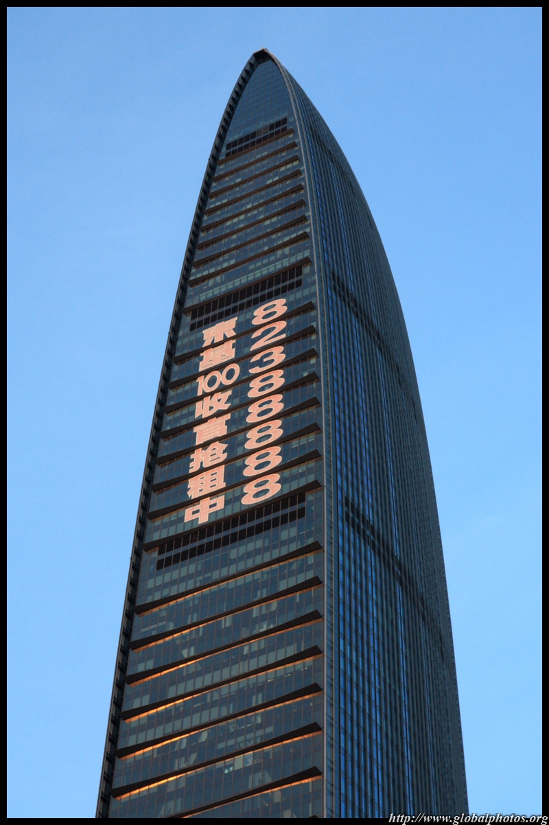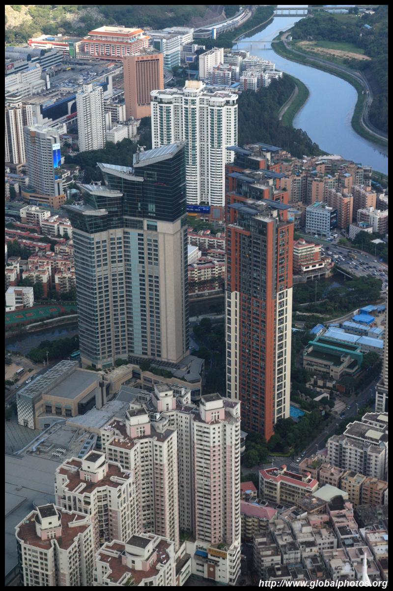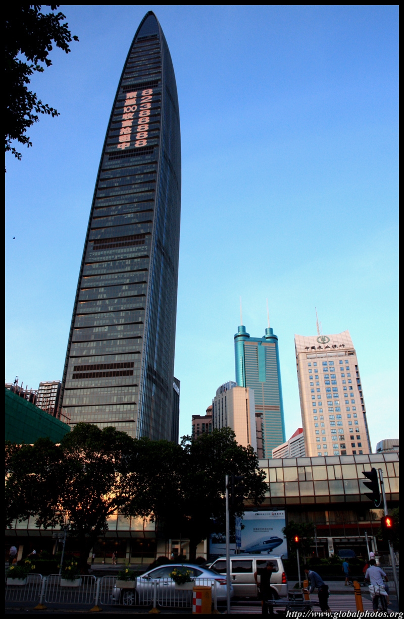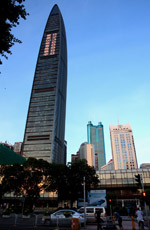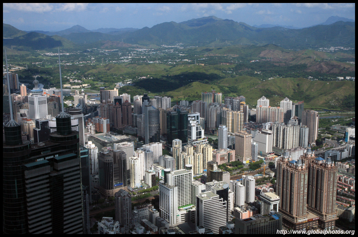 Kingkey 100 is the current tallest building in the city, standing at almost 442m tall. Consisting of offices, retail, and hotel. From the hotel lobby, you can see Hong Kong's northern suburbs.