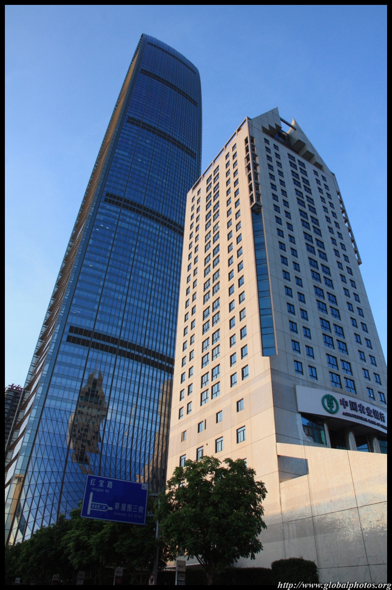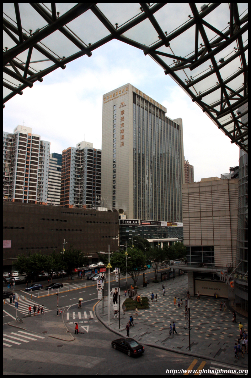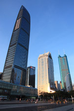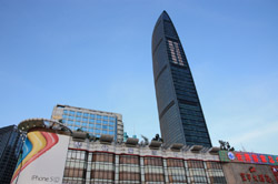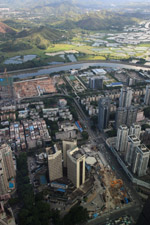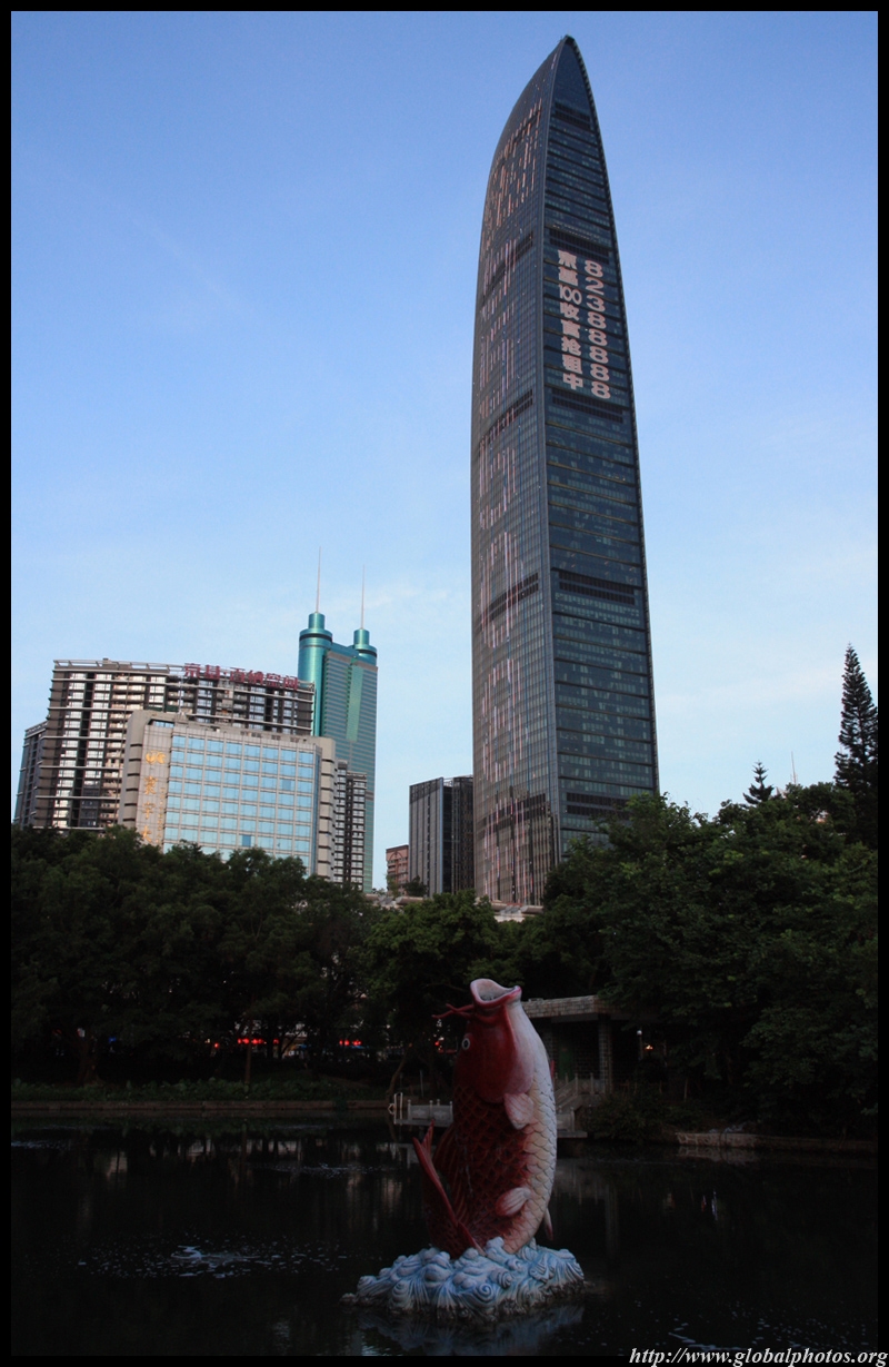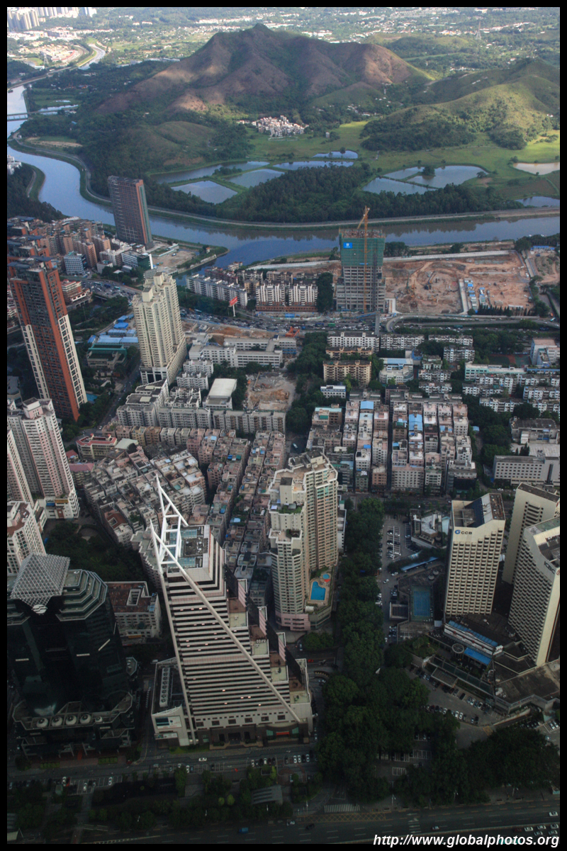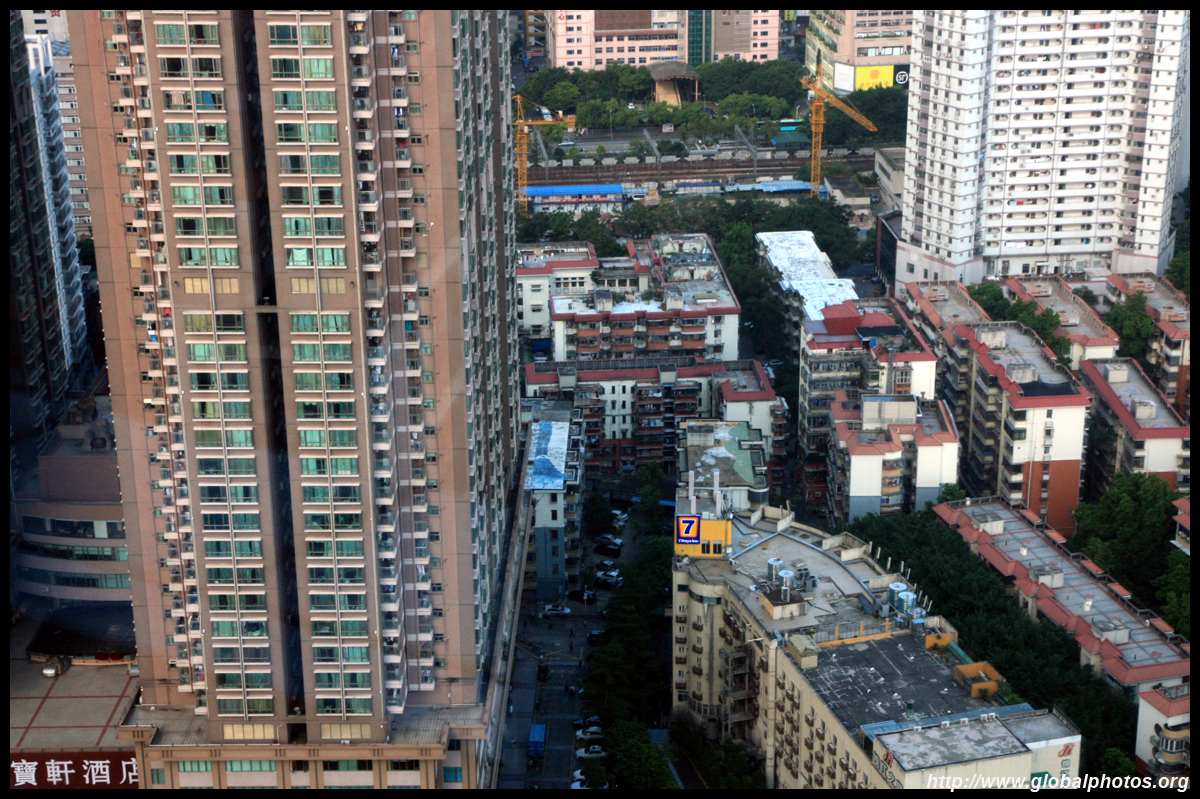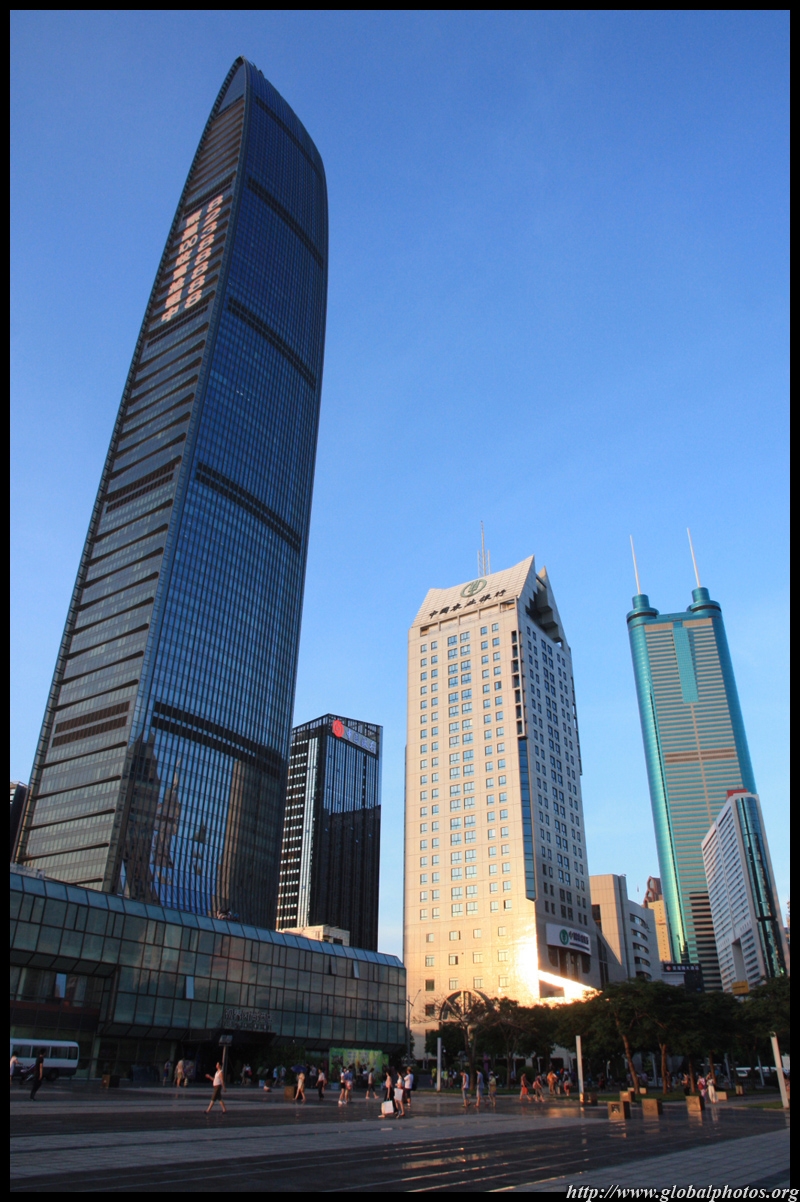 Kingkey 100 is the current tallest building in the city, standing at almost 442m tall. Consisting of offices, retail, and hotel. From the hotel lobby, you can see Hong Kong's northern suburbs.