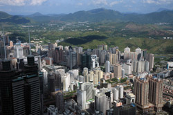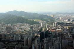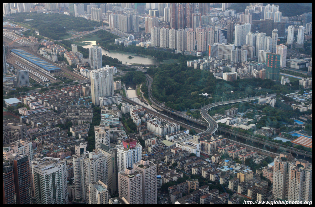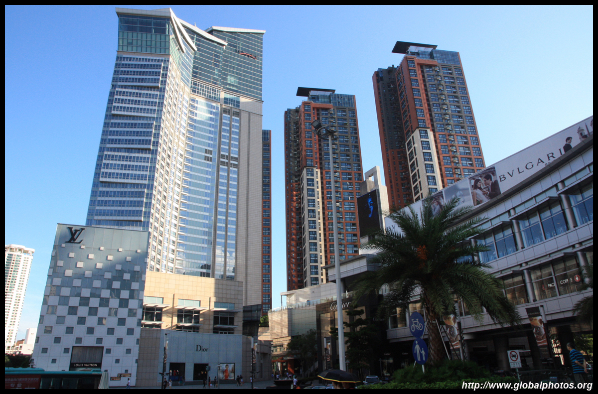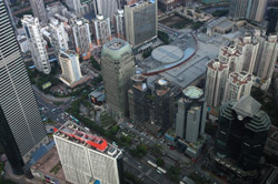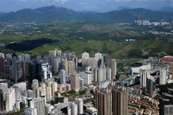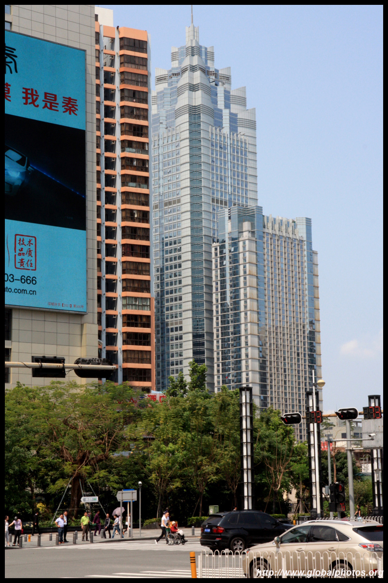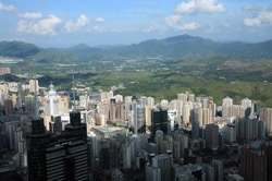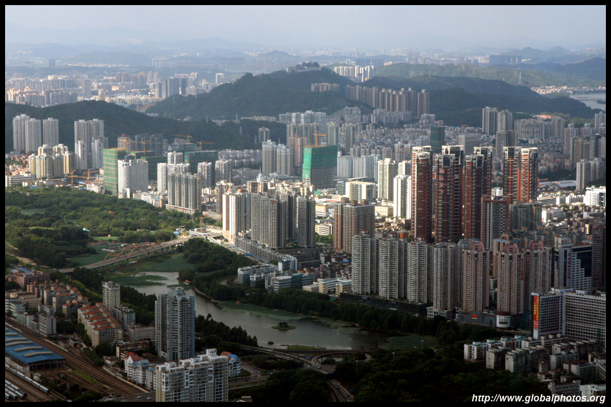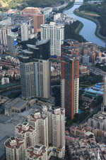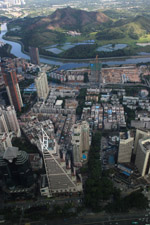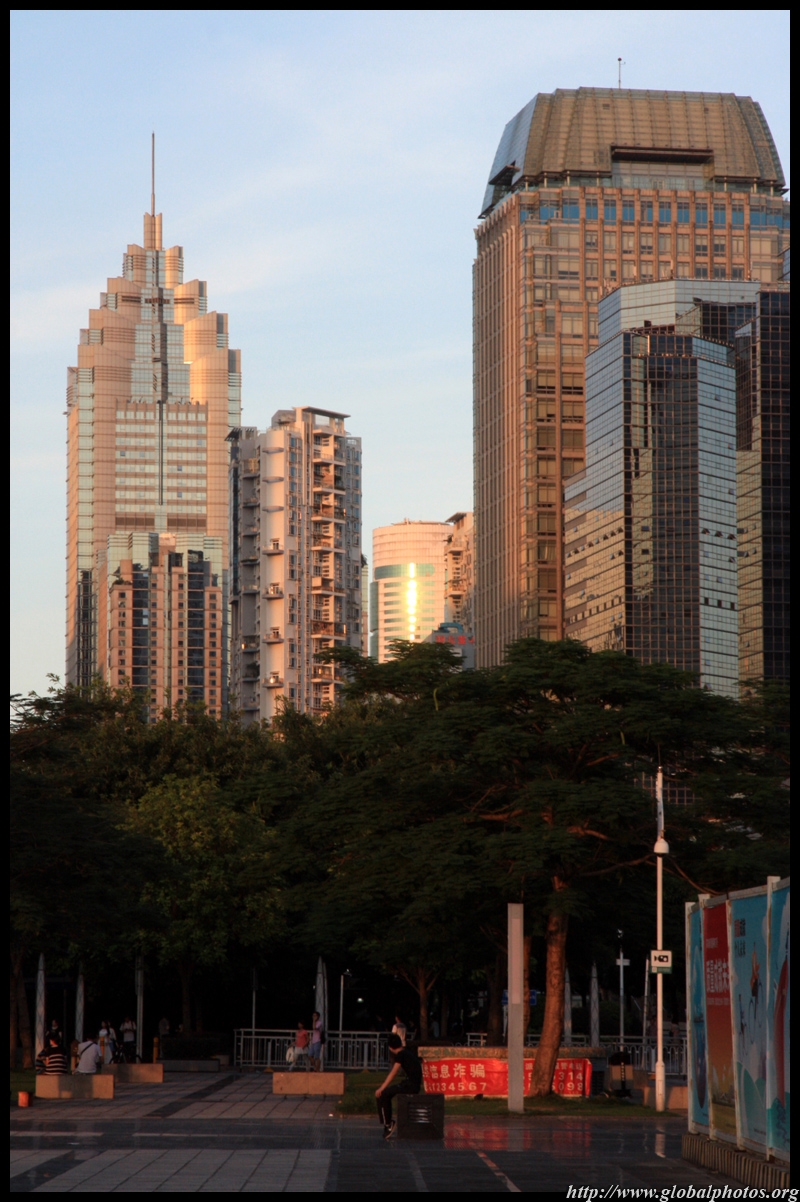 Kingkey 100 is the current tallest building in the city, standing at almost 442m tall. Consisting of offices, retail, and hotel. From the hotel lobby, you can see Hong Kong's northern suburbs.