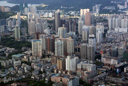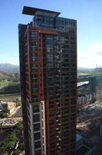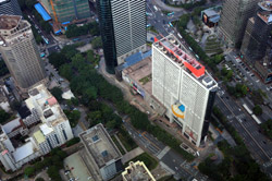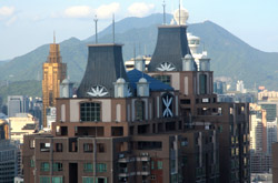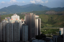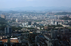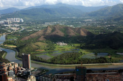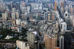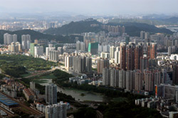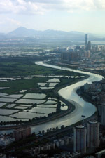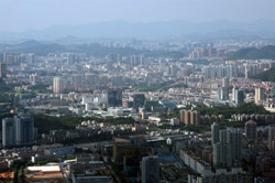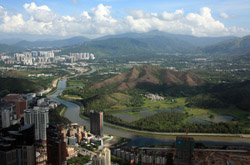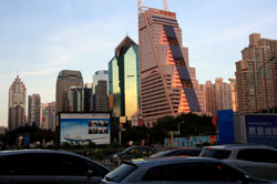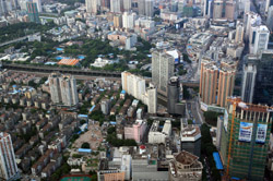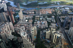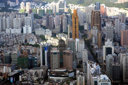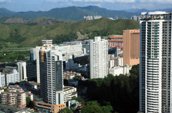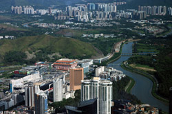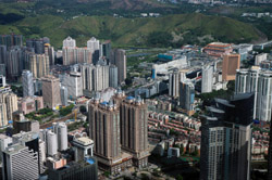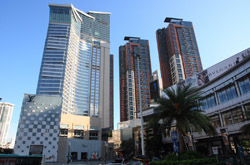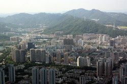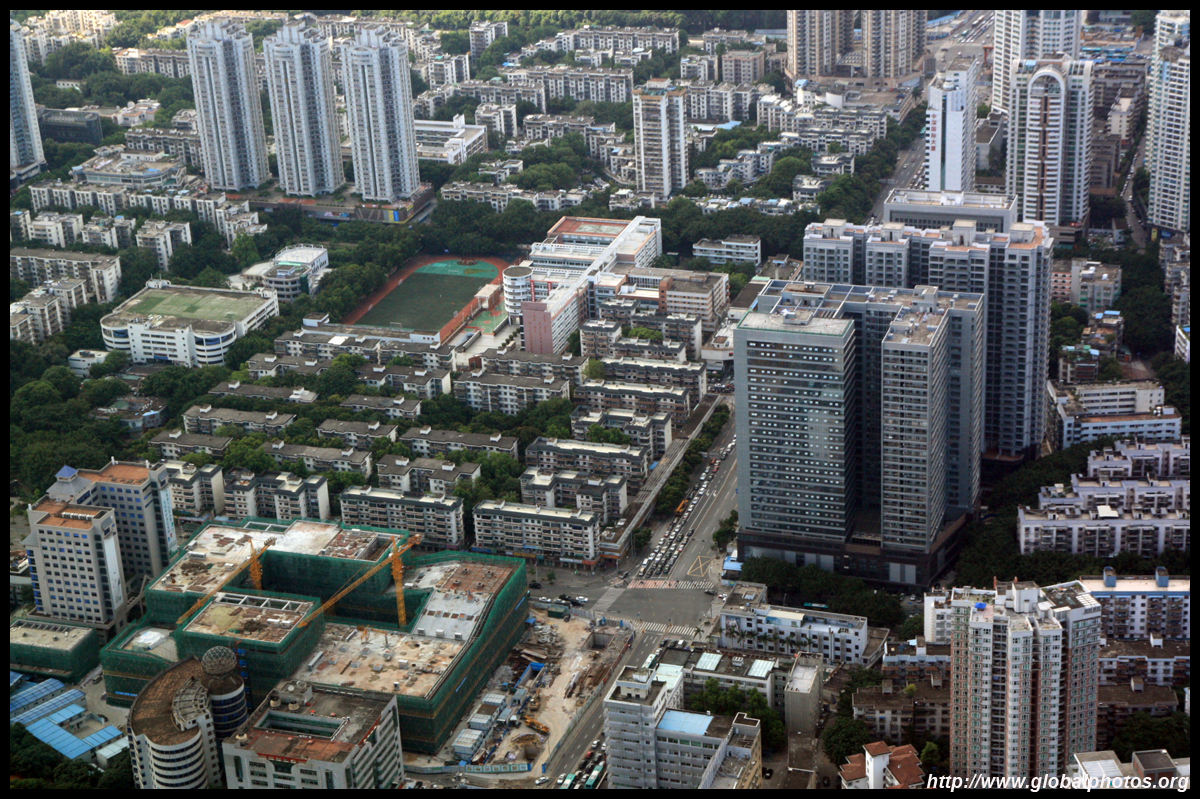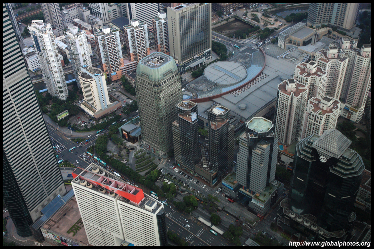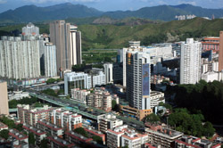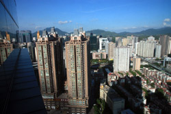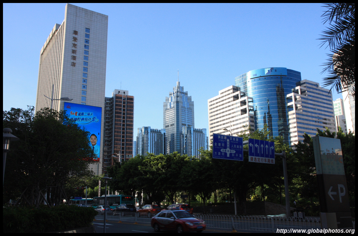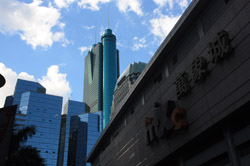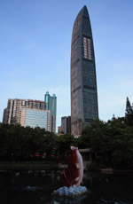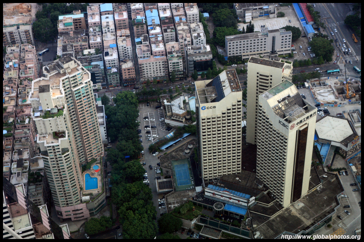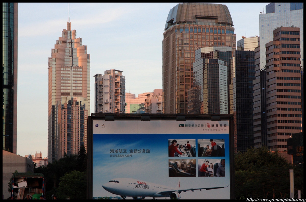 Kingkey 100 is the current tallest building in the city, standing at almost 442m tall. Consisting of offices, retail, and hotel. From the hotel lobby, you can see Hong Kong's northern suburbs.