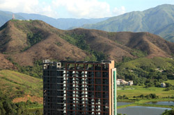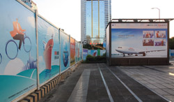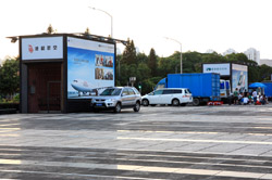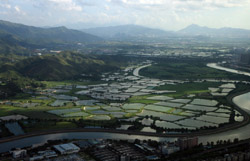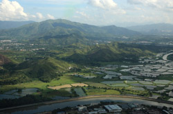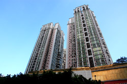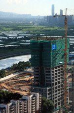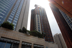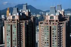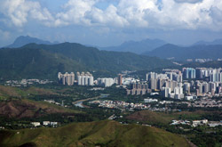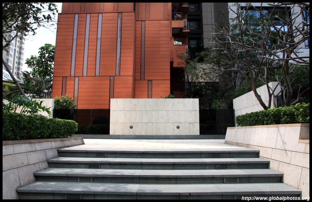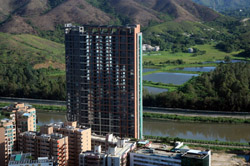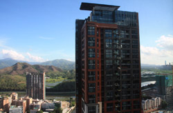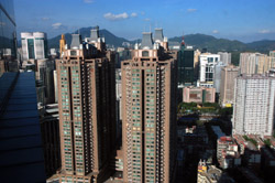 The reception faces the emptiness of Hong Kong's northern suburbs.