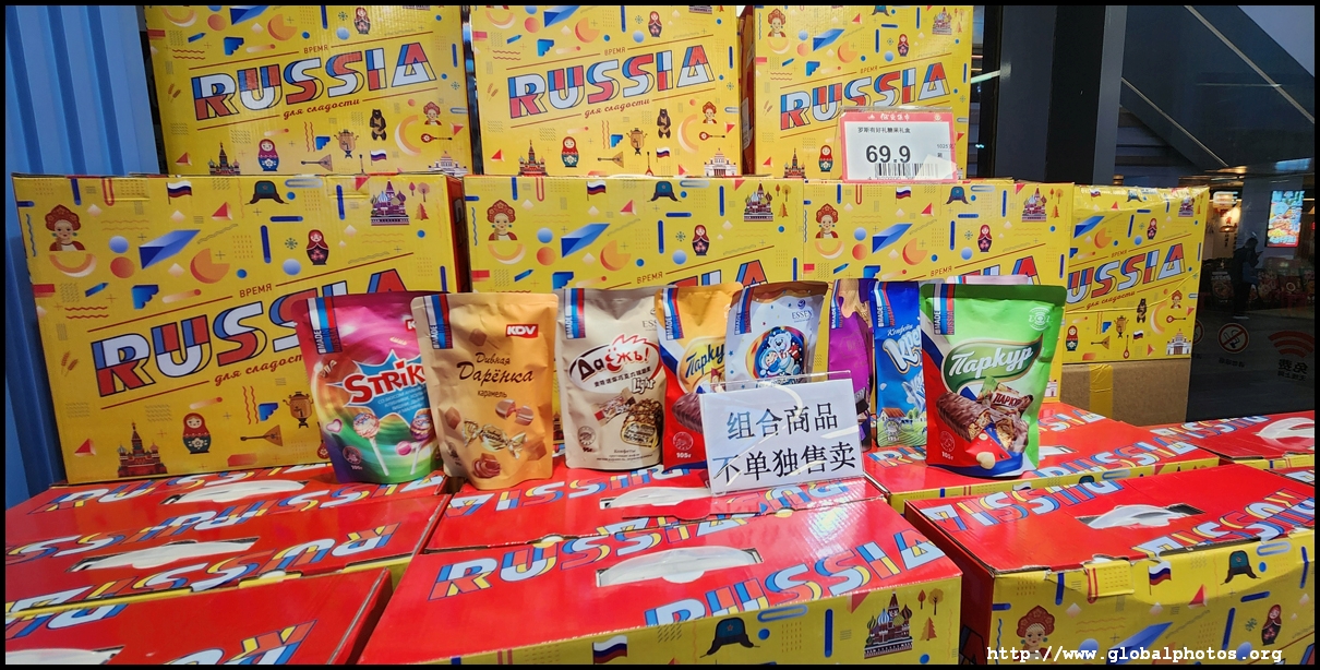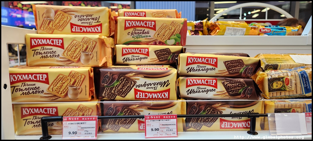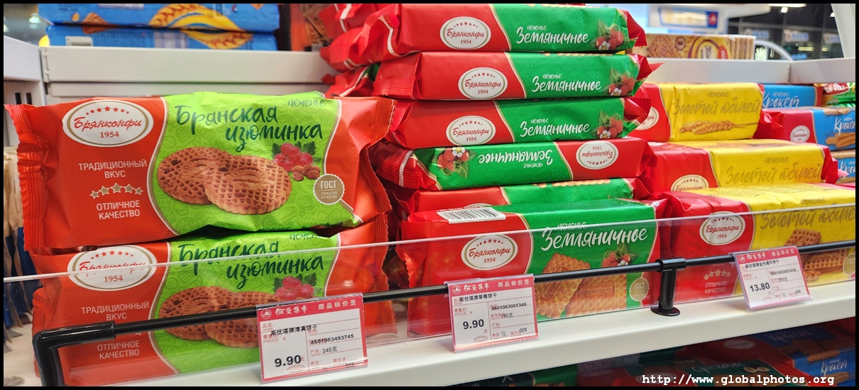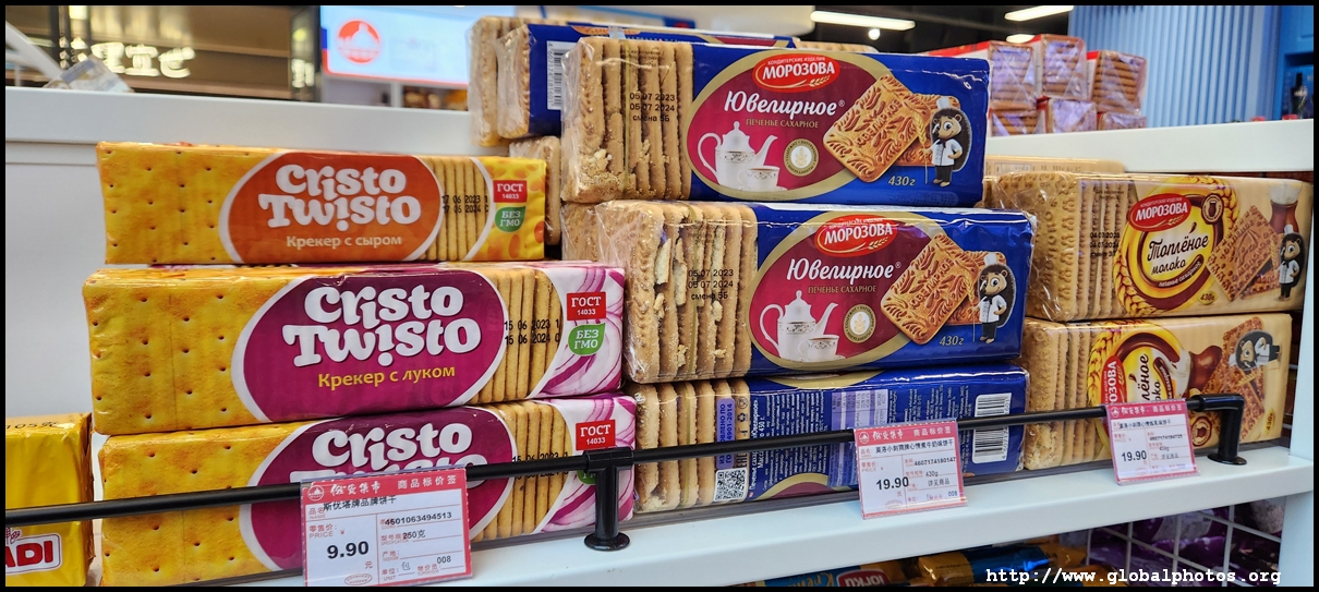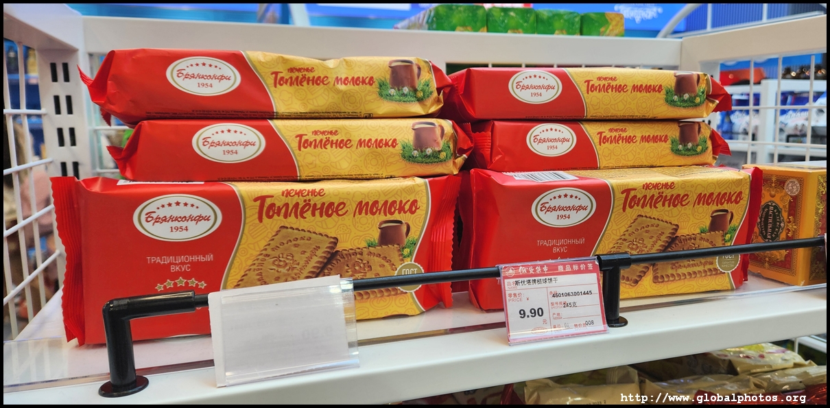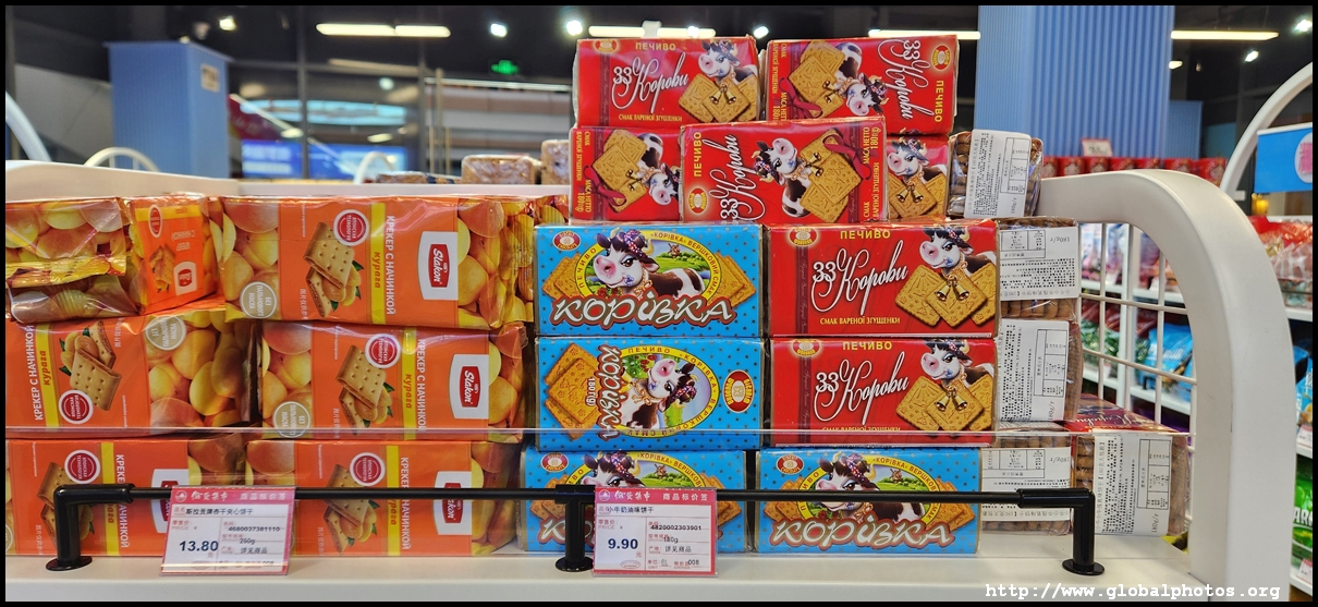 With international sanctions in place due to Russia's invasion of the Ukraine, Russian exports have found less buyers globally other than China and India. This Russia-themed supermarket at Hongshan 6979 features a wide variety of food items as well as household goods. The selection is mostly candy, biscuits, chocolate, and a lot of alcohol.