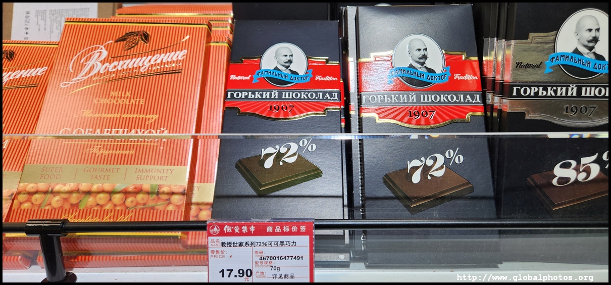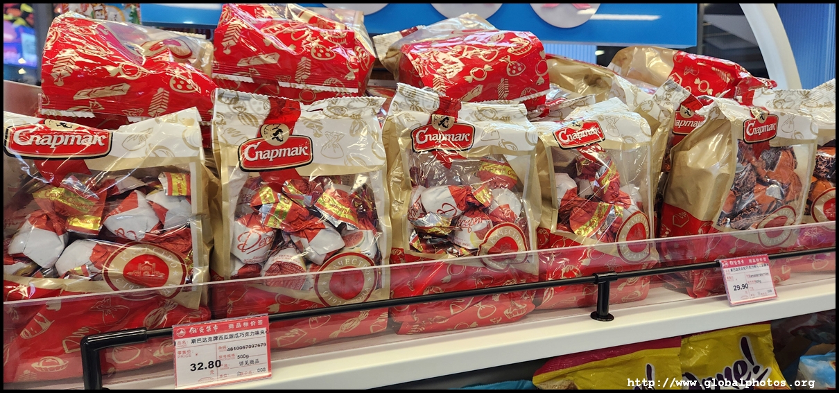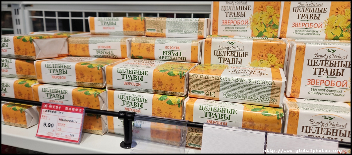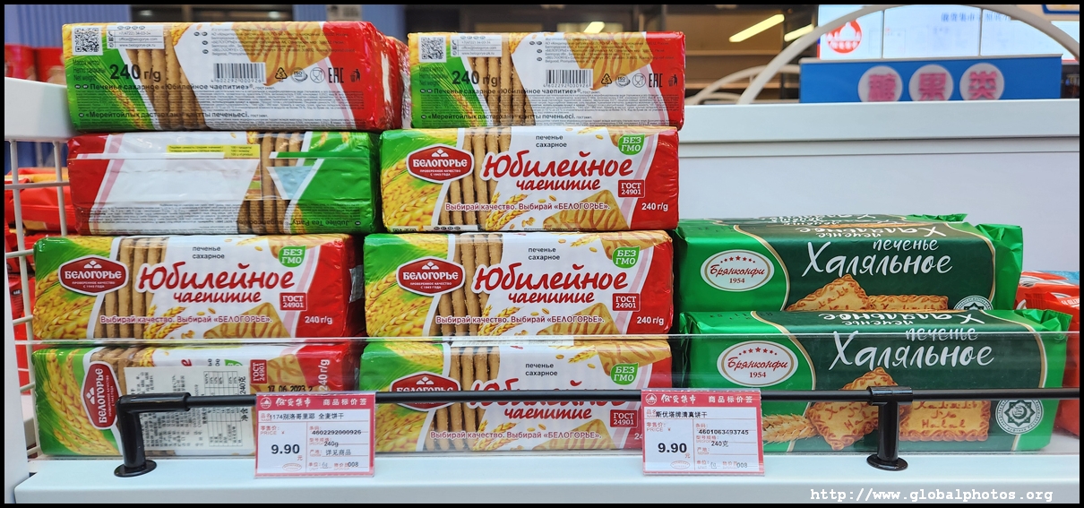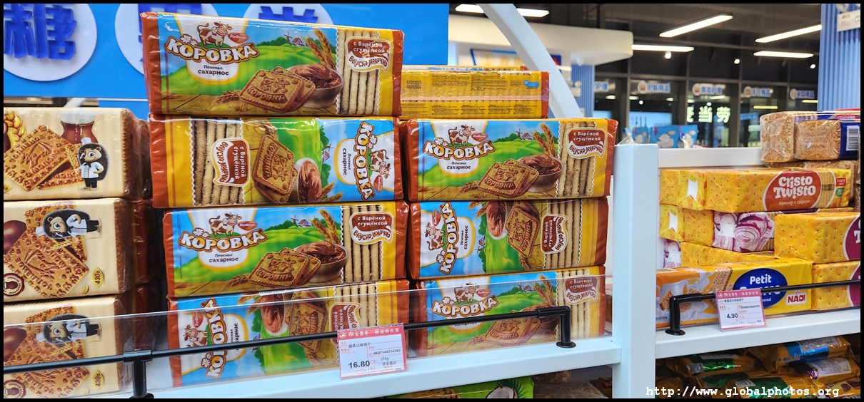 With international sanctions in place due to Russia's invasion of the Ukraine, Russian exports have found less buyers globally other than China and India. This Russia-themed supermarket at Hongshan 6979 features a wide variety of food items as well as household goods. The selection is mostly candy, biscuits, chocolate, and a lot of alcohol.