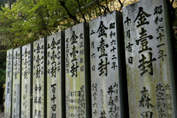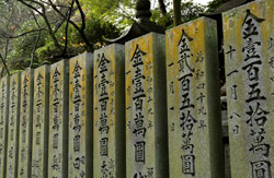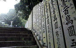 The path is decorated with plaques commemmorating the generosity of various donors.