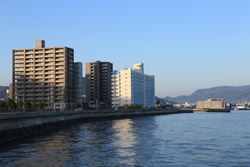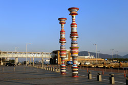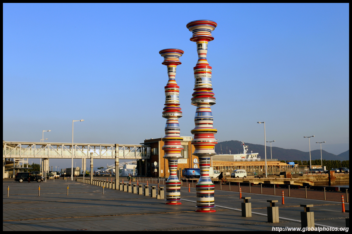 With the weather forecast turning sunny, I woke up early the next morning for a walk to the waterfront, which has been redeveloped into a very nice urban space called Sunport Takamatsu.