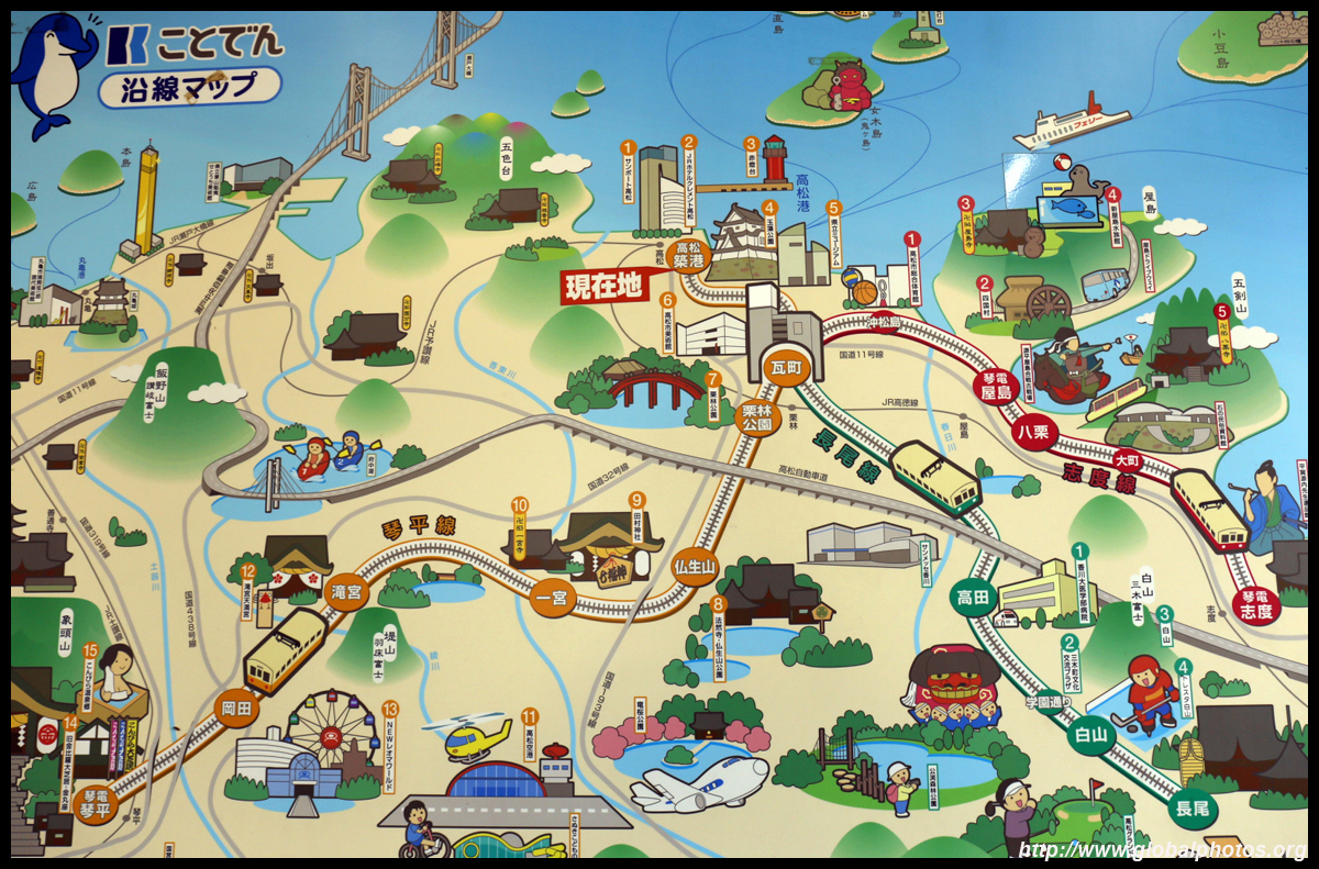 The Kotoden has 3 lines that radiate from Takamatsu's waterfront terminus.