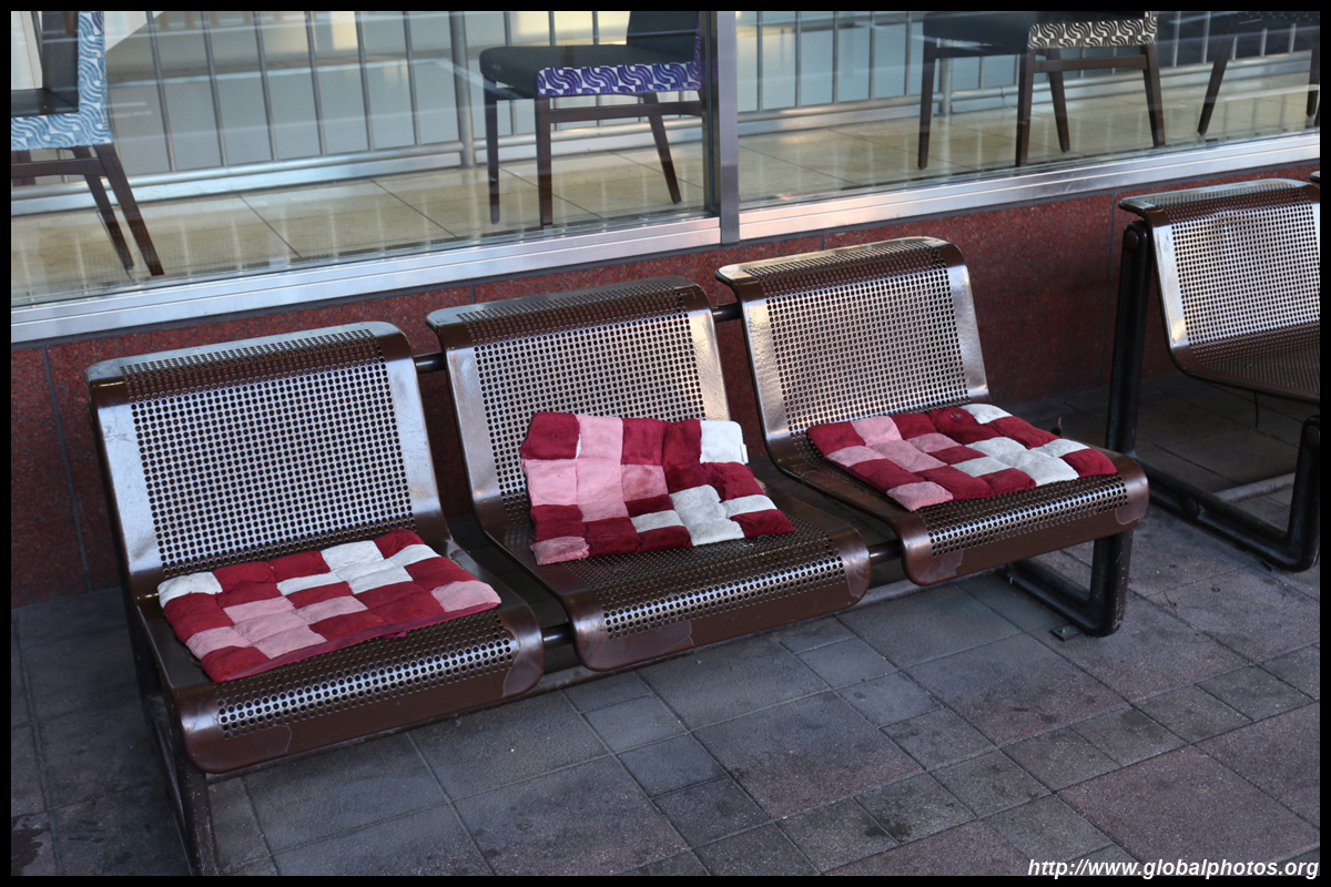 These cushions make waiting a bit more pleasant just outside a station. In other parts of the world, these cushions probably won't be here that long, or be as immaculately maintained to showcase its original colours.