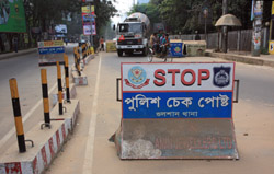 Bangladesh has been in turmoil for over a year, but tensions flared up again between political factions just before I arrived. There was no travel warning but we were told not to venture out at night as arsonists were targeting city buses. Every day, newspapers reported scores dead from the previous night's attacks.