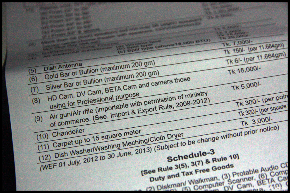 I spent a bit of time going through the paperwork for arrival. For those planning to bring an air rifle, dish washer, or a chandelier into the country, expect to pay duty.