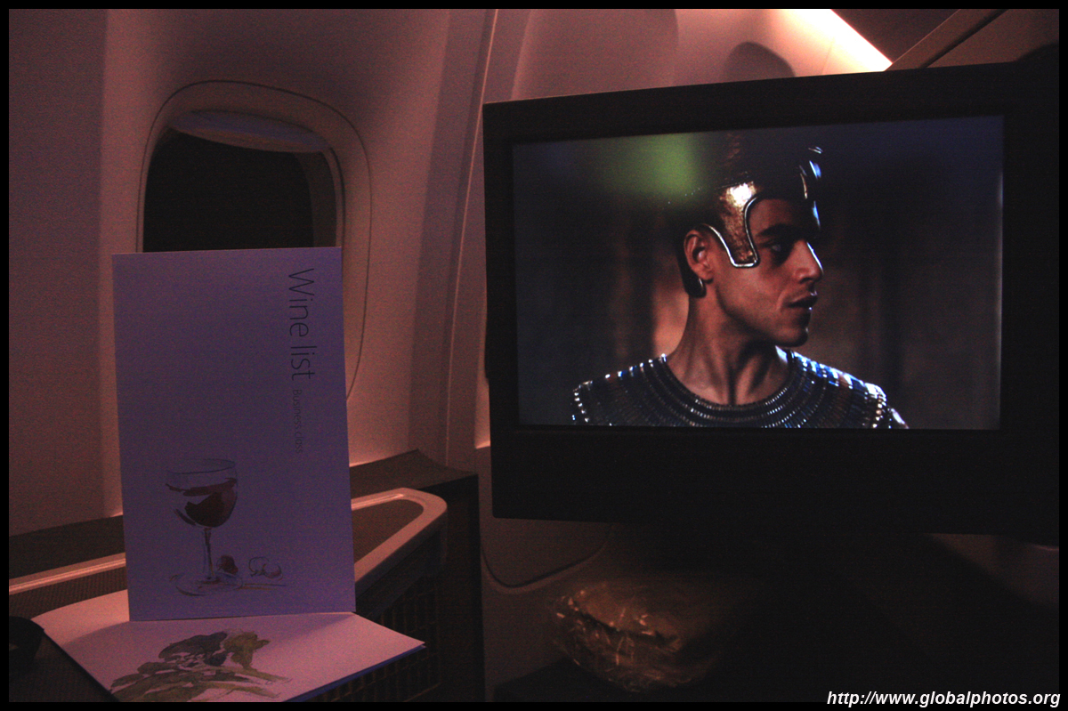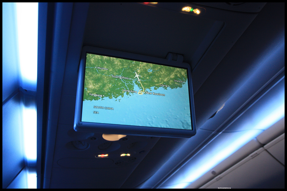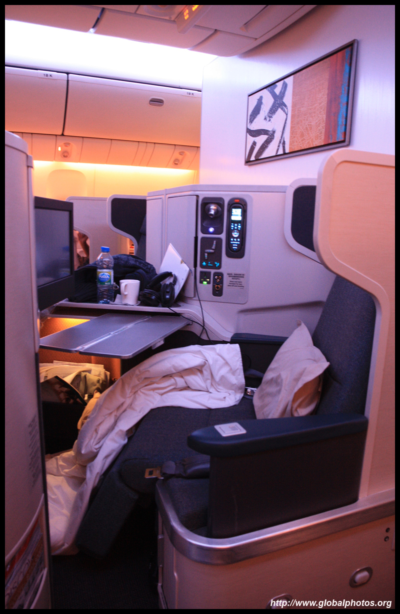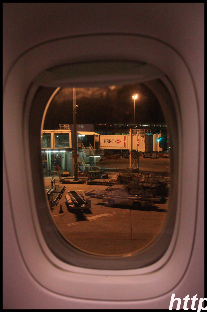 There was a huge crowd at the gate as boarding started about 20 minutes before departure. The common folks were already in a long line while a family was going through the Business Class line ahead of me. The agents were quick to spot me and pushed me ahead of the queue. Unlike in HK, only 1 jet bridge is used, so all passengers have to board through the same door, and get stuck in the same line. One of the agents enthusiastically joked it was like the Ladies' Market here. I noticed there were no Chinese agents at the gate, which is probably needed to keep the Mandarin speakers in check.