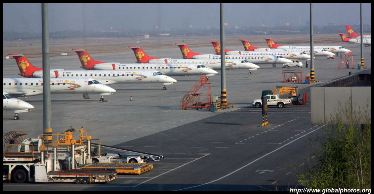 Low-cost carriers don't always board from the tarmac. Here in Zhengzhou, bridges are used.