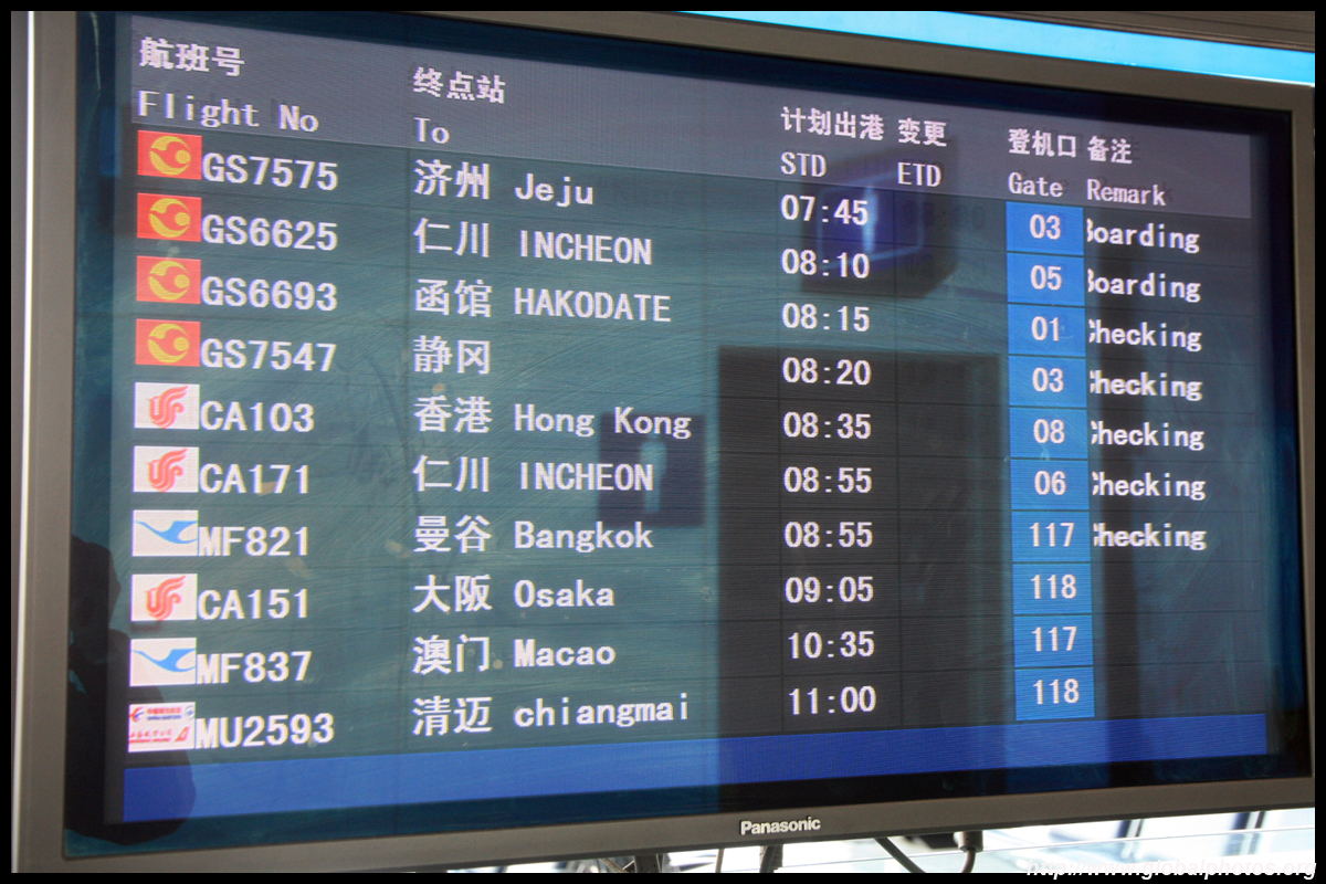 Both Japan and Korea are only a short flight away, so there are a lot of morning departures to both countries.