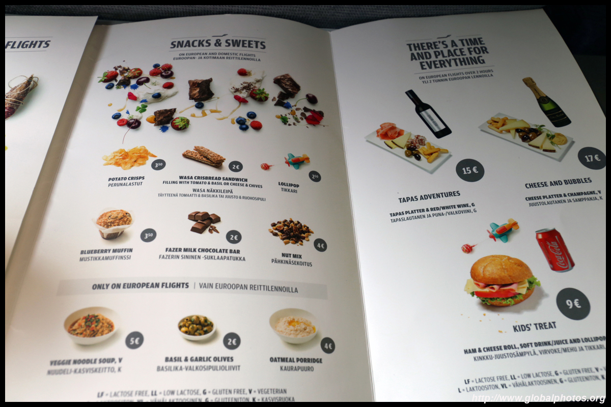 This flight is operated by an affiliate of Finnair, although the jet was painted in the official colours. Complimentary drinks were served for this <2 hour flight and food was available for purchase.